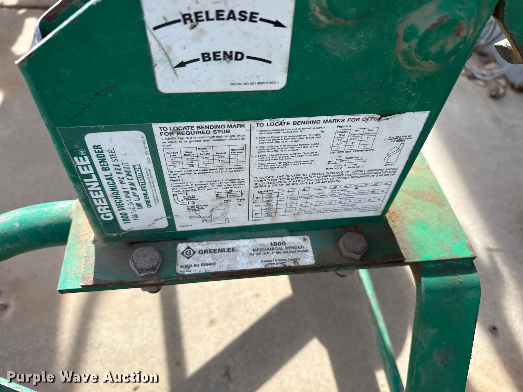 - (2) Greenlee 1800 mechanical benders