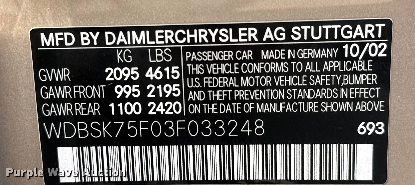 - VIN: WDBSK75F03F033248