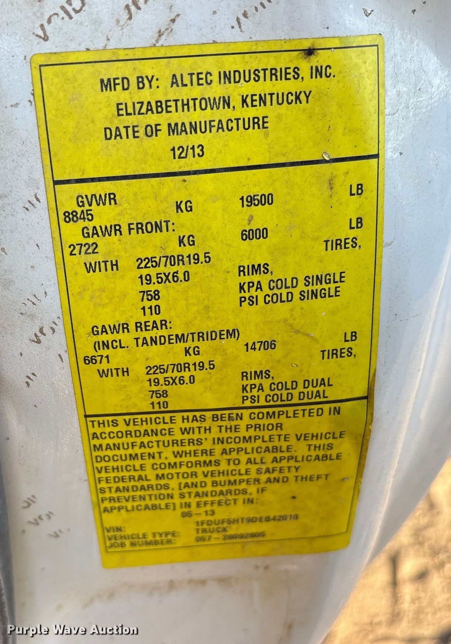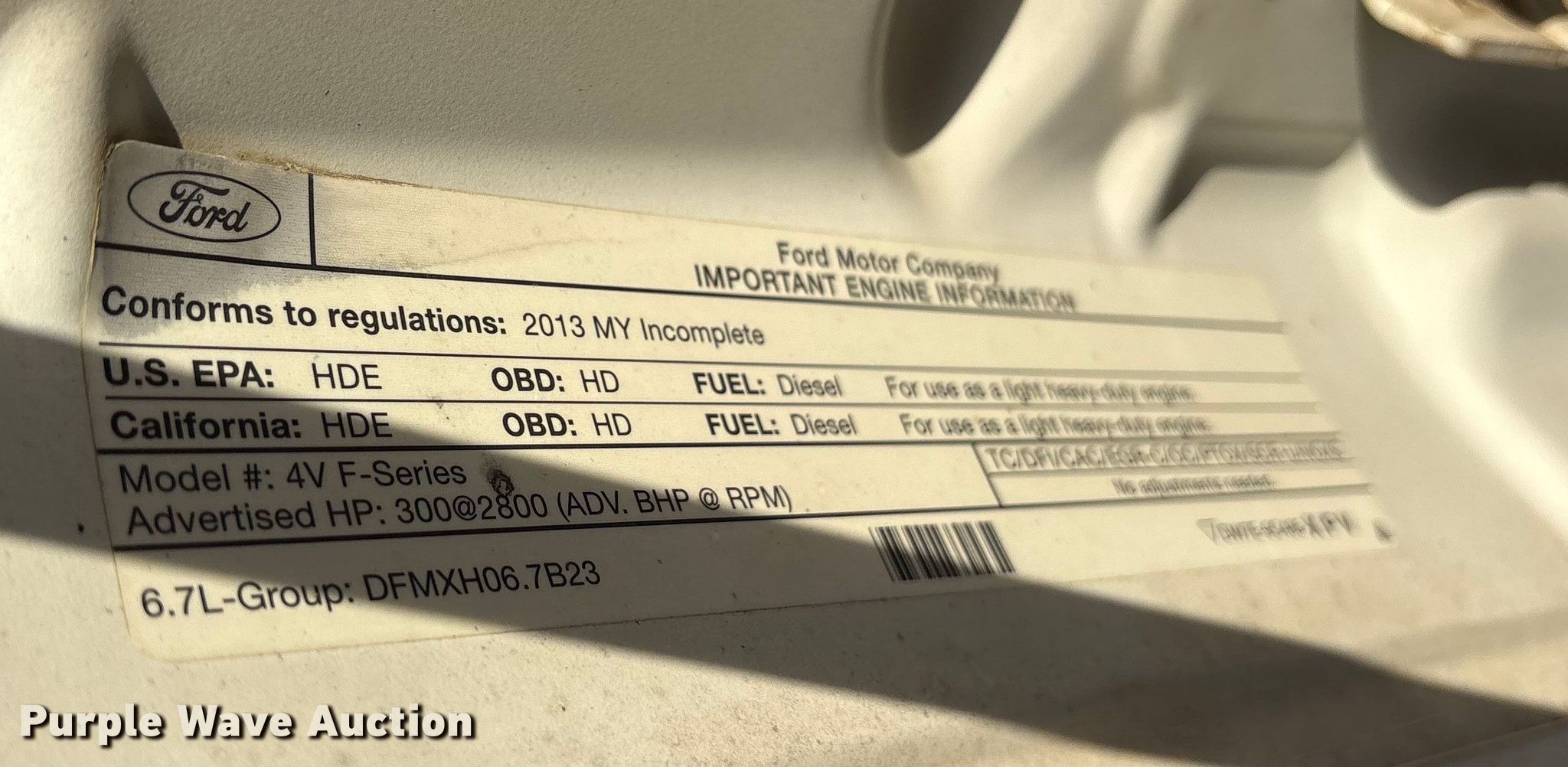 2013 Ford F-550 bale bed truck. Miles: 255,173 on odometer, Miles or hours may vary, unit still in use, VIN: 1FDUF5HT9DEB42010. Engine Displacement: 6.7L, Cylinders: 8, Fuel type: Diesel. Transmission Automatic. Chassis Four wheel drive, Axles: Single, Suspension: Spring, Brakes: Hydraulic, PTO, GVWR: 19,500 lbs, Wheelbase: 141". Interior AC, Heat, Cruise control, Auxiliary controls. Features Bed Hydraulic bale bed, DewEze 684, Length: 9' 10", Width: 7' 9", Remote control, Gooseneck. Tires Size: 225/70R195. Notes Tires will be replaced with tires on bed prior to auction Tires that will be removed are included. Oklahoma title. Title distribution may be delayed up to 14 days from verification of funds. Shady Point, OK 74956