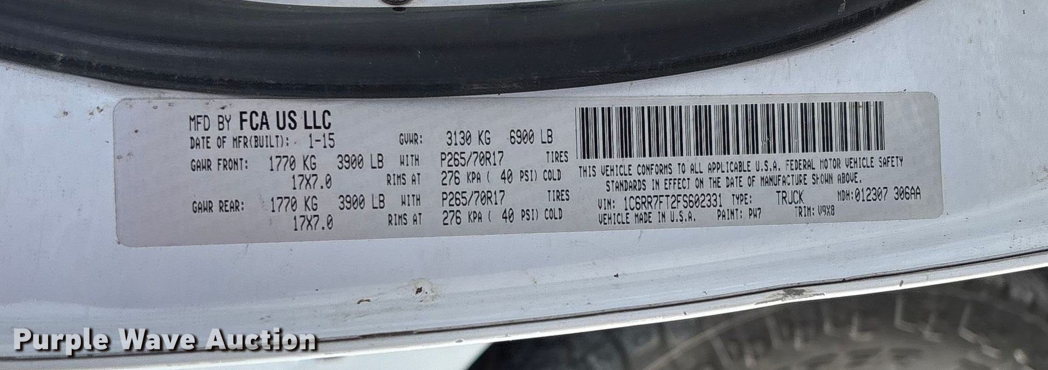 - VIN: 1C6RR7FT2FS602331