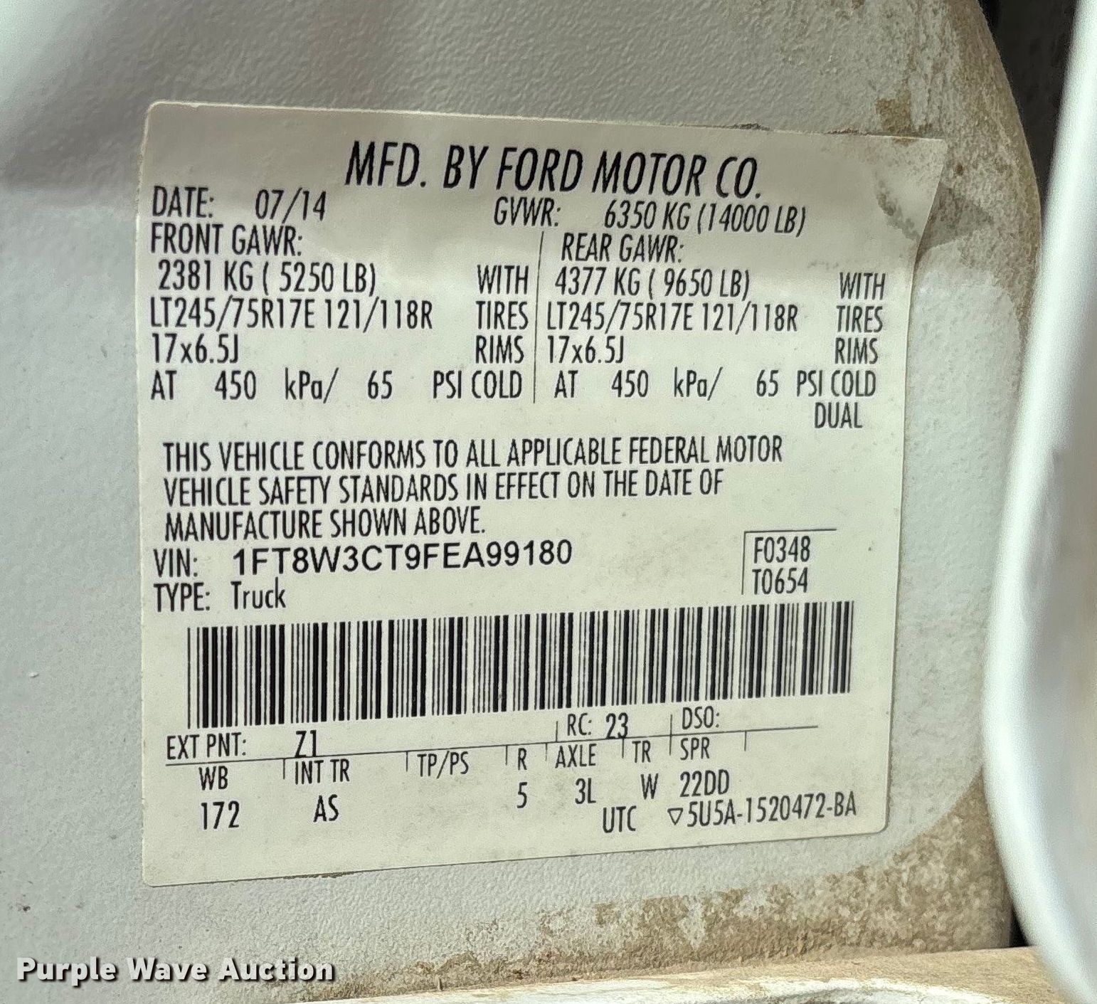 Purple Wave is selling a used 3/4 or 1 Ton Pickup or Van in Arkansas. This item is a 2015 Ford F350 Super Duty Crew Cab pickup truck with the following: Miles: 335,177 on odometer, VIN: 1FT8W3CT9FEA99180