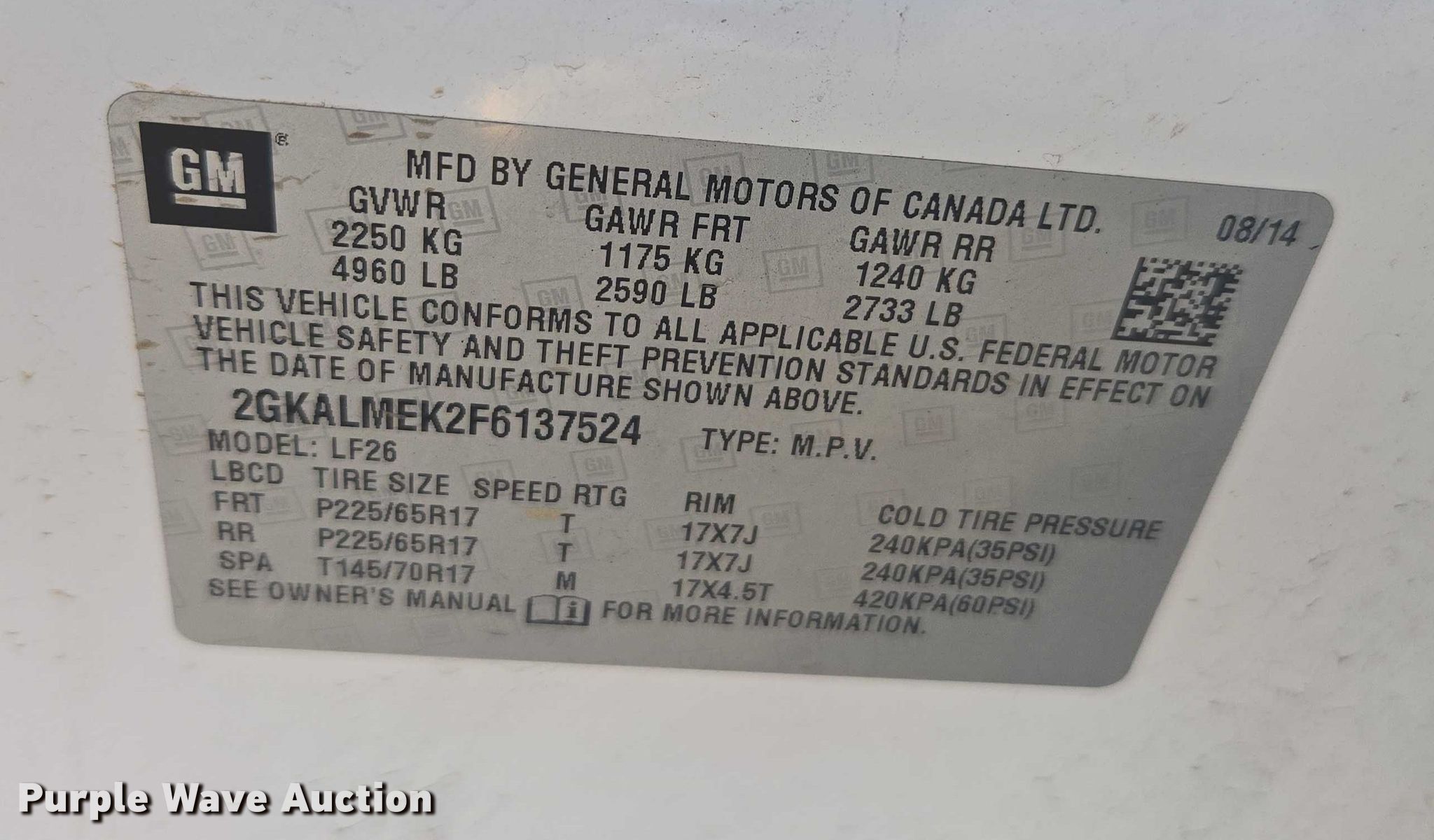 - VIN: 2GKALMEK2F6137524