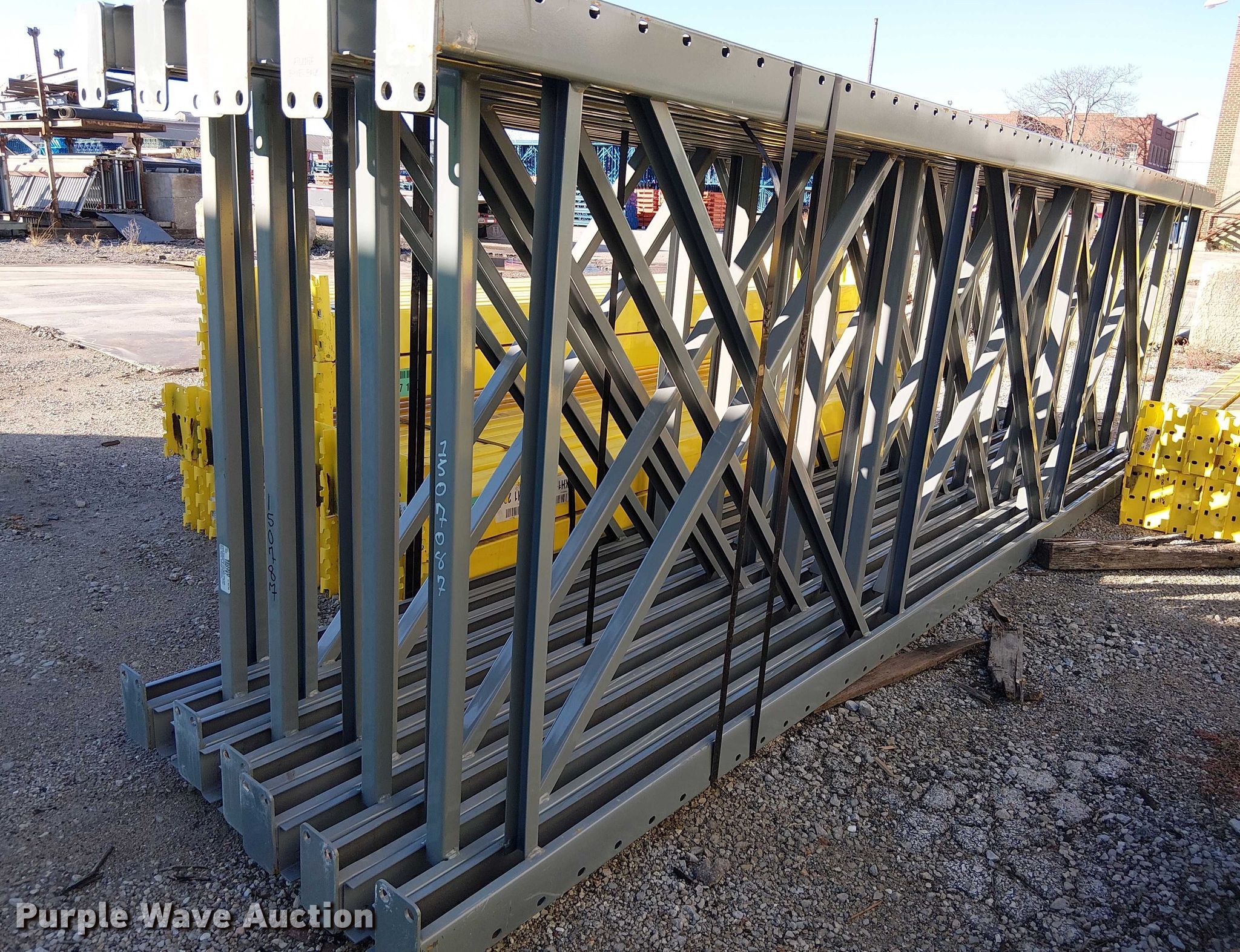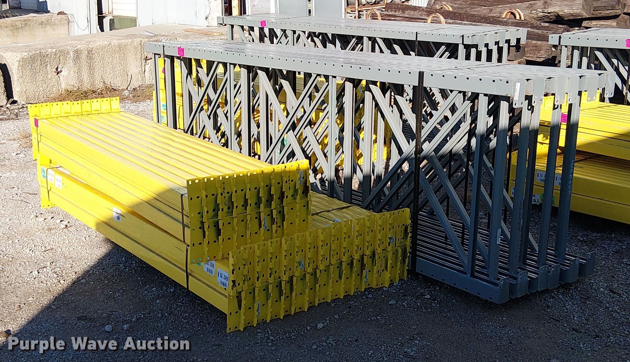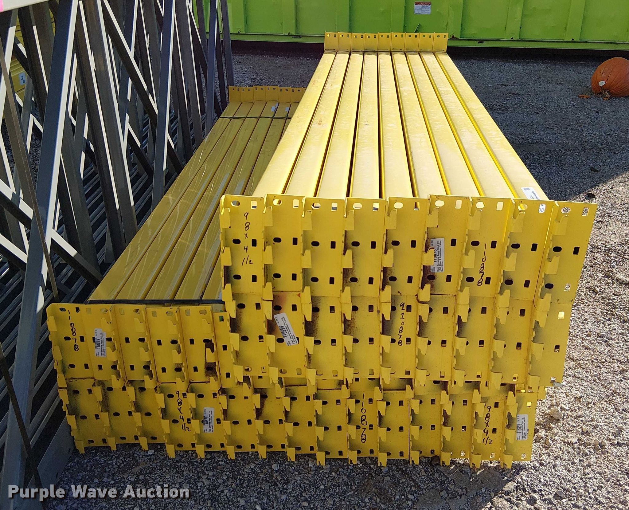 Purple Wave is selling a used Pallet Racking in Missouri. This item is a Keystone pallet racking with the following: Unit #: 871599, (10) uprights, Size: 42" x 144", (48) beams, Size: 98" x 4 1/2"