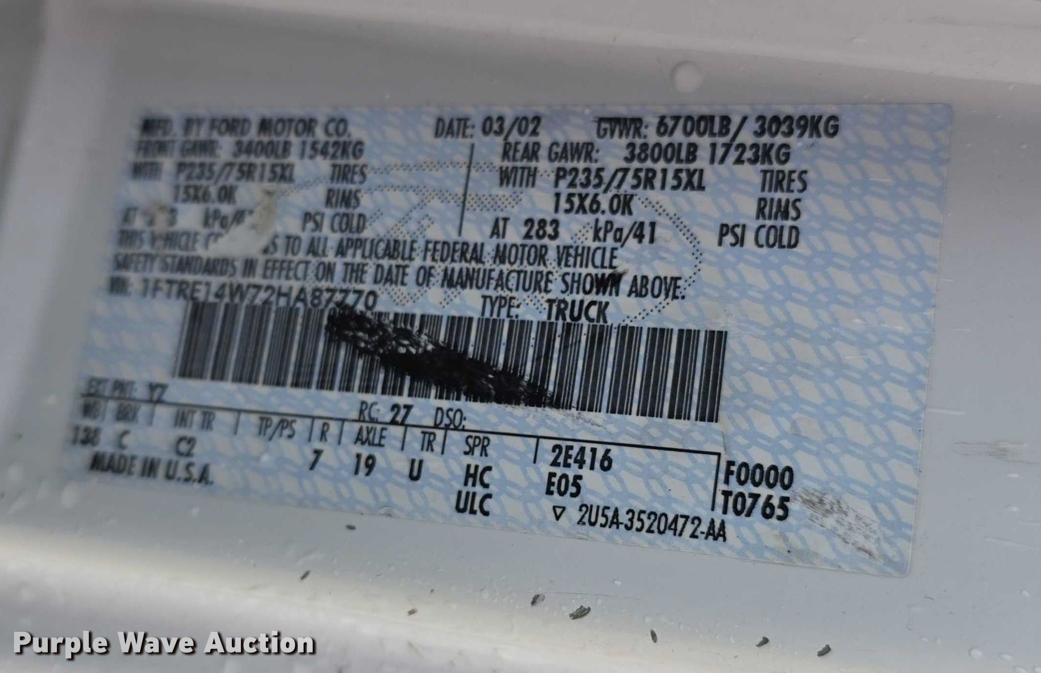- VIN: 1FTRE14W72HA87770