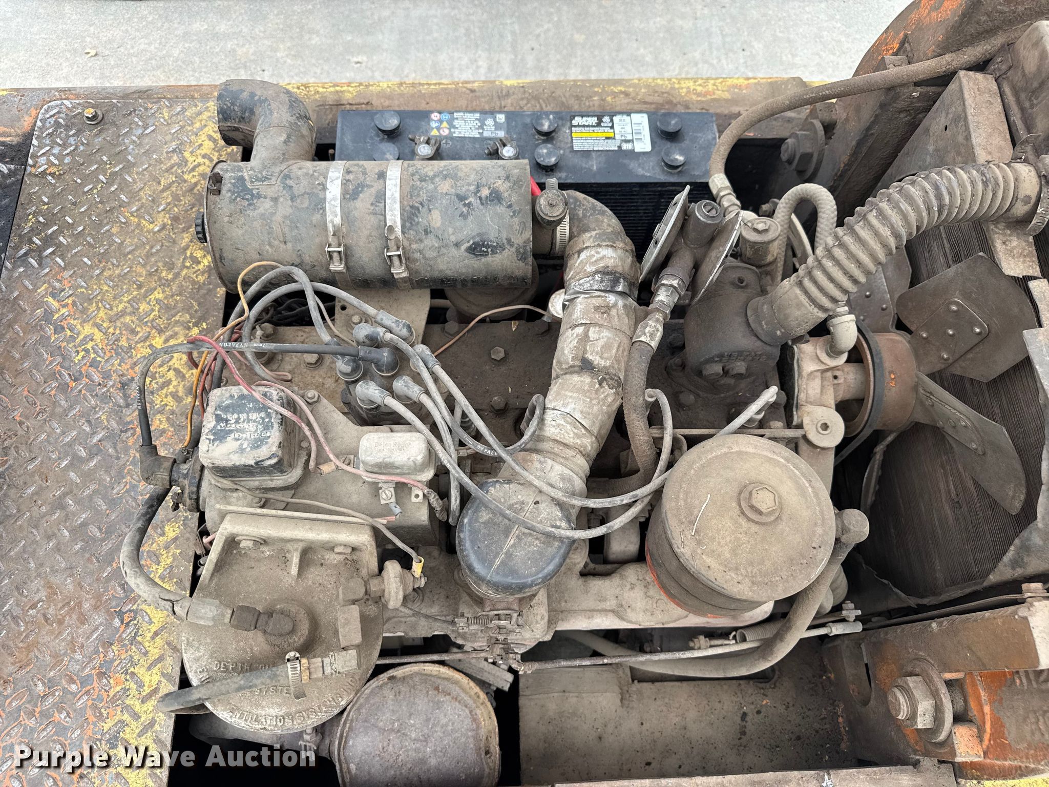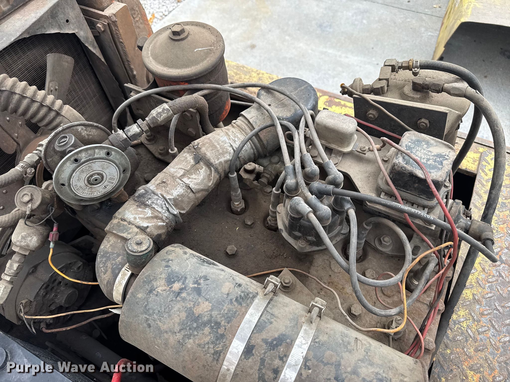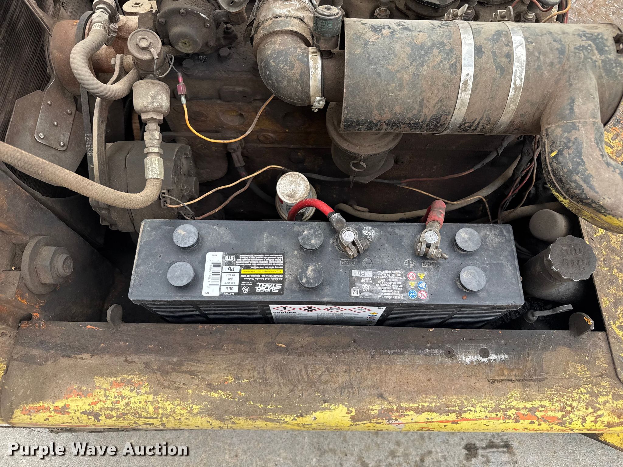 Hyster forklift. Hours: Unknown. Engine Cylinders: 6, Fuel type: LPG. Transmission Hydrostatic. Operators station OROPS. Features Collapsed mast height: 78", Mast stages: 3, Mast tilt, Fork length: 48". Tires Solid. Notes Non-operational starter, Unknown operating condition. Smithville, MO 64089