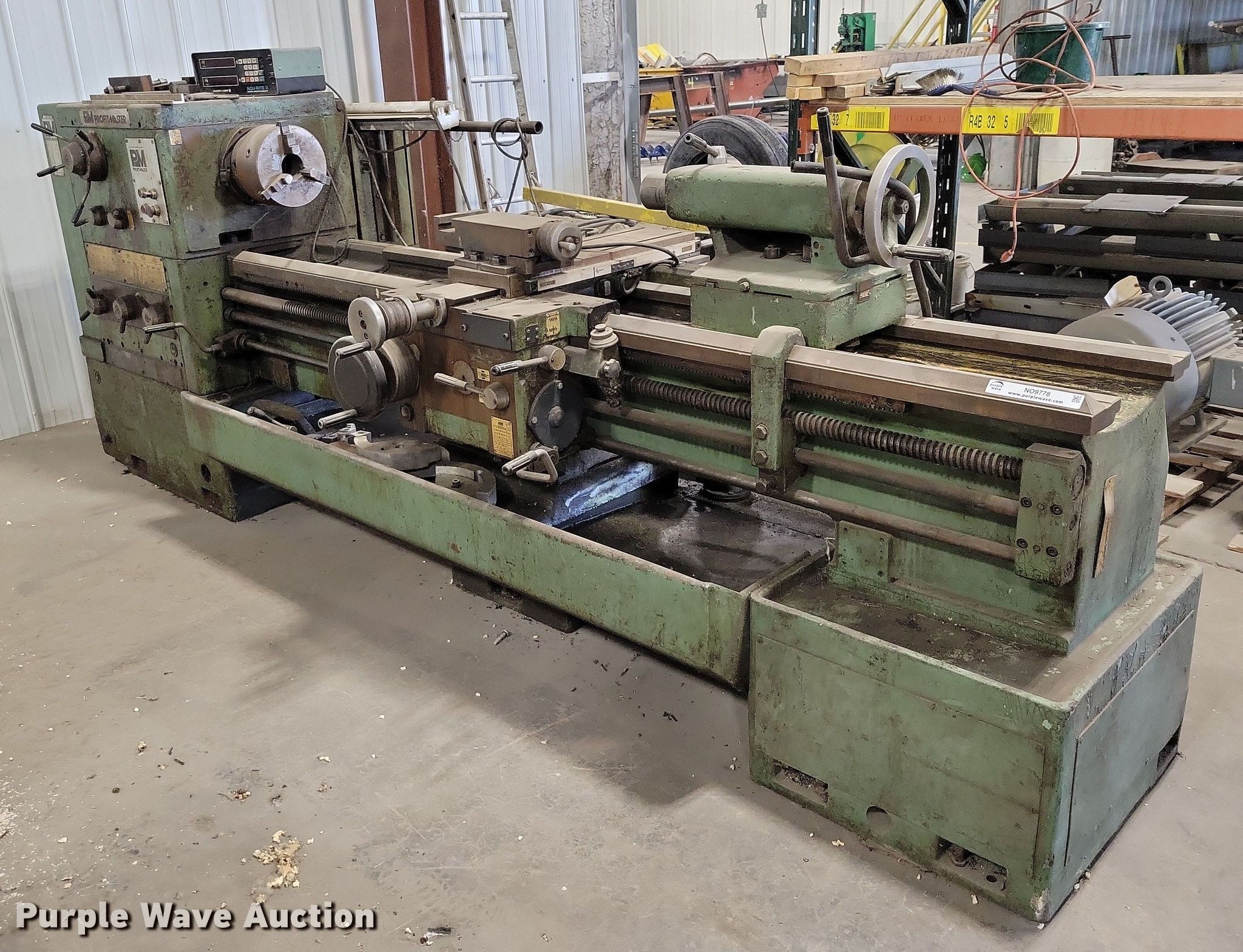 Purple Wave is selling a used Lathes, Manual in Iowa. This item is a Profitmaster 22x80R metal lathe with the following: Overall, Length: 12' 6"