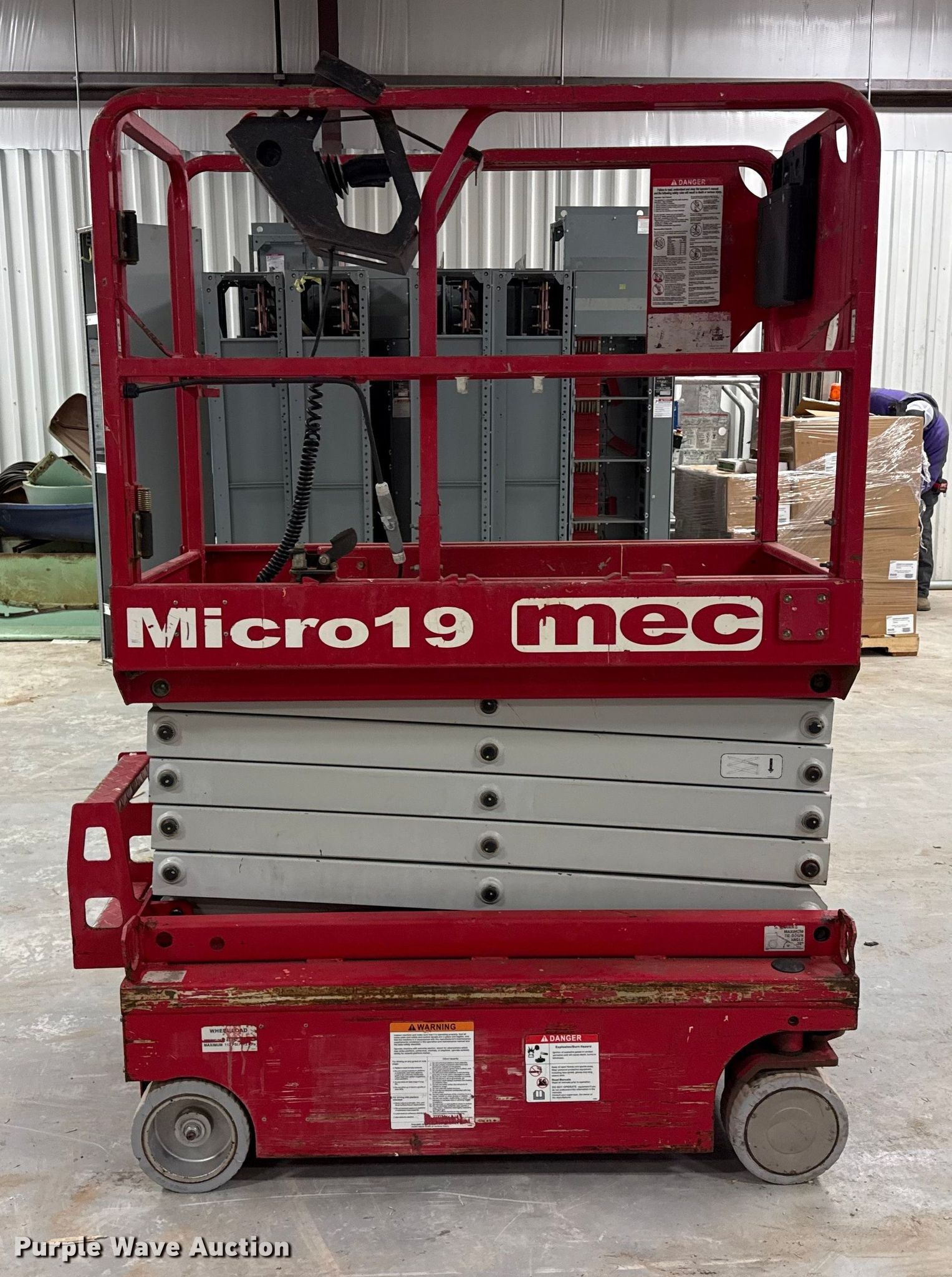 Purple Wave is selling a used Scissor or Vertical Lift in Kansas. This item is a Mec Micro 19 scissor lift with the following: Hours: 151 on meter