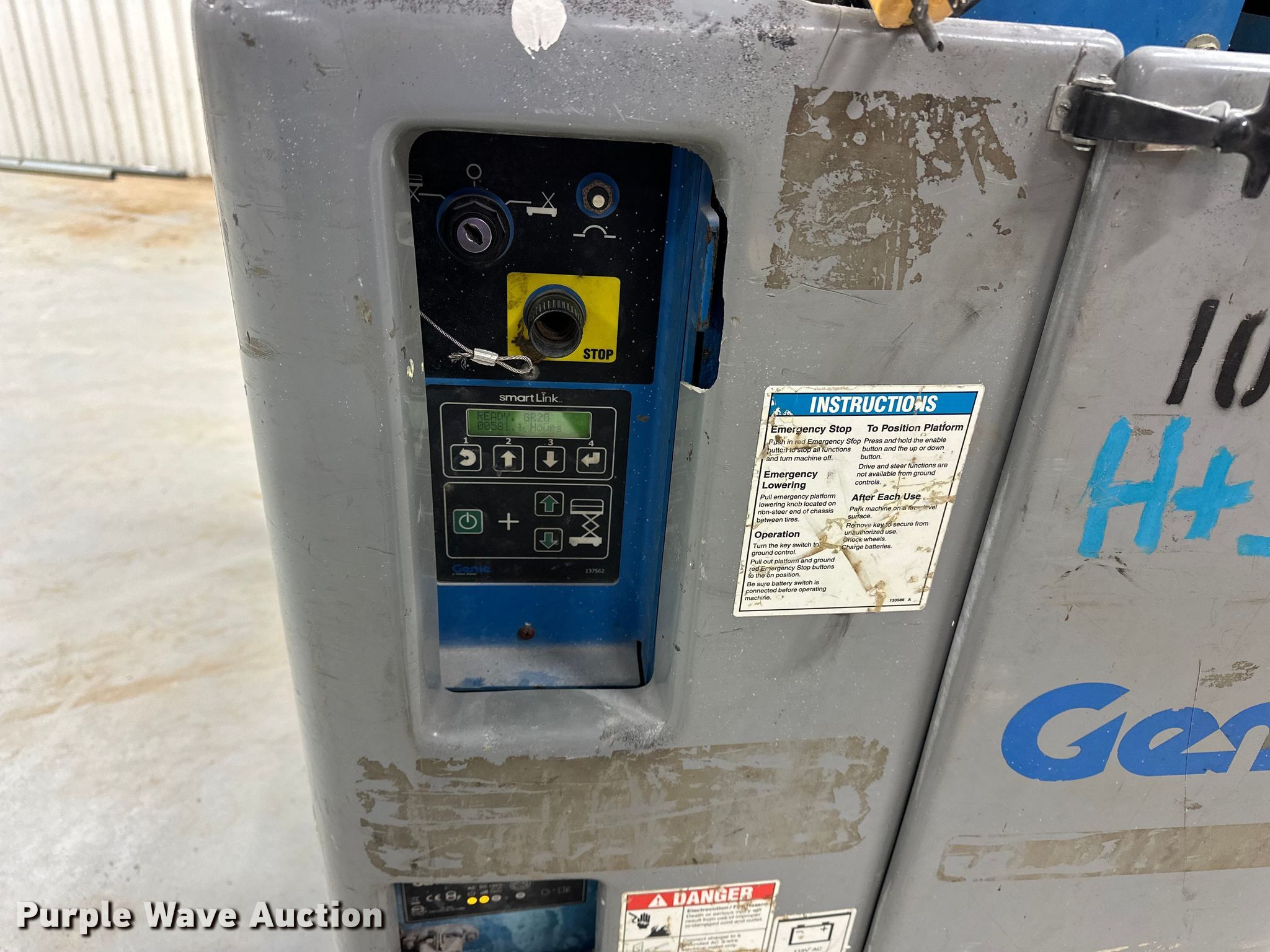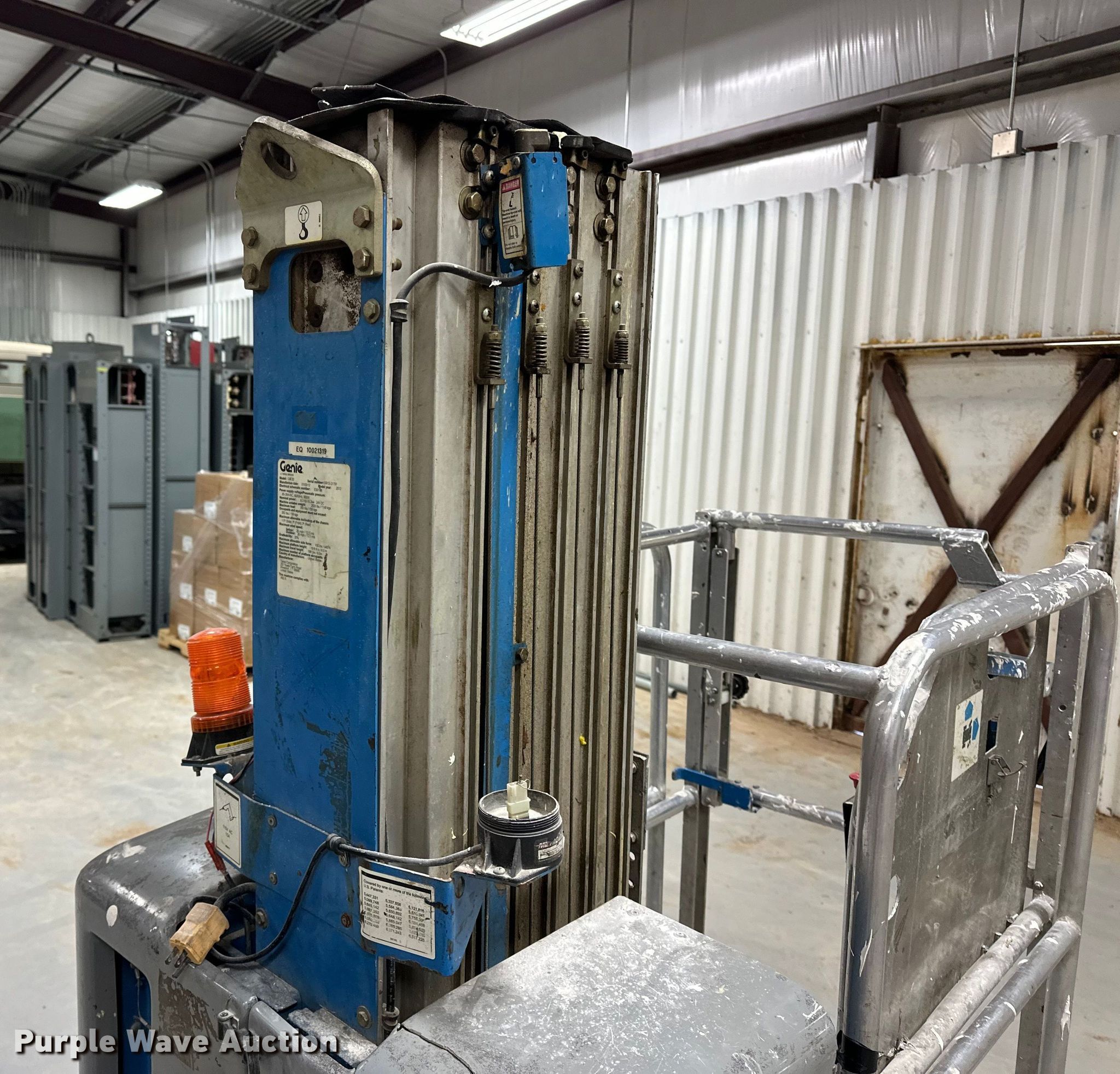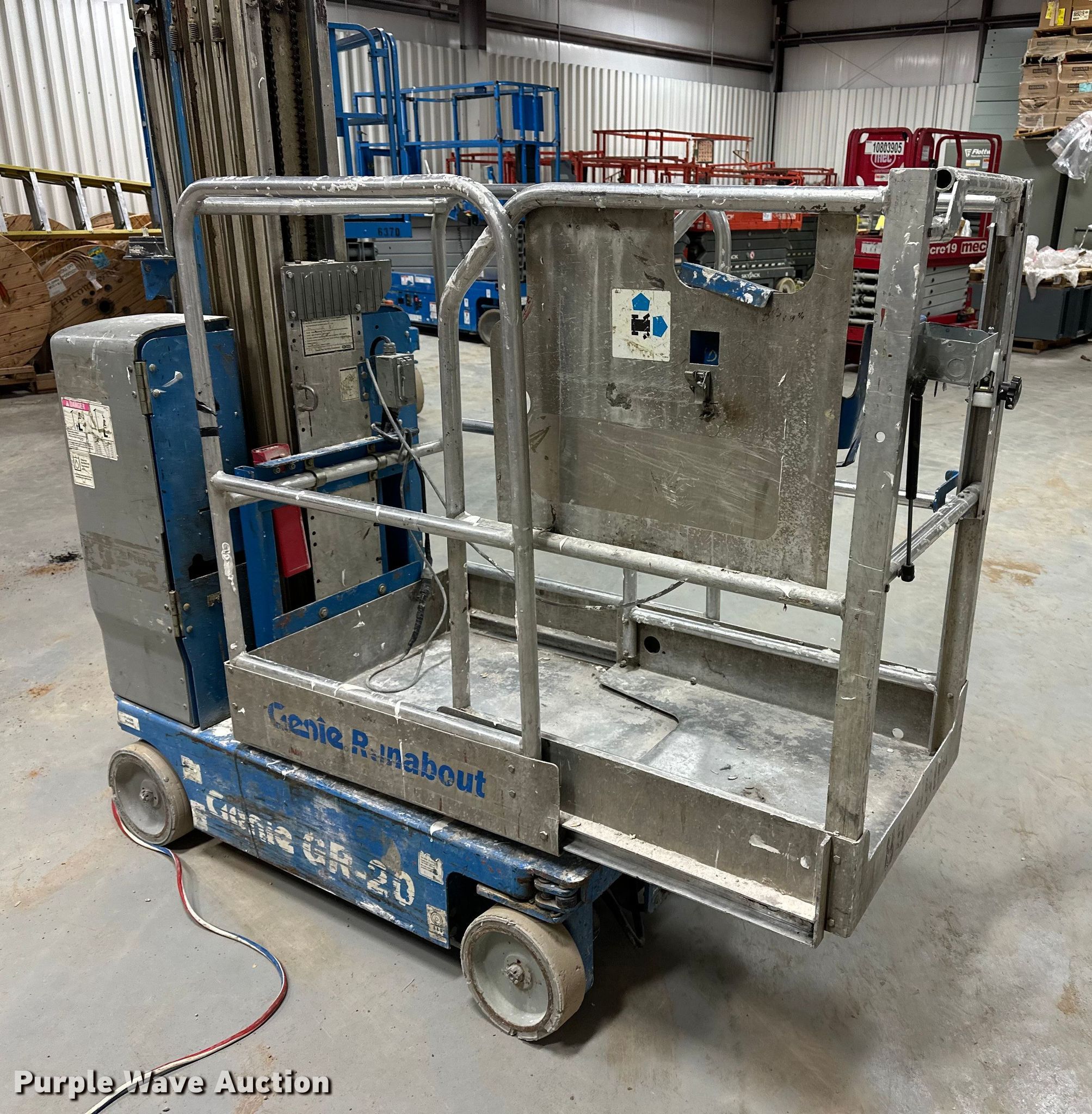 Purple Wave is selling a used Scissor or Vertical Lift in Kansas. This item is a 2012 Genie GR-20 vertical lift with the following: Hours: 581 on meter, Serial: GR12-21791