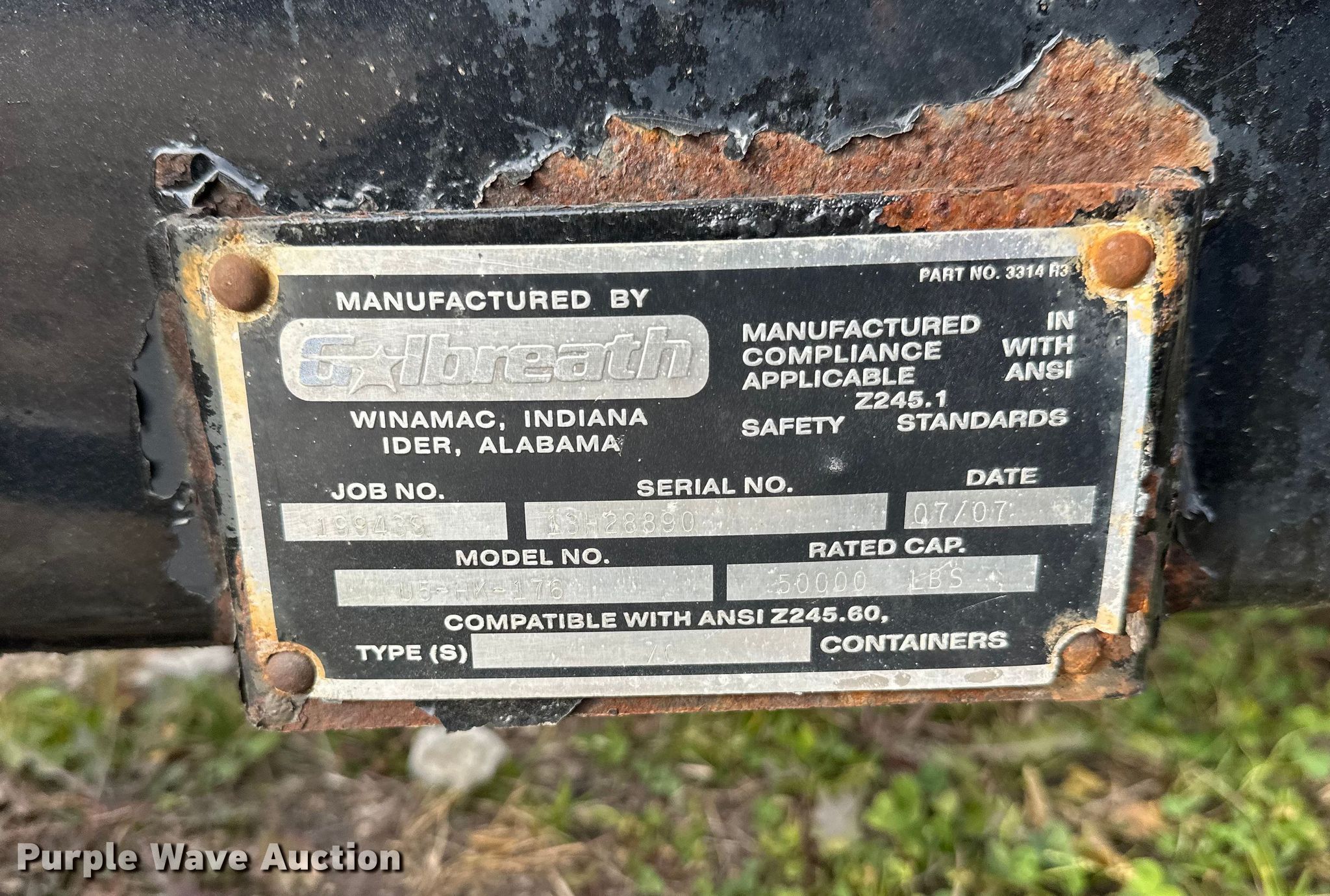 Purple Wave is selling a used Truck Part and Attach. in Wisconsin. This item is a 2007 Galbreath U5-HK-176 hook lift bed with the following: Serial: 13H28890, Length: 19' 6", Width: 8'