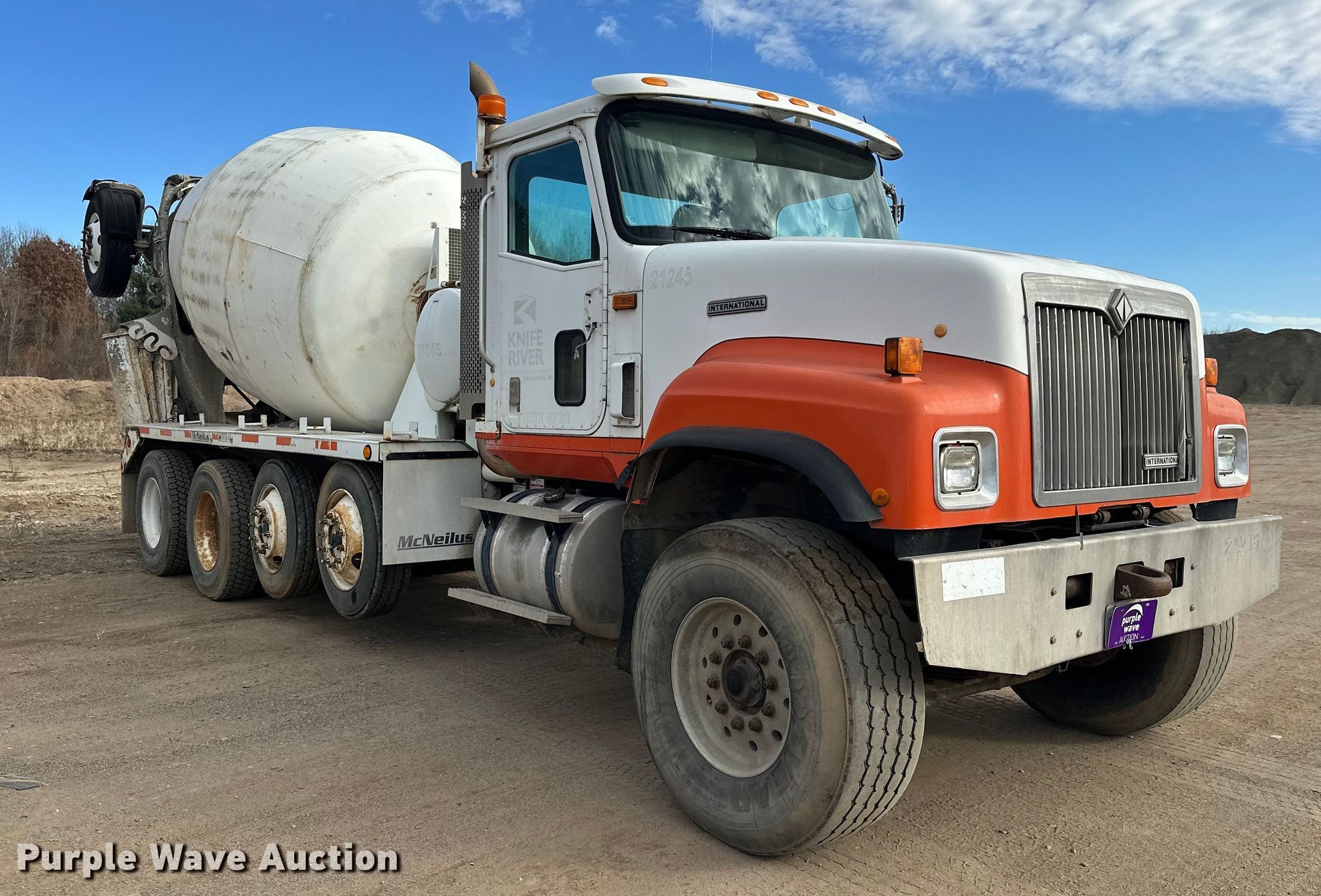 2001 International 5500i ready mix truck. Miles: 337,135 on odometer, Hours: 24,228 on meter, VIN: 1HTXLAHT11J010674, Unit #: 21245. Engine Cummins ISM 320V, Displacement: 10.8L, Cylinders: 6, Fuel type: Diesel. Transmission Eaton Fuller 9LL, Manual, Speed: 11. Chassis Axles: 5, Pusher axle Steerable, Tag axle Steerable, Differential lock: Inter-axle, Suspension: Spring over walking beam, Brakes: Air, PTO. Interior AC, Heat, Heated mirrors, Cruise control. Features Mixer McNelius, Capacity: 11 cu.yd., Discharge: Rear, In-cab controls, Water tank capacity: 150 gallons, Chute Extensions: 3, Chute type: Steel.. Tires Front: 425/65R22.5, Rear: 11R22.5, Lift axle: 255/70R22.5. Minnesota title. Title distribution may be delayed up to 14 days from verification of funds. Knife River. Little Falls, MN 56345