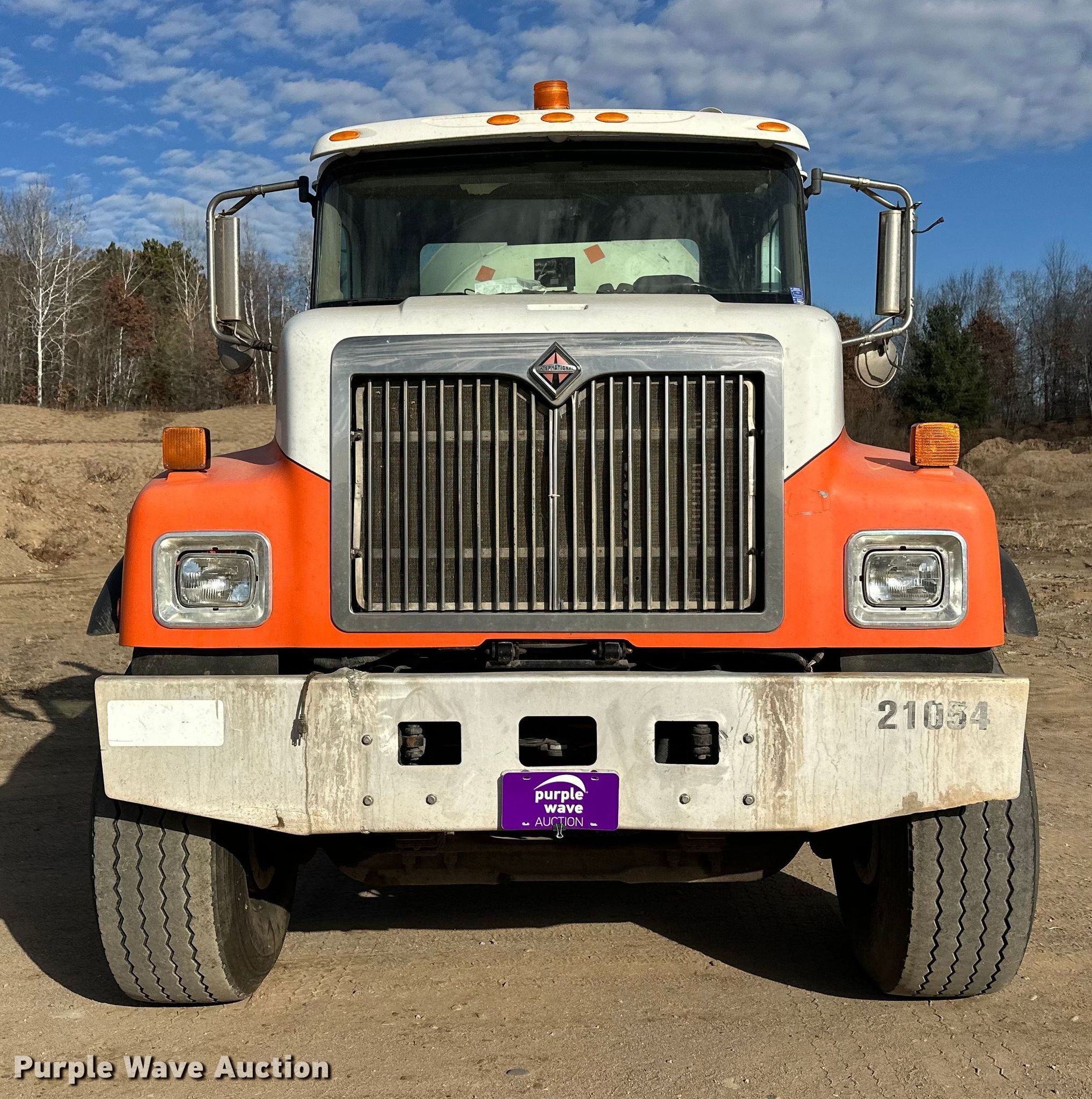 2002 International 5500i ready mix truck. Miles: 415,298 on odometer, Hours: 29,740 on meter, VIN: 1HTXLAHT62J010896, Unit #: 21054. Engine Cummins ISM, Displacement: 10.8L, Cylinders: 6, Fuel type: Diesel. Transmission Eaton Fuller 9LL, Manual, Speed: 11. Chassis Axles: 5, Pusher axle Steerable, Tag axle Steerable, Differential lock: Inter-axle, Suspension: Spring over walking beam, Brakes: Air, PTO, Wheelbase: 248". Interior AC, Heat, Heated mirrors, Cruise control, Backup camera. Features Mixer McNelius, Capacity: 11 cu.yd., Discharge: Rear, In-cab controls, Rear drum controls, Water tank capacity: 150 gallons, Chute Extensions: 3, Chute type: Steel.. Tires Front: 425/65R22.5, Rear: 11R22.5, Lift axle: 255/70R22.5. Notes Dash warning indicator: Check engine, ABS, Windshield chipped or cracked, Non-operational mixer. Minnesota title. Title distribution may be delayed up to 14 days from verification of funds. Knife River. Little Falls, MN 56345