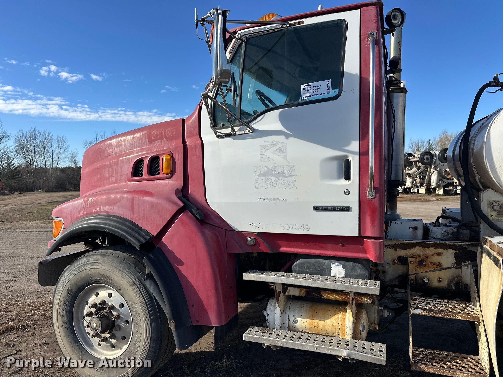 2006 Sterling L-Line ready mix truck. Miles: 326,920 on odometer, Hours: 22,522 on meter, VIN: 2FZHAZCV16AV81813, Unit #: 21180. Engine Mercedes-Benz, Displacement: 12.8L, Cylinders: 6, Fuel type: Diesel, Engine brake. Transmission Automatic. Chassis Axles: 5, Pusher axle Steerable, Tag axle Steerable, Differential lock: Inter-axle, Suspension: Spring over walking beam, Brakes: Air, PTO, GVWR: 80,000 lbs. Interior AC, Heat, Heated mirrors, Power windows, Power locks, Cruise control. Features Mixer McNeilus, Serial: 79037-28990, Capacity: 11 cu.yd., Discharge: Rear, In-cab controls, Rear drum controls, Water tank capacity: 150 gallons, Chute Extensions: 3, Chute type: Steel.. Tires Front: 425/65R22.5, Rear: 11R22.5, Lift axle: 265/70R19.5. Minnesota title. Title distribution may be delayed up to 14 days from verification of funds. Knife River. Little Falls, MN 56345