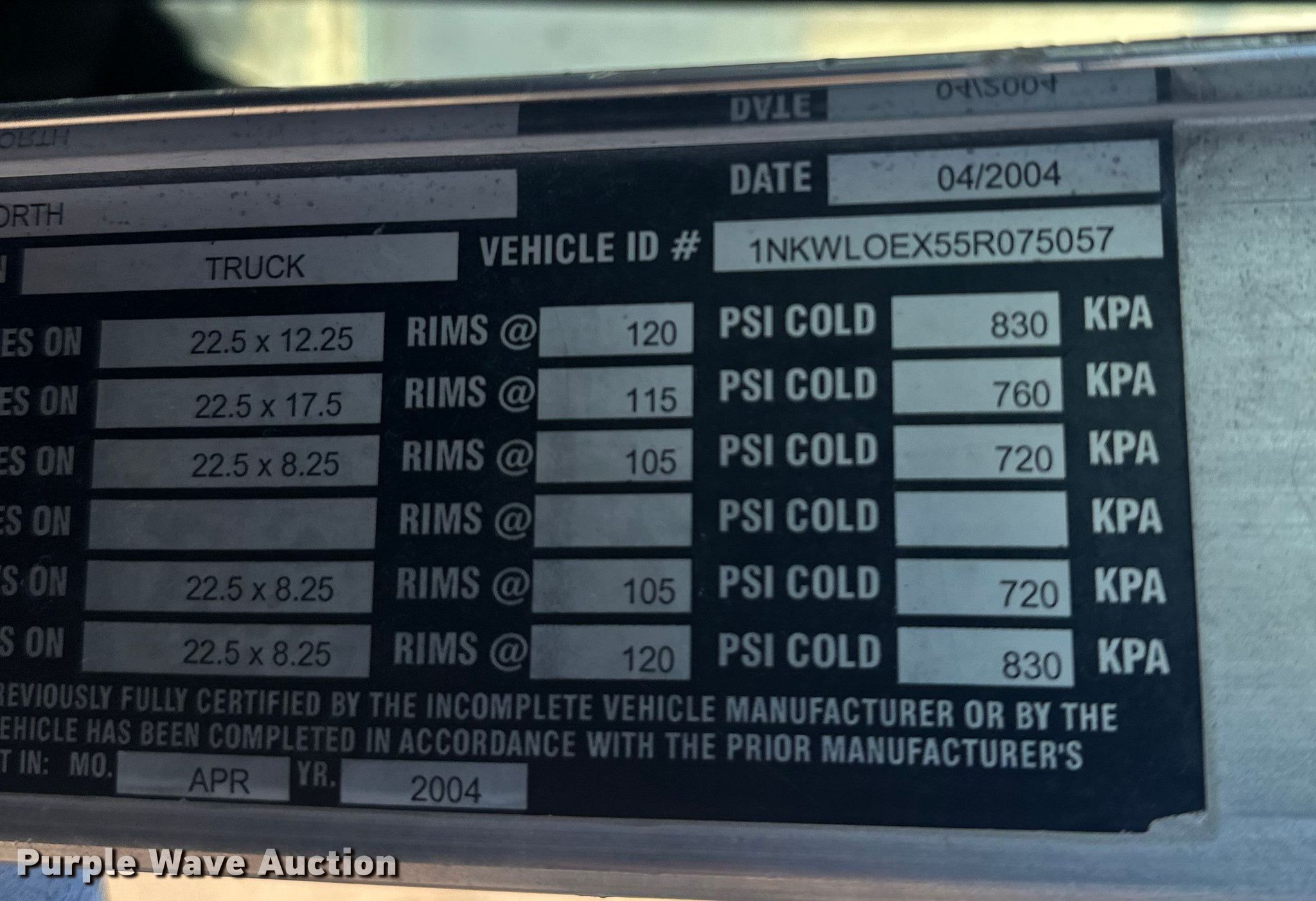 - VIN: 1NKWL0EX55R075057