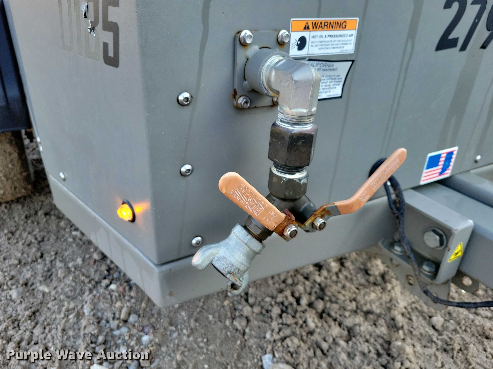 Purple Wave is selling a used Air Compressor in Iowa. This item is a 2022 Sullivan Palatek D185PKR air compressor with the following: Hours: 165.9 on meter, VIN: 4YAHH1114NM000134, Serial: 22CP002439
