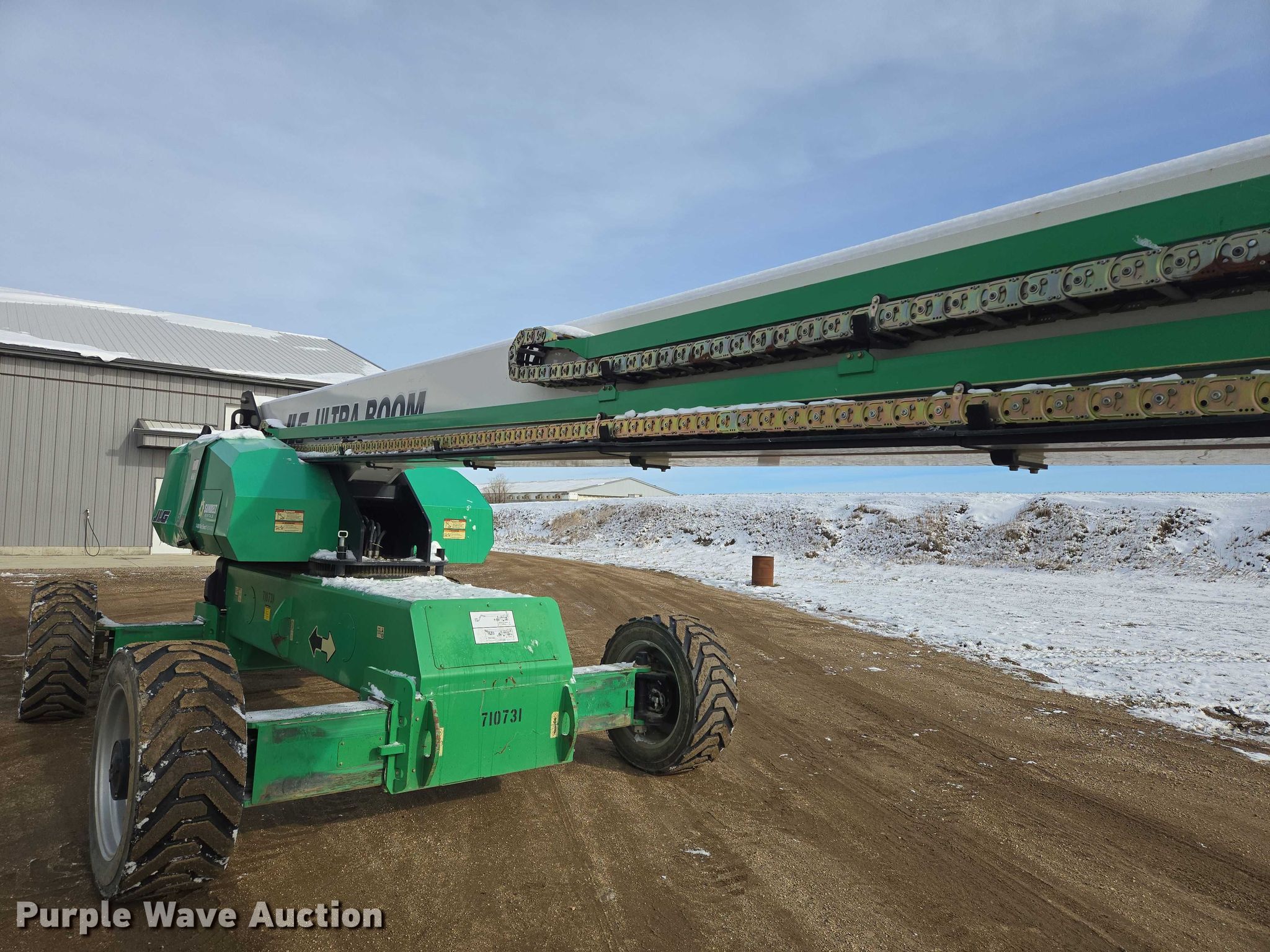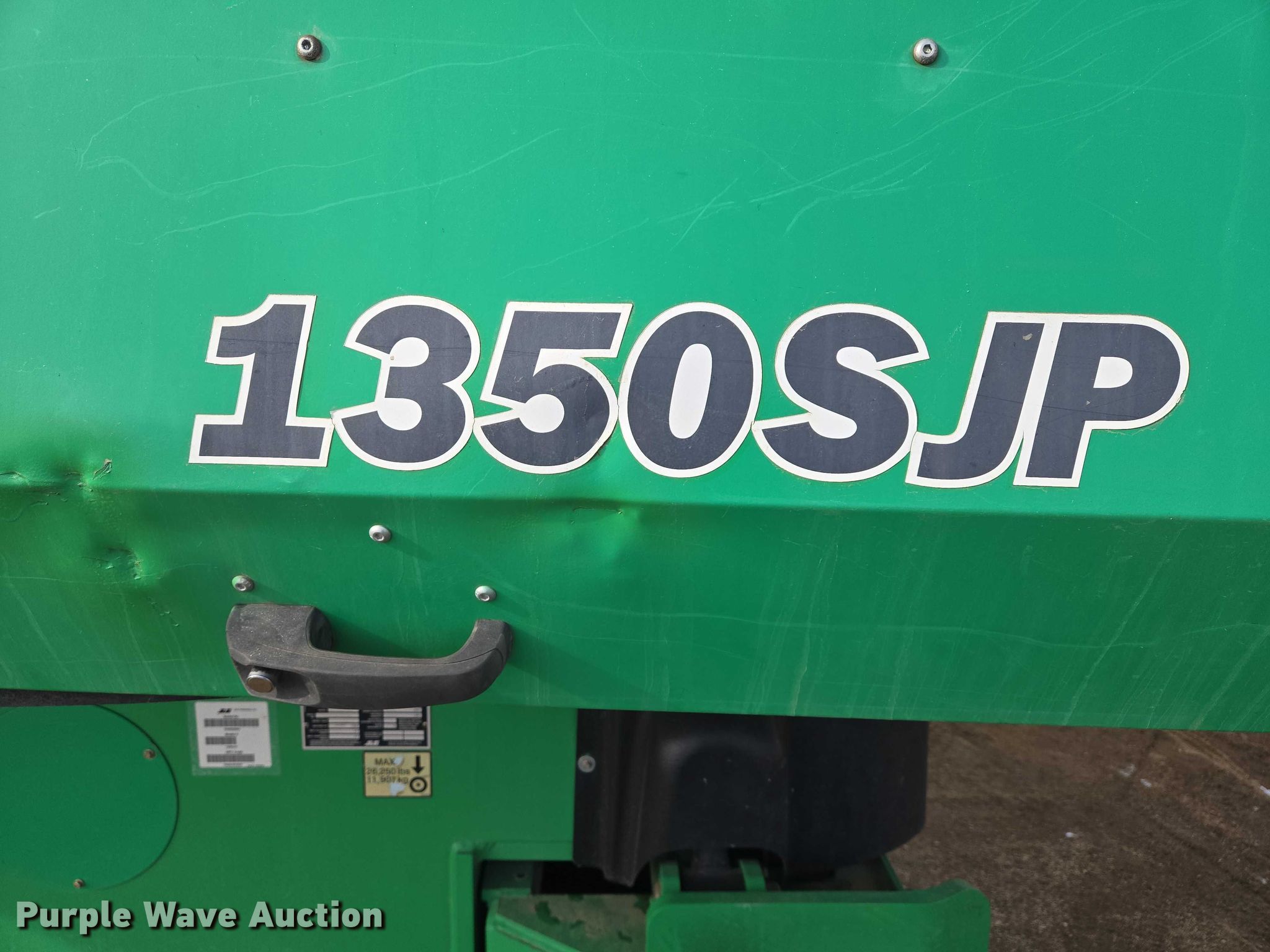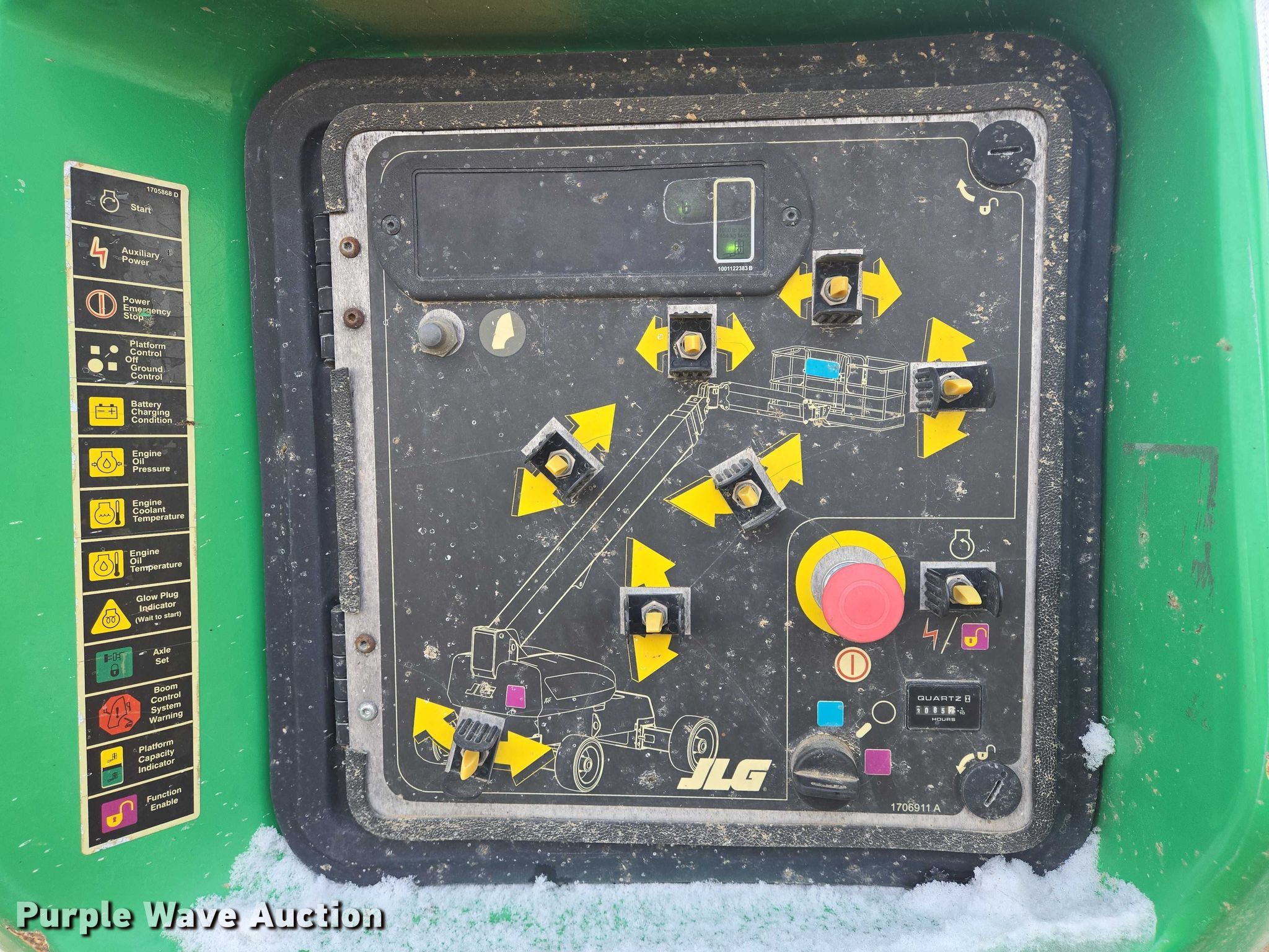 2015 JLG 1350SJP boom lift. Hours: 3,085 on meter, Serial: 0300202084. Engine Deutz, Cylinders: 4, Fuel type: Diesel. Chassis Four wheel drive, Steering: Crab, Four wheel. Features Rough terrain, Boom type: Telescopic, Maximum lift capacity: 1,000 lbs, Maximum reach length: 80', Maximum lift height: 135', Hydraulic extendable jib, Platform: 96" L x 36" W, AC power outlet, Air outlet, Controls: Platform, Ground, Platform rotation: Hydraulic. Tires Tire size: IN445/50D710, Foam filled. Notes Engine covers damaged. Westwood Colony. Montrose, SD 57048