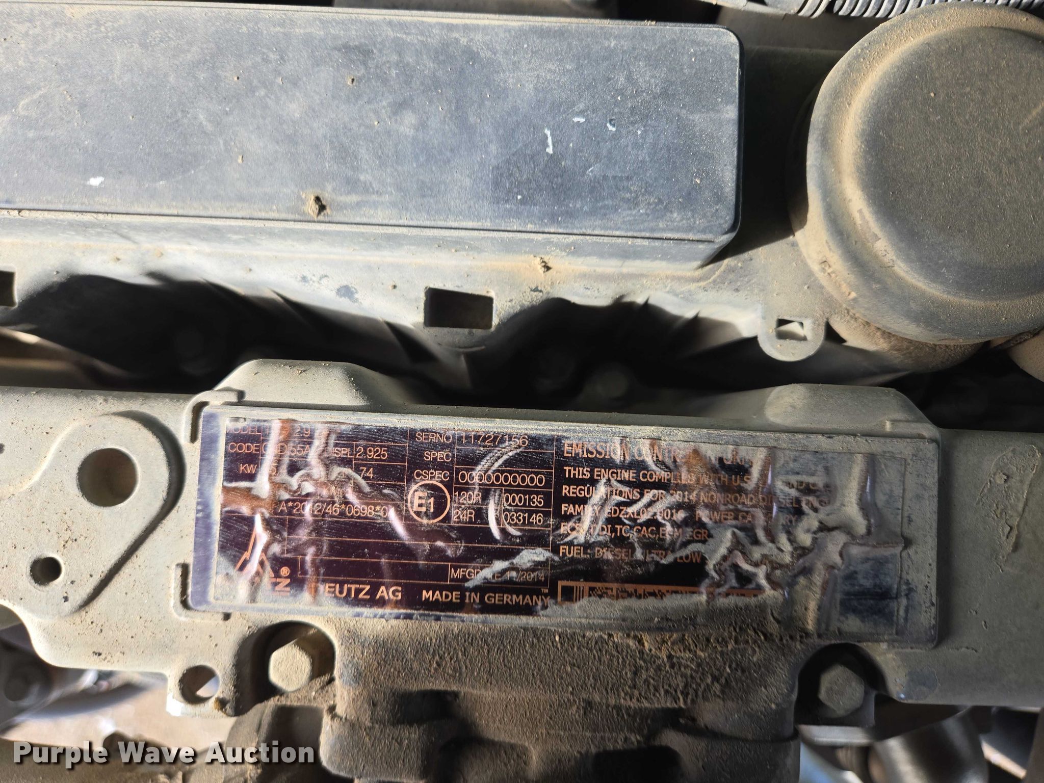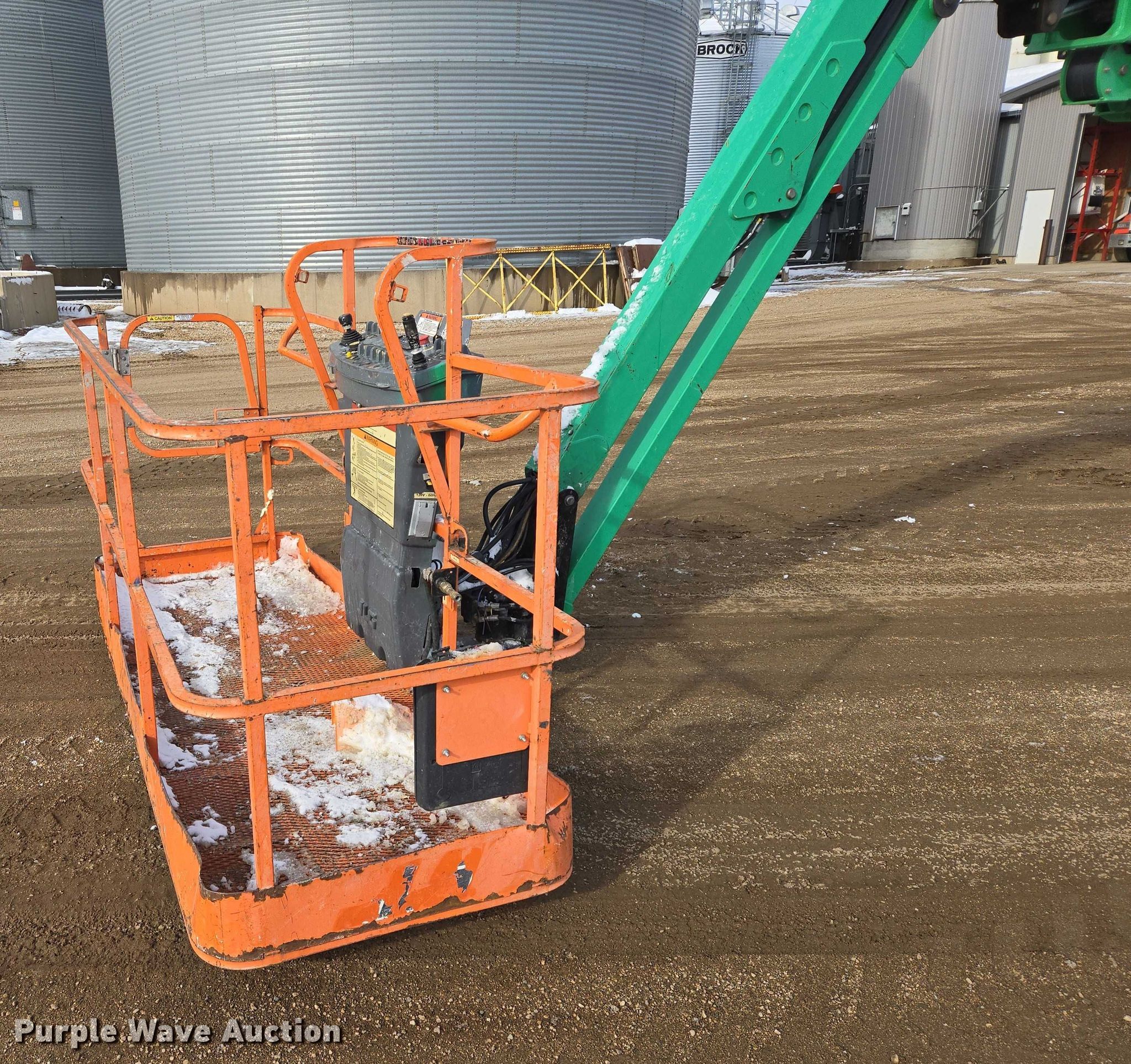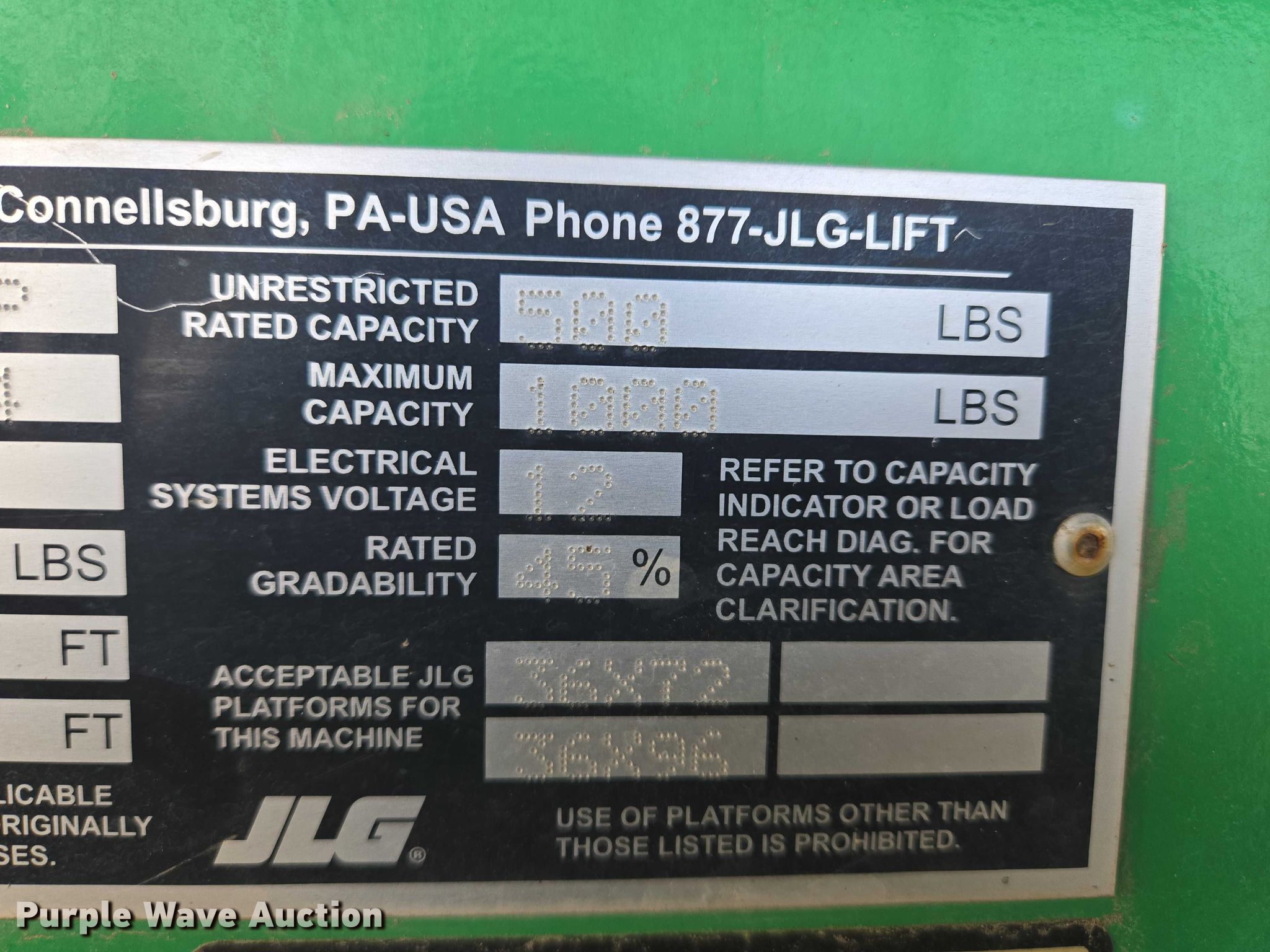 2015 JLG 1350SJP boom lift. Hours: 3,085 on meter, Serial: 0300202084. Engine Deutz, Cylinders: 4, Fuel type: Diesel. Chassis Four wheel drive, Steering: Crab, Four wheel. Features Rough terrain, Boom type: Telescopic, Maximum lift capacity: 1,000 lbs, Maximum reach length: 80', Maximum lift height: 135', Hydraulic extendable jib, Platform: 96" L x 36" W, AC power outlet, Air outlet, Controls: Platform, Ground, Platform rotation: Hydraulic. Tires Tire size: IN445/50D710, Foam filled. Notes Engine covers damaged. Westwood Colony. Montrose, SD 57048