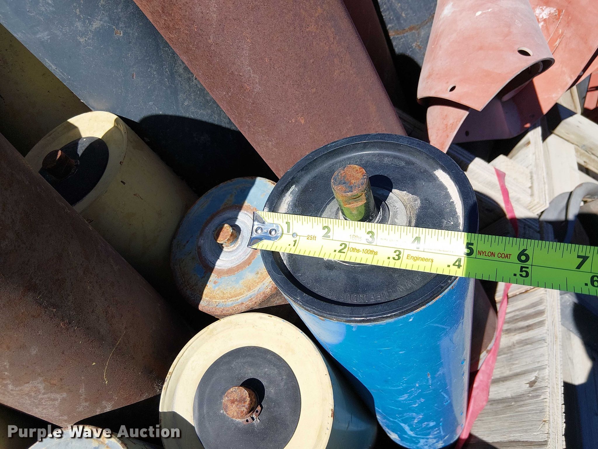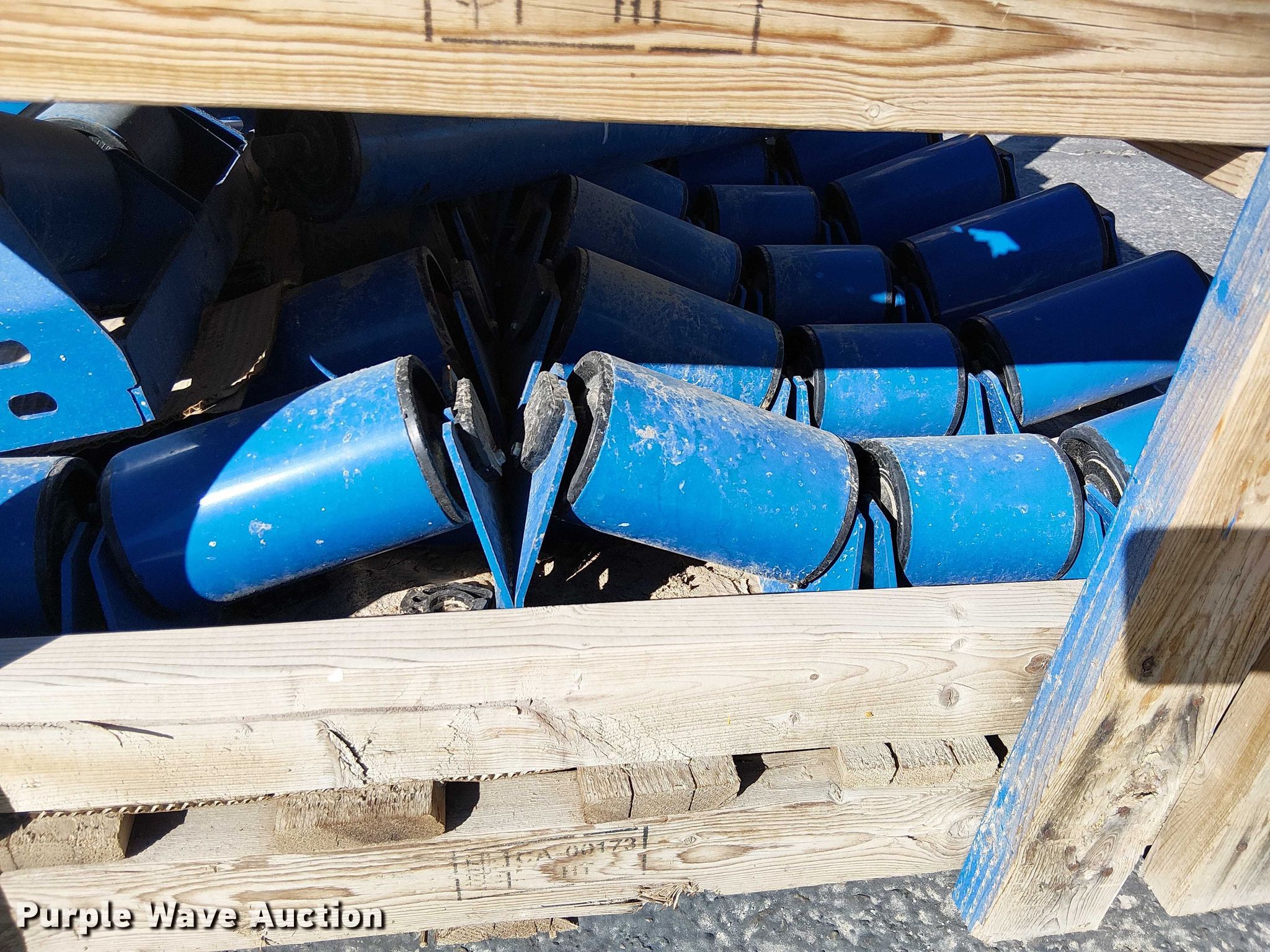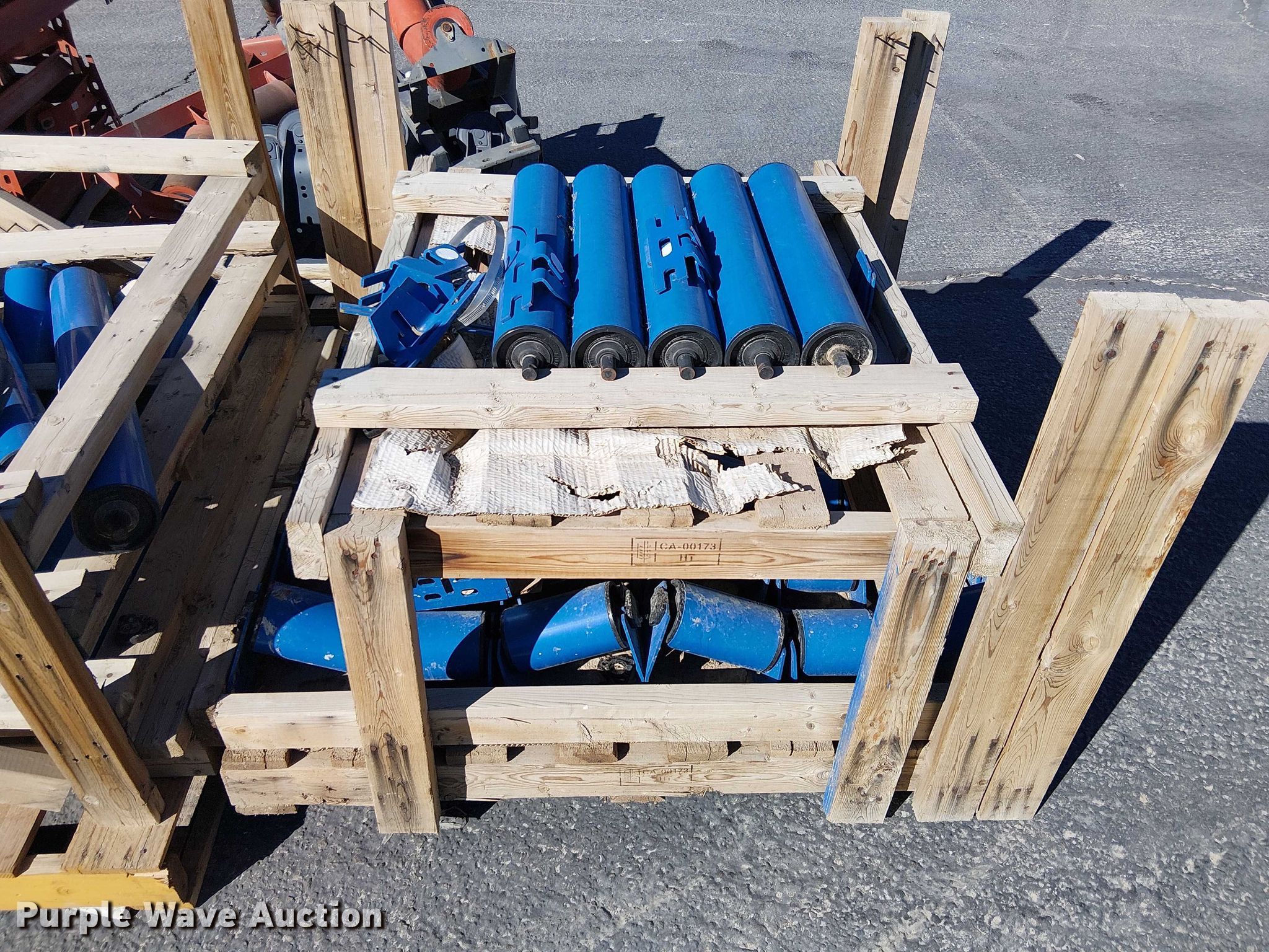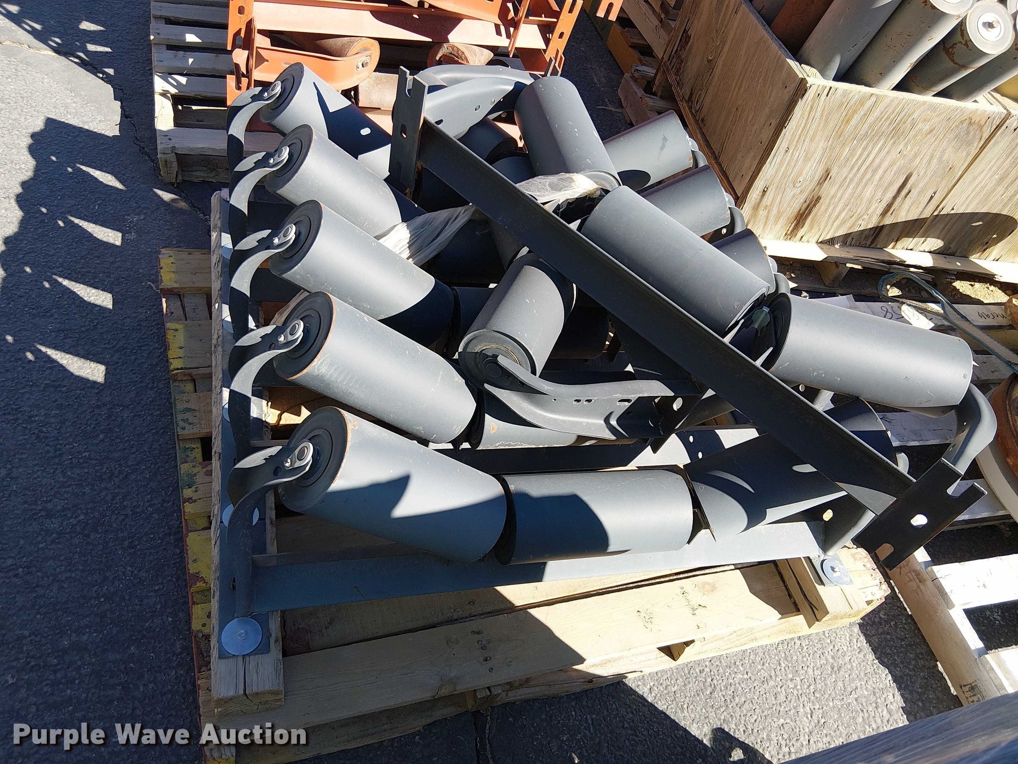 Purple Wave is selling a used Conveyor in California. This item is a (10) pallets of conveyor rollers and parts with the following: Rollers, Some unused, Cone crusher parts, Roller frames