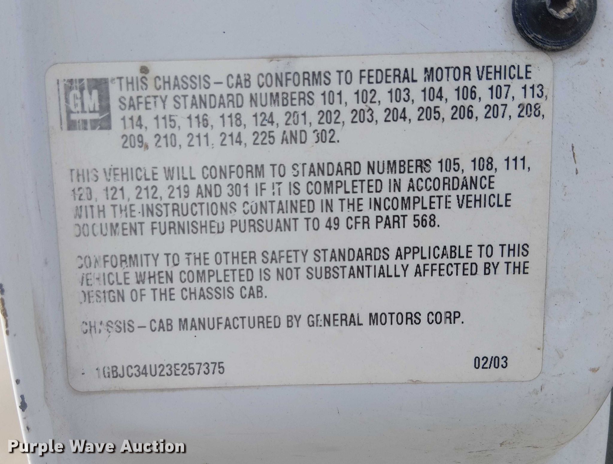 Purple Wave is selling a used 3/4 or 1 Ton Pickup or Van in Arizona. This item is a 2003 Chevrolet Silverado 3500HD flatbed pickup truck with the following: Miles: 12,483 on odometer, Miles: Actual unknown, Hours: 7,797 on meter, VIN: 1GBJC34U23E257375