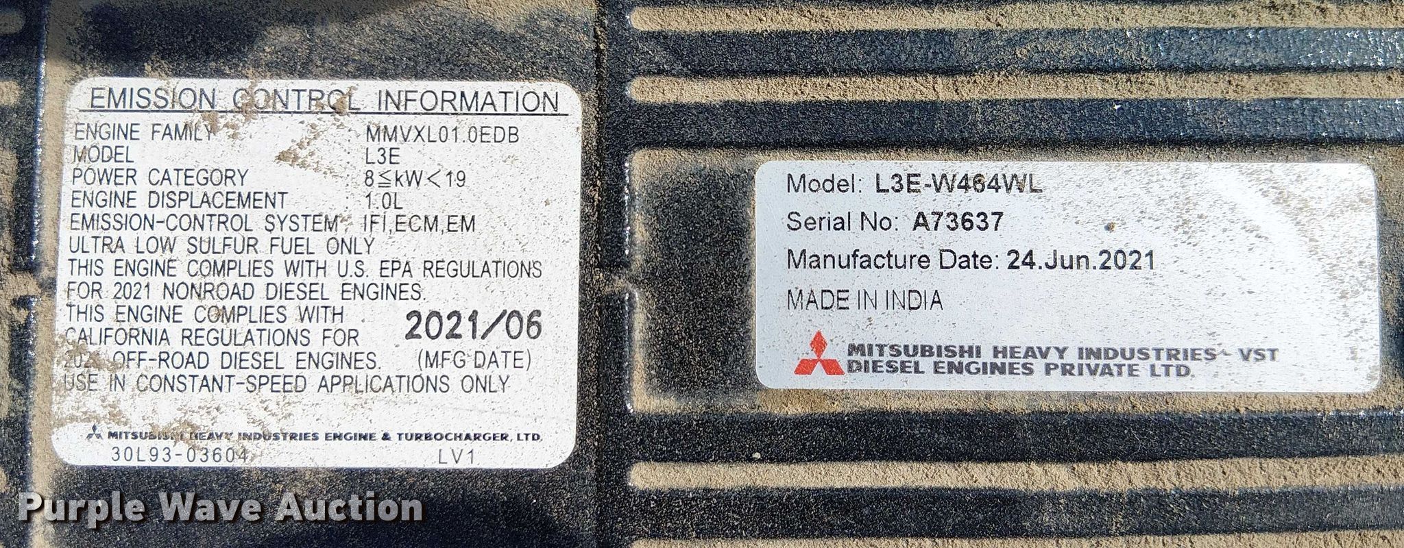 2022 Wanco WTRC arrow board trailer. Hours: 190 on meter, VIN: 514D1514M1006962. Dimensions Overall Length: 9', Width: 5'. Engine Mitsubishi L3E, Displacement: 1.0L, Cylinders: 3, Fuel type: Diesel. Tires Size: ST175/80D13. Notes Unknown operating condition. This is worksite support equipment and will not come with a title. Transfer of ownership documentation will be a bill of sale. WG. Chino, CA 91708