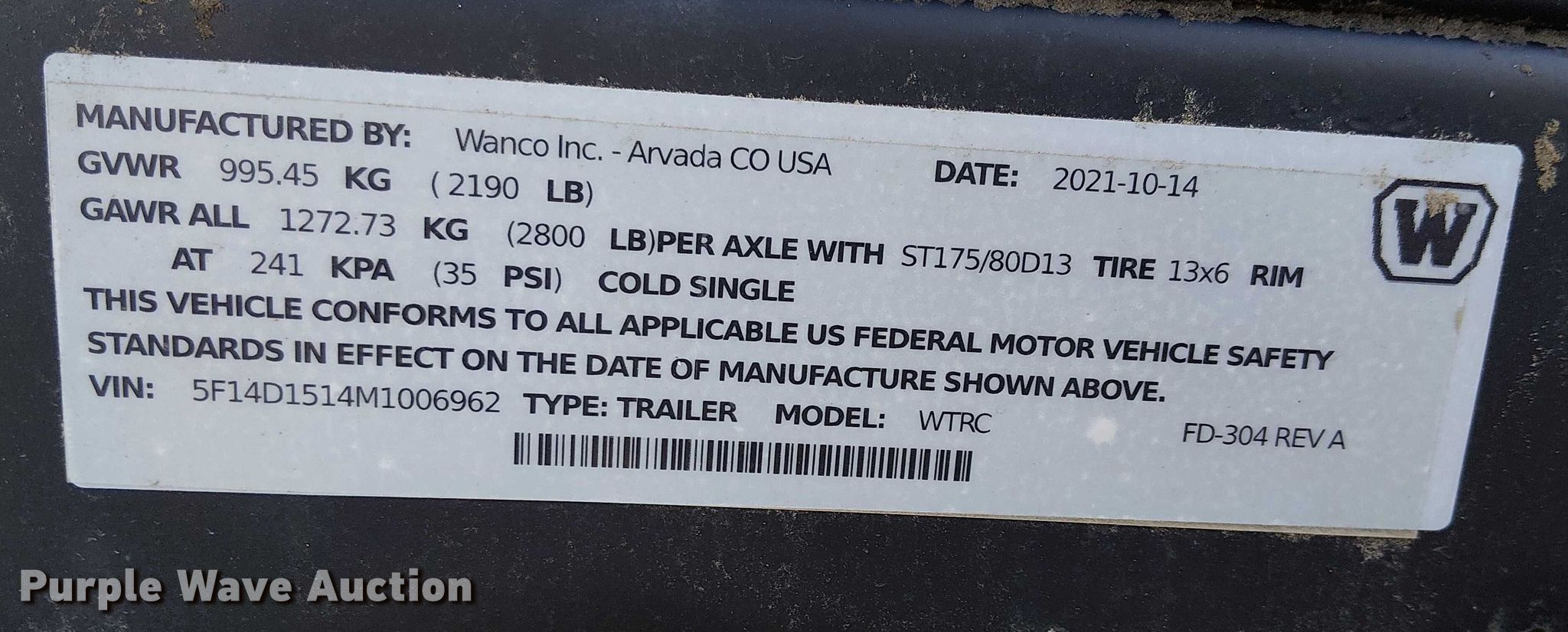 Purple Wave is selling a used Road Safety Equip. in California. This item is a 2022 Wanco WTRC arrow board trailer with the following: Hours: 190 on meter, VIN: 514D1514M1006962