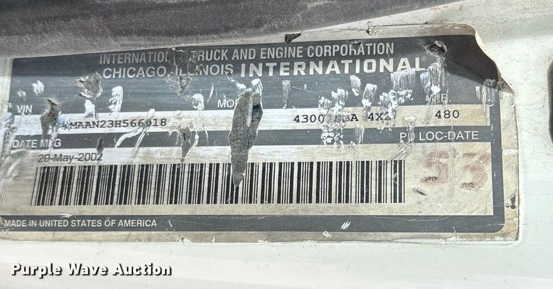 Take a look at this used 2003 International 4300 flatbed truck being sold on December 18th, 2025 in the Thursday December 18 Construction Equipment Auction made by International. Take a look at all of the item information below or take a look at similar auctions for Trucks.