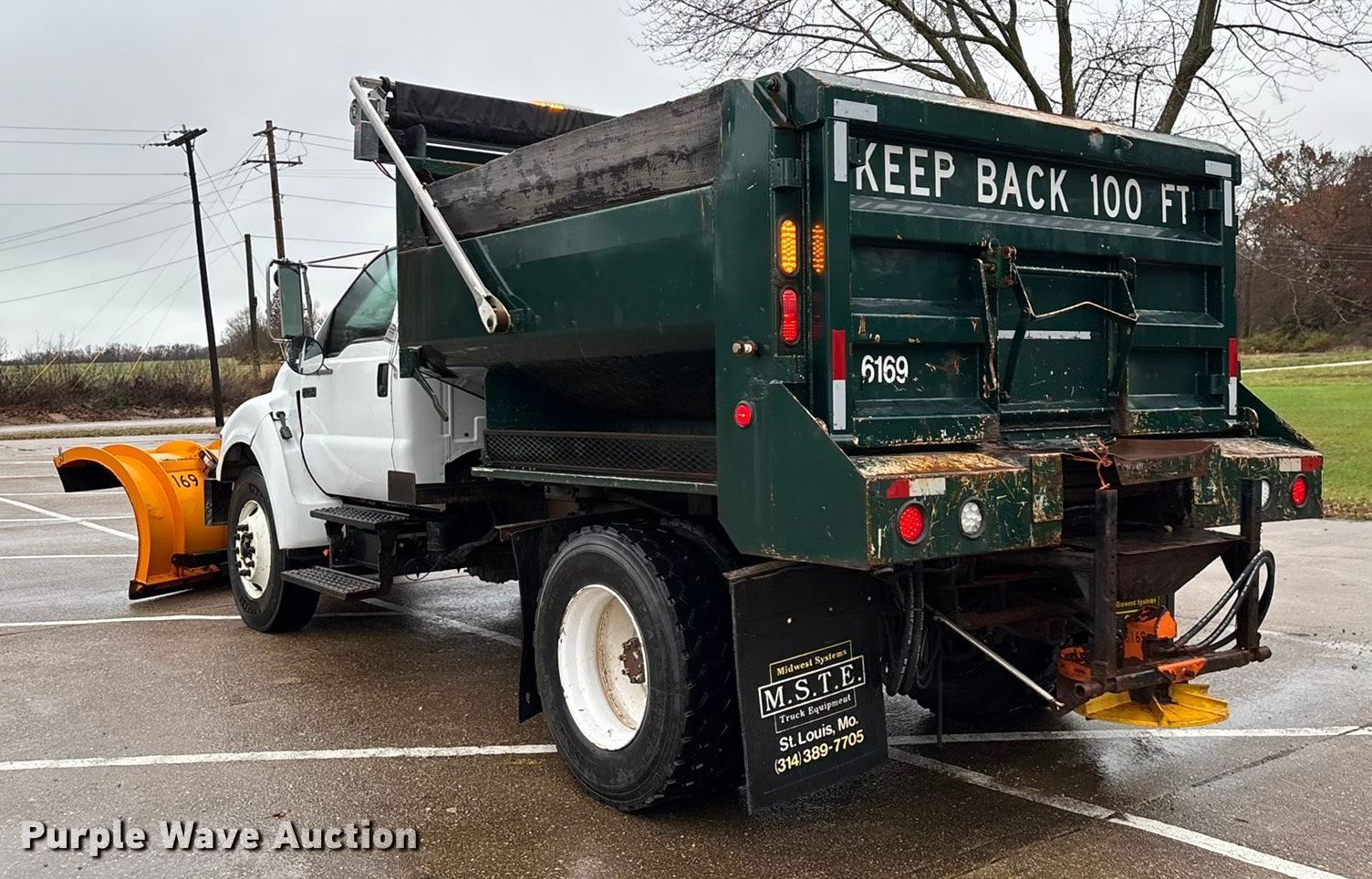 2005 Ford F750 Super Duty XL dump truck. Miles: 65,882 on odometer, Hours: 5,625 on meter, VIN: 3FRXF76T75V152141, Unit #: 6169. Engine Caterpillar C7 Acert, Serial: KAL79034, Displacement: 7.2L, Cylinders: 6, Fuel type: Diesel, HP: 250, kW: 186. Transmission Automatic. Chassis Axles: Single, Suspension: Spring, Brakes: Air, PTO, GVWR: 33,000 lbs. Interior AC, Heat, Cruise control. Features Bed Dump bed, Serial: MB2-00983, Length: 9', Width: 8', Side height: 35", Side board height: 12", Bed type: Steel, Roll tarp, Ram: Single, End gate: Air operated, Plow Henderson 10x42xIS, Width: 120". Tires Size: 11R22.5. Notes Contents not included, Windshield chipped or cracked. Missouri title. Seller is a Missouri licensed motor vehicle dealer. The buyer may be required to pay sales tax and/or registration fees to the dealer prior to taking possession. Buyers may be required to provide identification to the licensed dealer to comply with state laws. Title will be assigned and distributed by the dealer. Please contact the seller for distribution questions. Cadle Garber Auto Group. Versailles, MO 65084