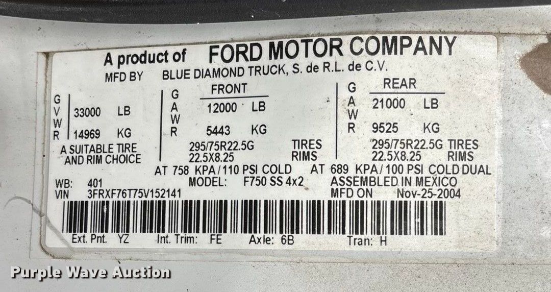 Take a look at this used 2005 Ford F750 Super Duty XL dump truck being sold on December 18th, 2025 in the Thursday December 18 Construction Equipment Auction made by Ford. Take a look at all of the item information below or take a look at similar auctions for Construction Trucks.