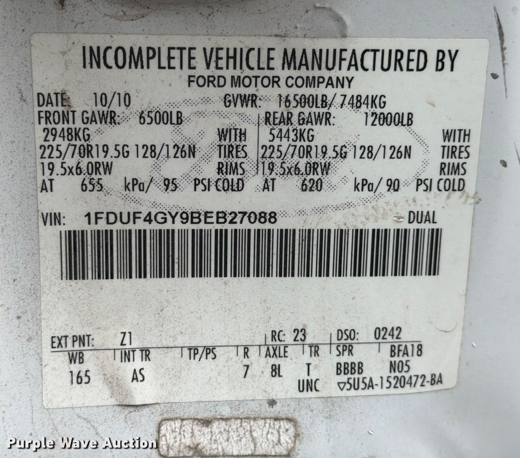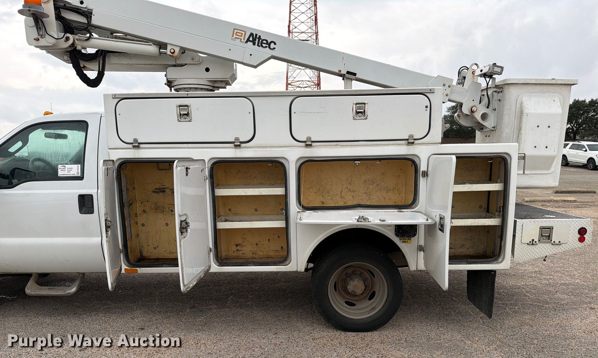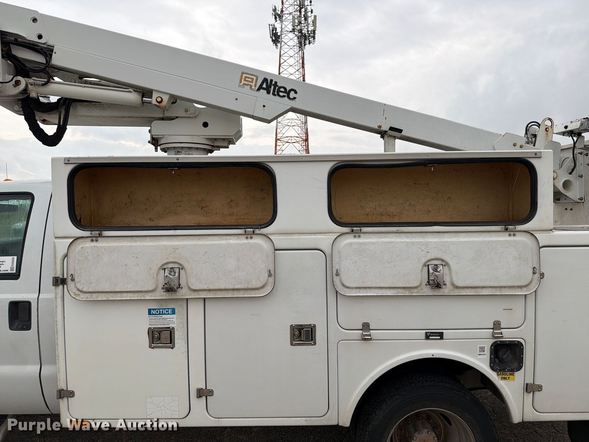 2011 Ford F450 Super Duty bucket truck. Miles: 139,040 on odometer, VIN: 1FDUF4GY9BEB27088, Unit #: 116021. Engine Displacement: 6.8L, Cylinders: 10, Fuel type: Gas. Transmission Automatic. Chassis Axles: Single, Suspension: Spring, Brakes: Hydraulic, PTO, Wet kit, GVWR: 16,500 lbs, Wheelbase: 165". Interior AC, Heat, Cruise control, Auxiliary controls, Brake controller. Features Bed Utility bed, BrandFX, Serial: 10 28310, Length: 13' 2", Width: 96", Boom Altec A7235, Serial: 1010BX4209, Mast height: 35', Maximum lift capacity: 350 lbs, Boom type: Articulating, Telescopic, Man basket, Boom controls Ground, Platform/ basket.. Tires Size: 225/70R19.5. Notes Dash warning indicator: Oil pressure, Hail damage. Texas title. Title distribution may be delayed up to 30 days from verification of funds. Brightspeed. Killeen, TX 76543