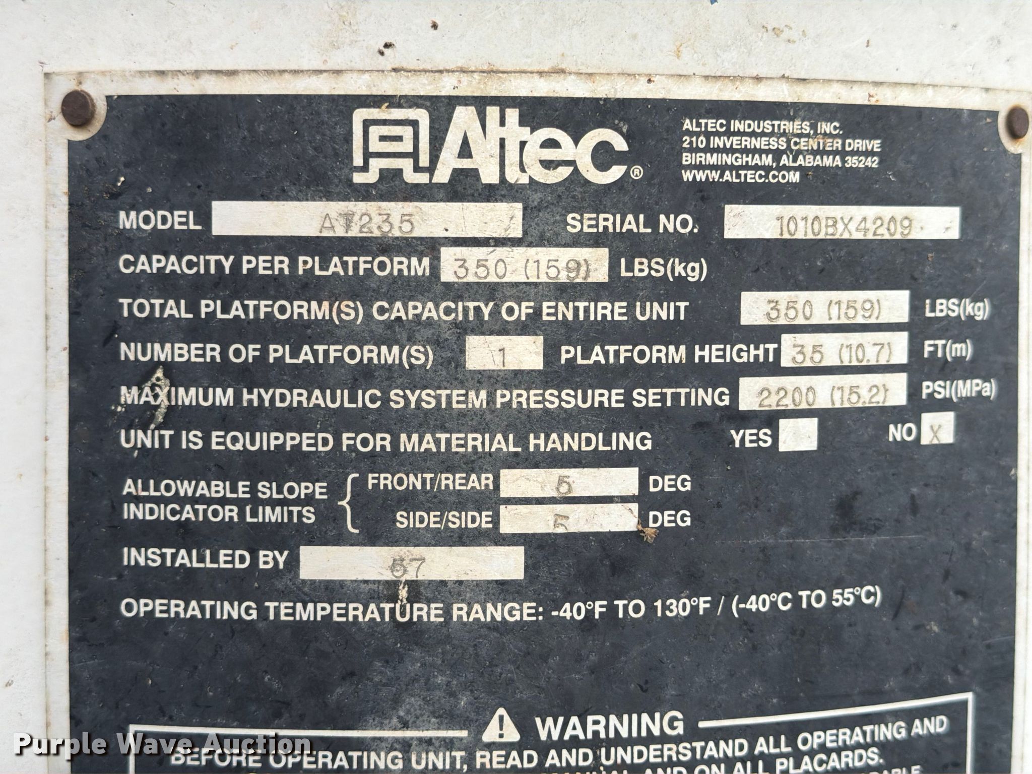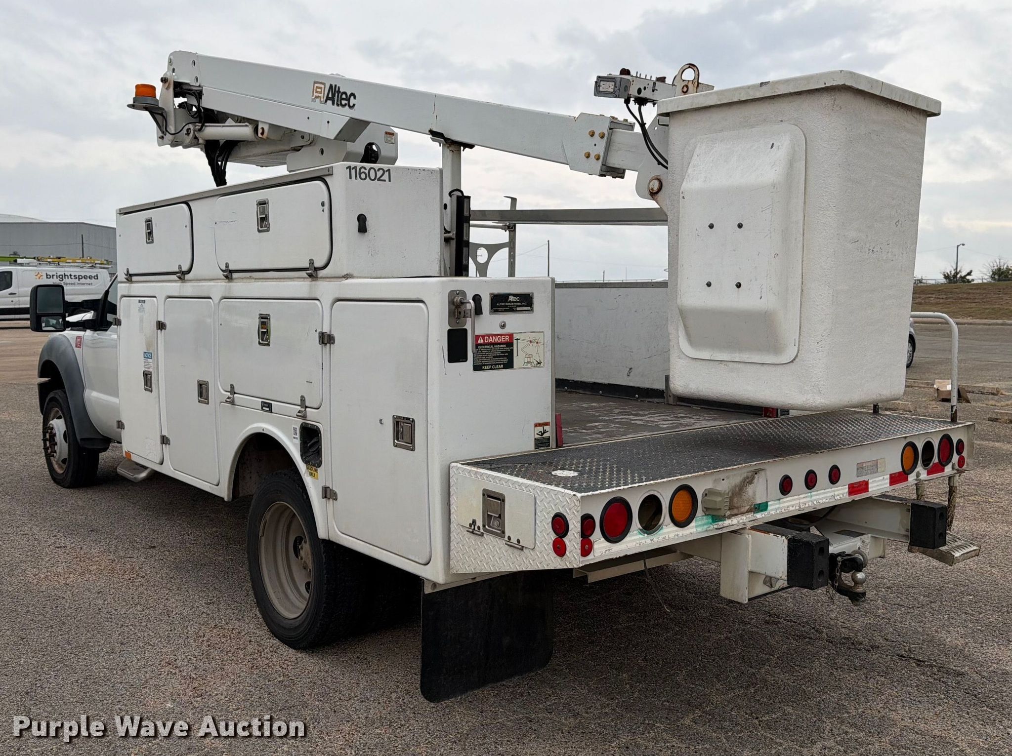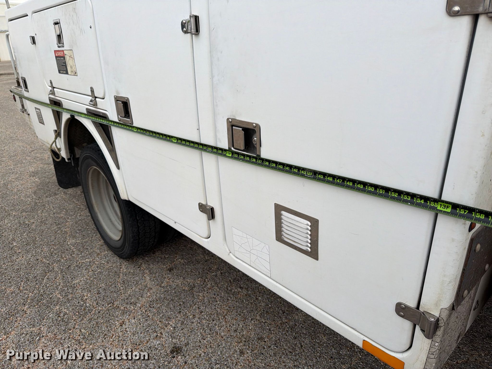 2011 Ford F450 Super Duty bucket truck. Miles: 139,040 on odometer, VIN: 1FDUF4GY9BEB27088, Unit #: 116021. Engine Displacement: 6.8L, Cylinders: 10, Fuel type: Gas. Transmission Automatic. Chassis Axles: Single, Suspension: Spring, Brakes: Hydraulic, PTO, Wet kit, GVWR: 16,500 lbs, Wheelbase: 165". Interior AC, Heat, Cruise control, Auxiliary controls, Brake controller. Features Bed Utility bed, BrandFX, Serial: 10 28310, Length: 13' 2", Width: 96", Boom Altec A7235, Serial: 1010BX4209, Mast height: 35', Maximum lift capacity: 350 lbs, Boom type: Articulating, Telescopic, Man basket, Boom controls Ground, Platform/ basket.. Tires Size: 225/70R19.5. Notes Dash warning indicator: Oil pressure, Hail damage. Texas title. Title distribution may be delayed up to 30 days from verification of funds. Brightspeed. Killeen, TX 76543