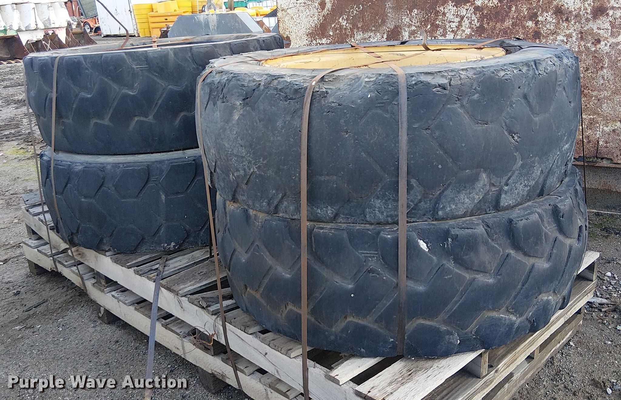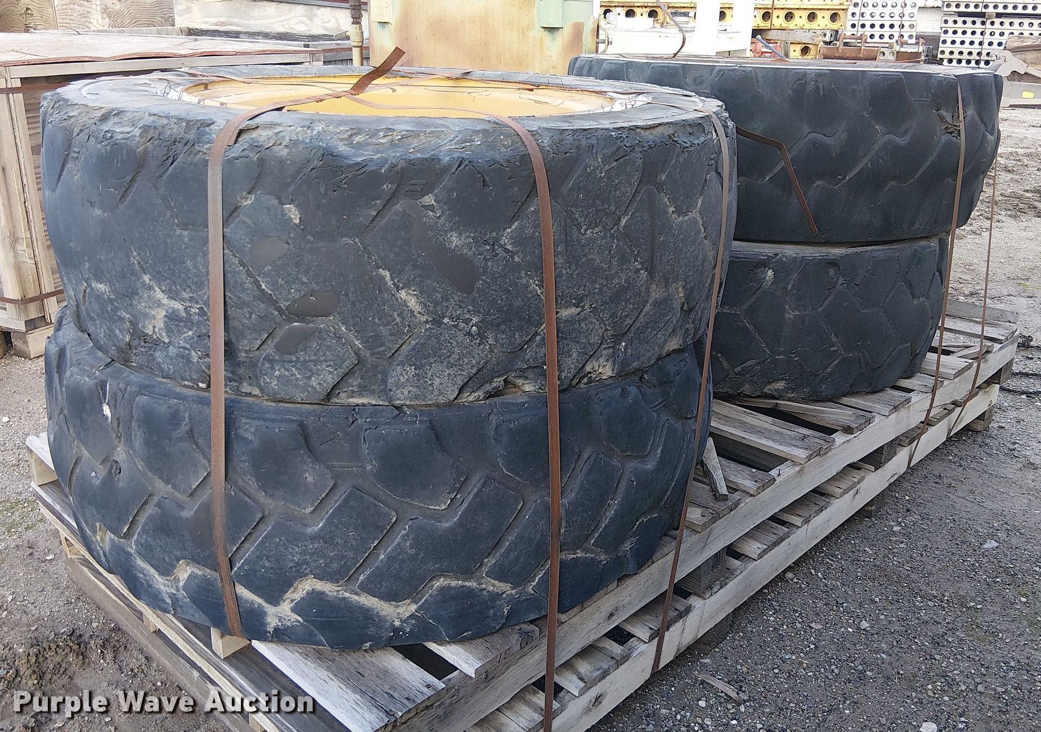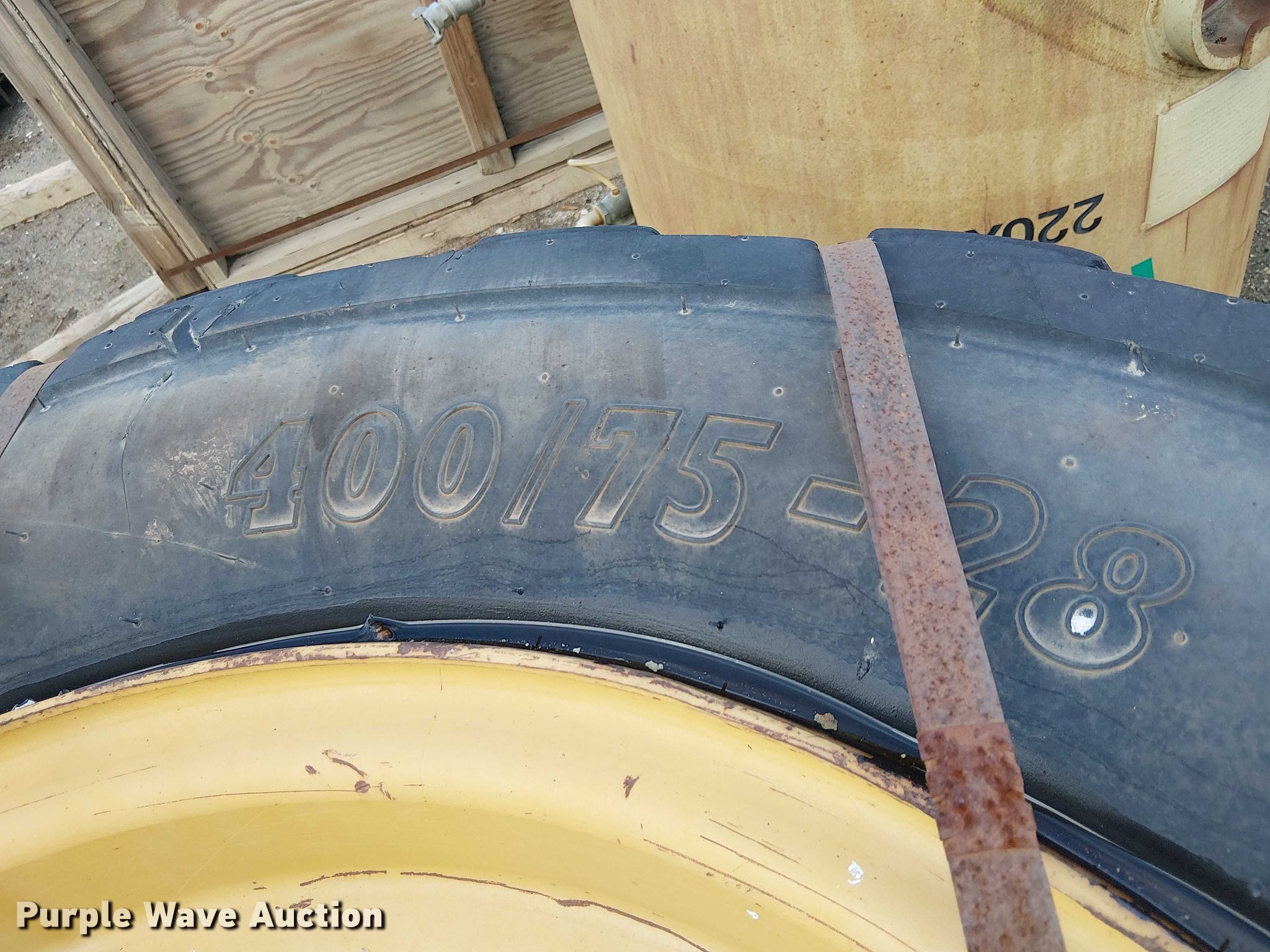 Purple Wave is selling a used Industrial Tires or Tracks in California. This item is a (4) 400/75-28 tires and wheels with the following: Fit Caterpillar 1255