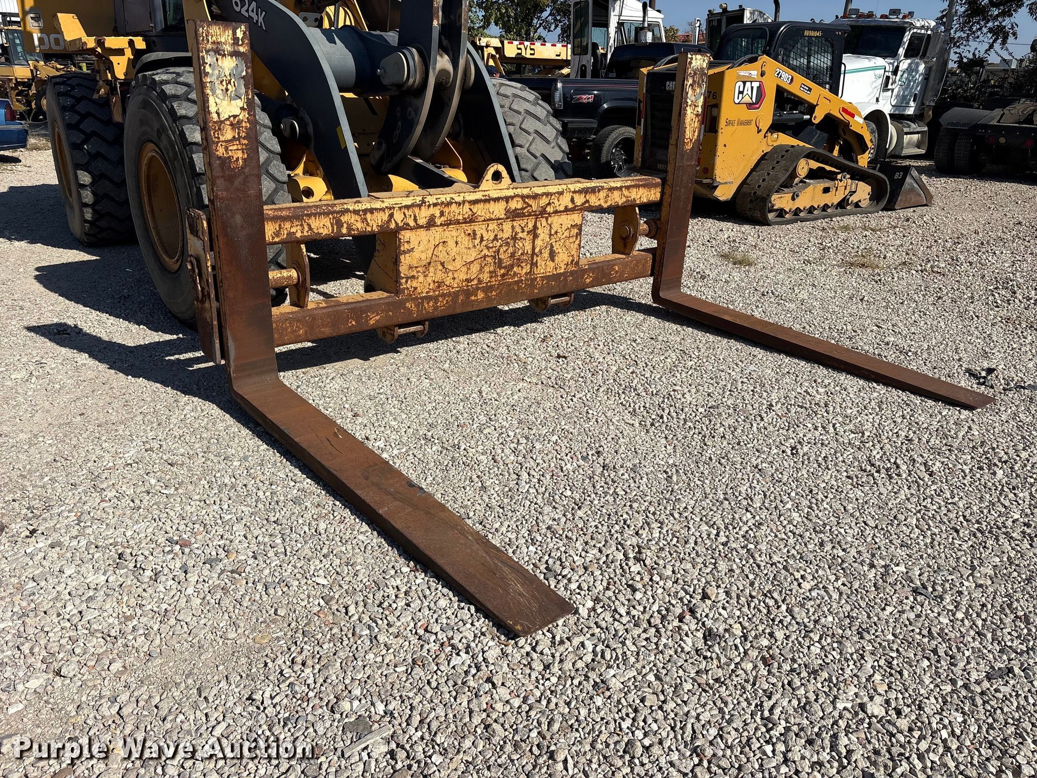 2014 John Deere 624K wheel loader. Hours: 26,219 on meter, Serial: 1DW624KZJEF661791. Engine John Deere 6068HDW, Serial: PE6068U003490, Cylinders: 6, Fuel type: Diesel. Transmission Powershift, 4F - 3R. Operators station Enclosed cab, AC, Heat, Bucket controls: Joystick, Ride control. Features Counter weights, Forks Wicker WPI624K, Length: 78". Tires Size: 20.5R25. Scott's Equipment. Irving, TX 75061