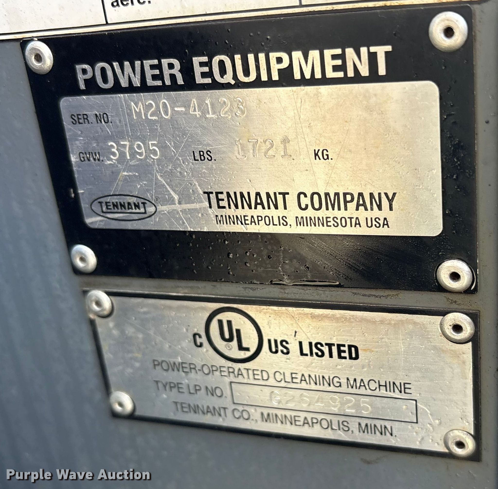 Purple Wave is selling a used All Other Household Items in Texas. This item is a Tennant M20 Sweeper-scrubber. with the following: Hours: 2,860 on meter, Serial: M204123