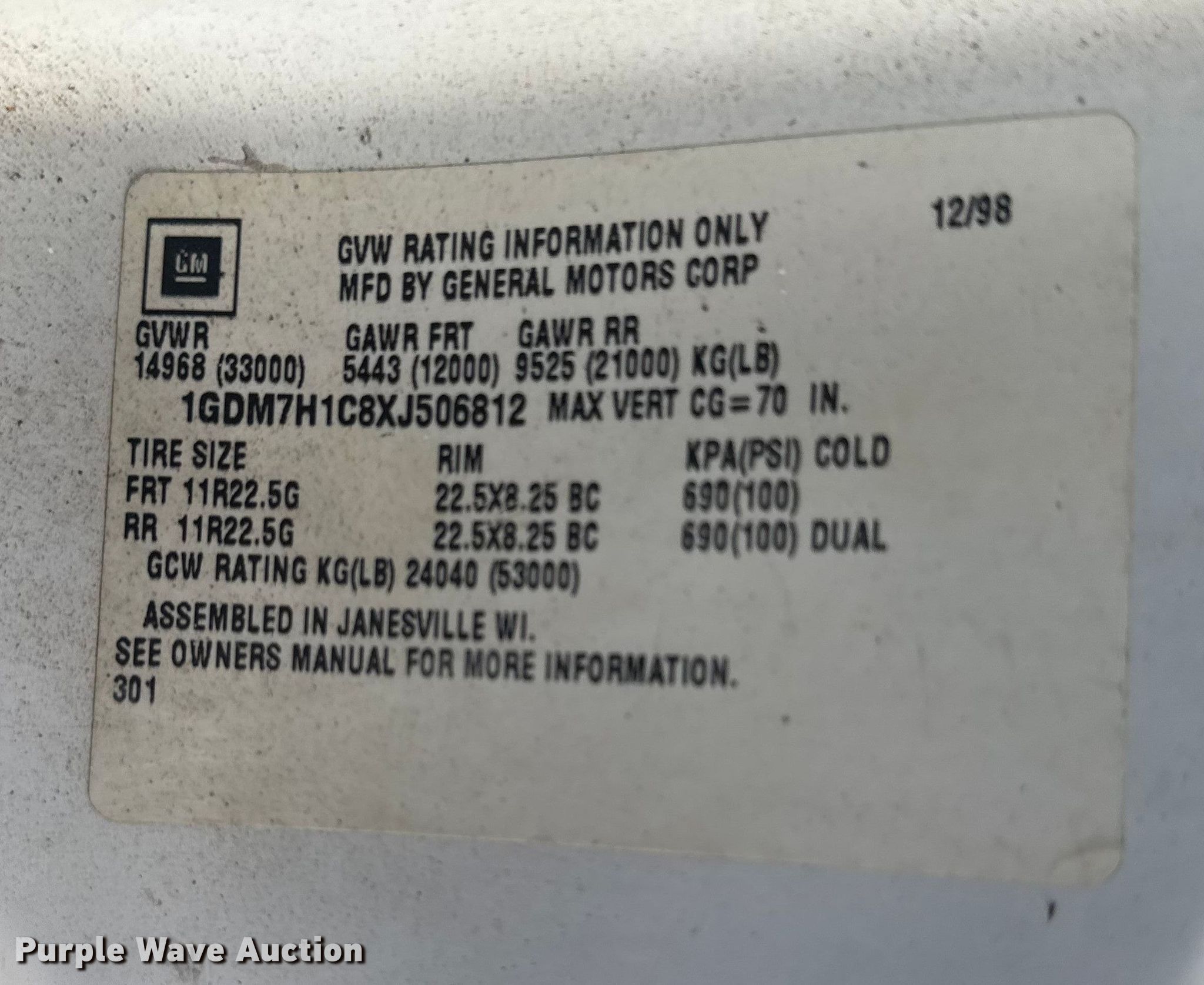 - VIN: 1GDM7H1C8XJ506812