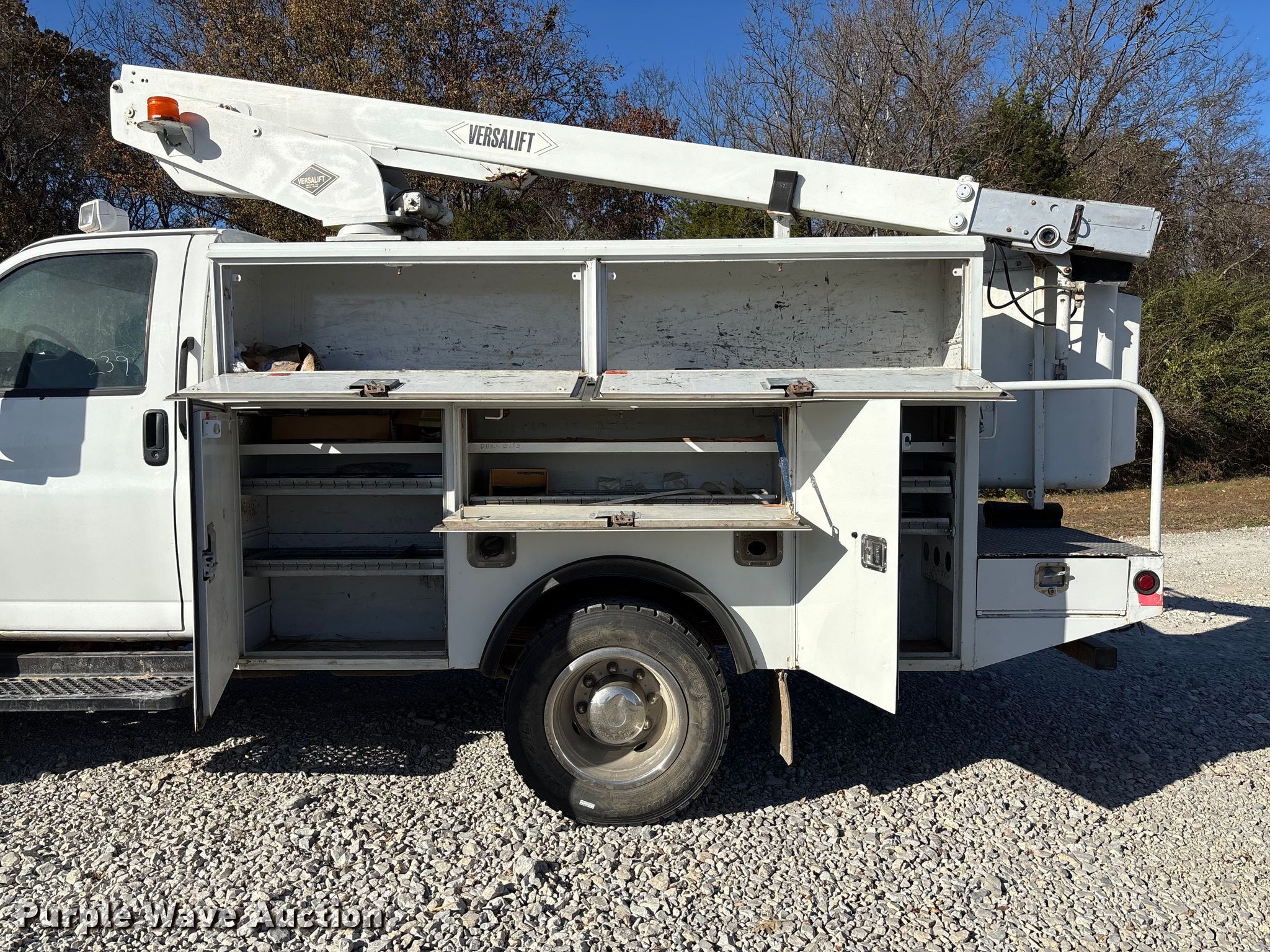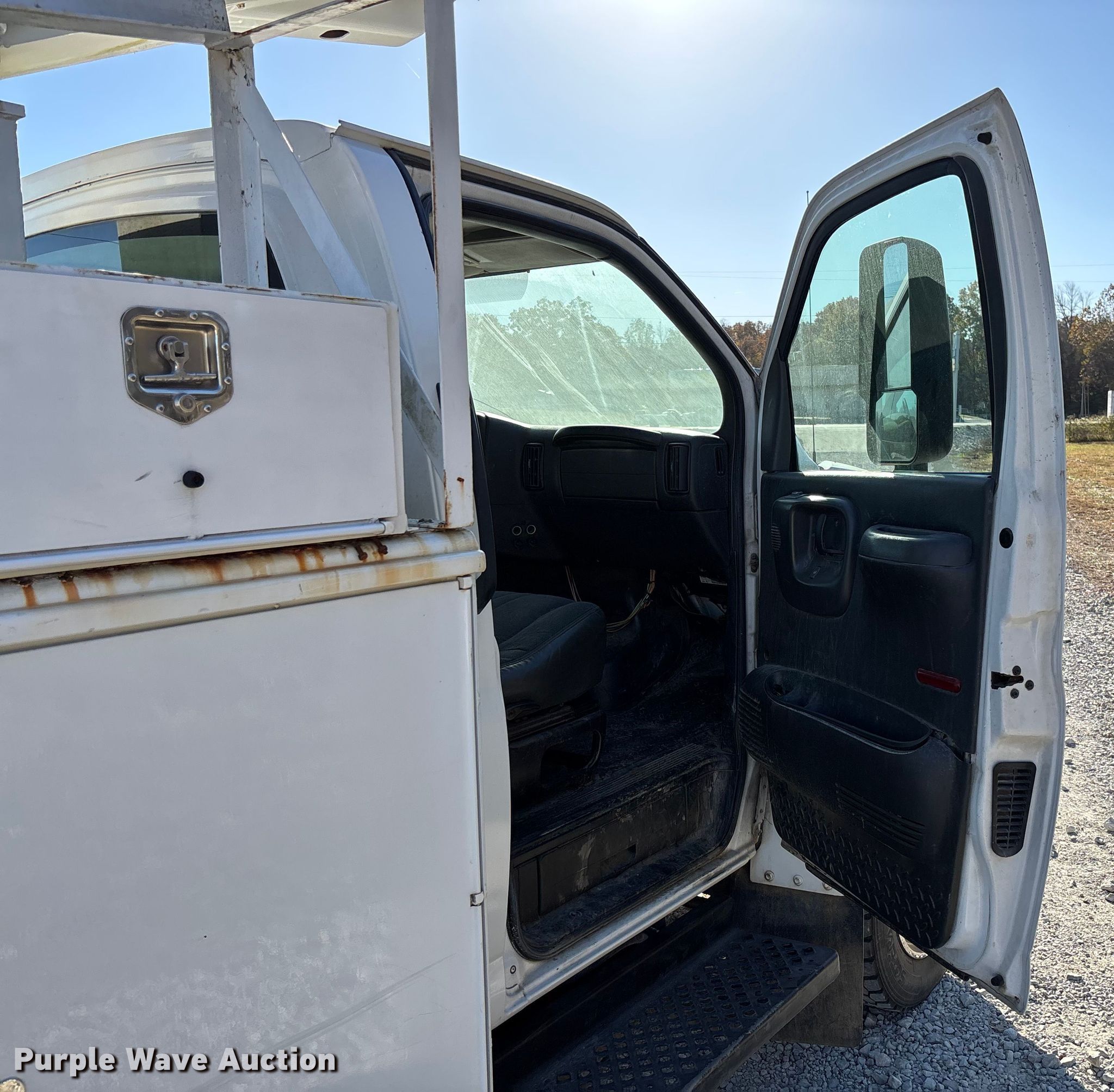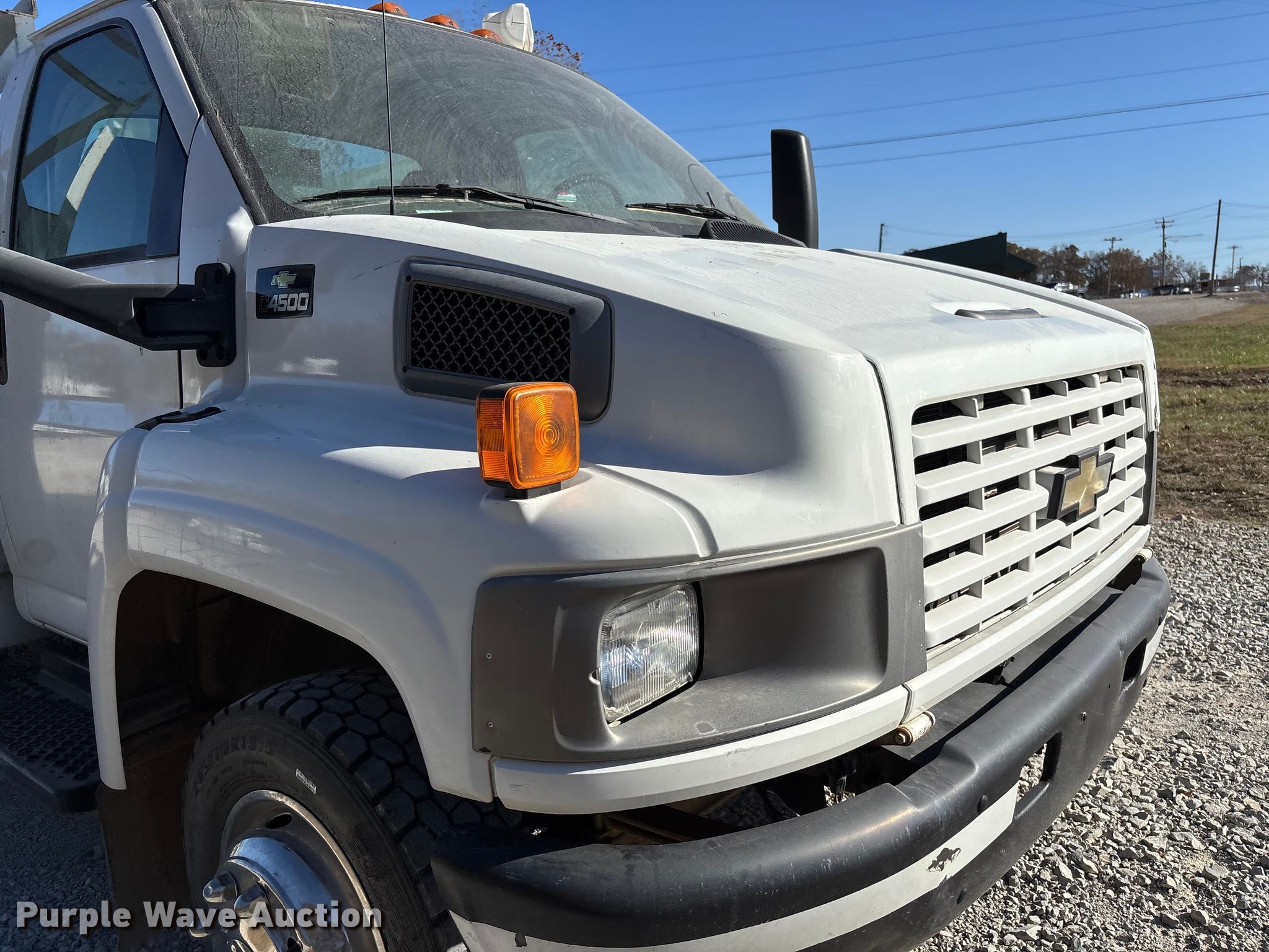 2007 Chevrolet C4500 bucket truck. Miles: 150,089 on odometer, VIN: 1GBE4C1G97F402084. Engine Displacement: 8.1L, Cylinders: 8, Fuel type: Gas. Transmission Automatic. Chassis Axles: Single, Suspension: Spring, Brakes: Hydraulic, PTO, GVWR: 17,500 lbs, Wheelbase: 128". Interior AC, Heat, Power windows, Power locks, Auxiliary controls, Brake controller. Features Bed Utility bed, Reading, Length: 9', Width: 7' 8", Boom Versalift, Boom type: Articulating, Telescopic, Man basket, Boom controls Ground, Platform/ basket.. Tires Size: 245/70R19.5. Notes Dash warning indicator: ABS, Man basket damaged. Arkansas title. Title distribution may be delayed up to 14 days from verification of funds. D&H Contracting, Inc. Imboden, AR 72434