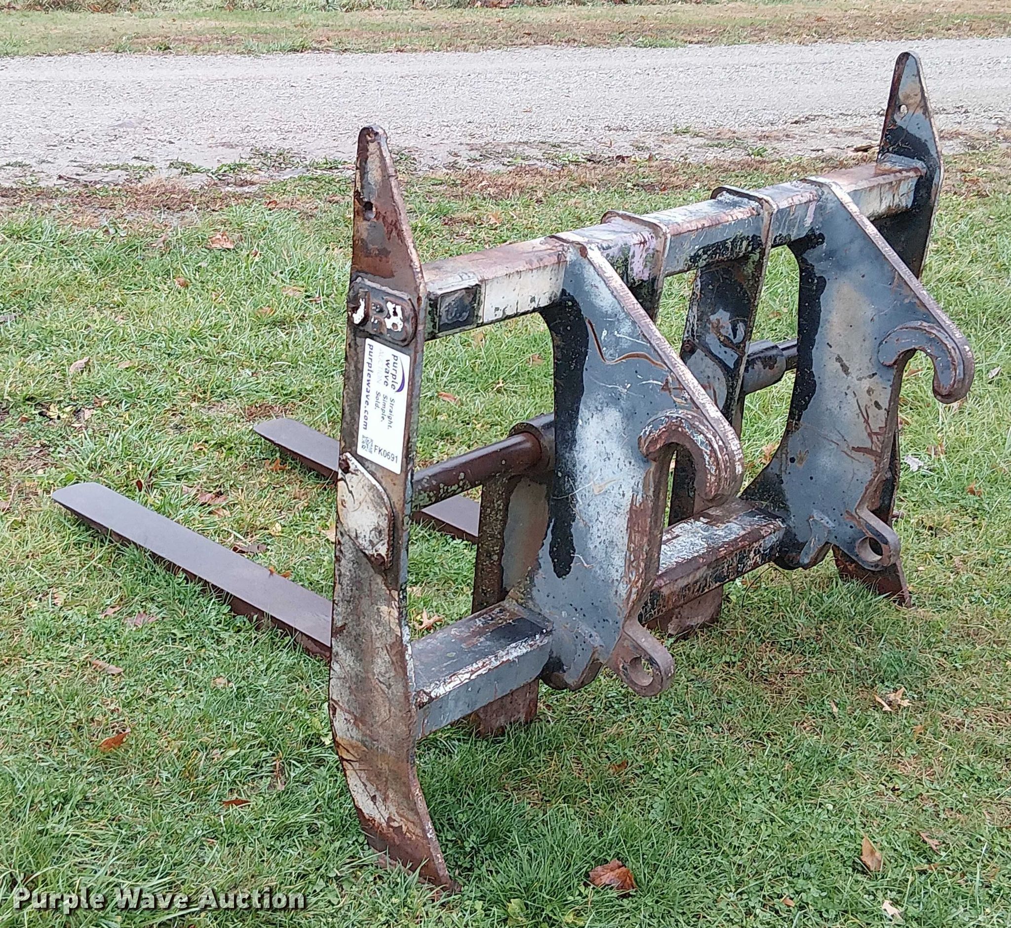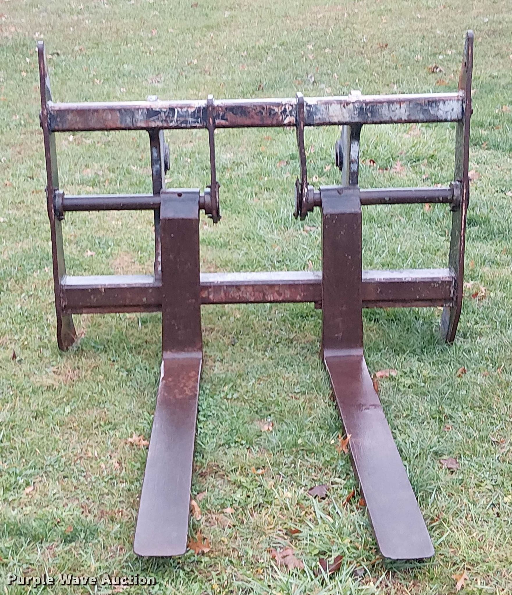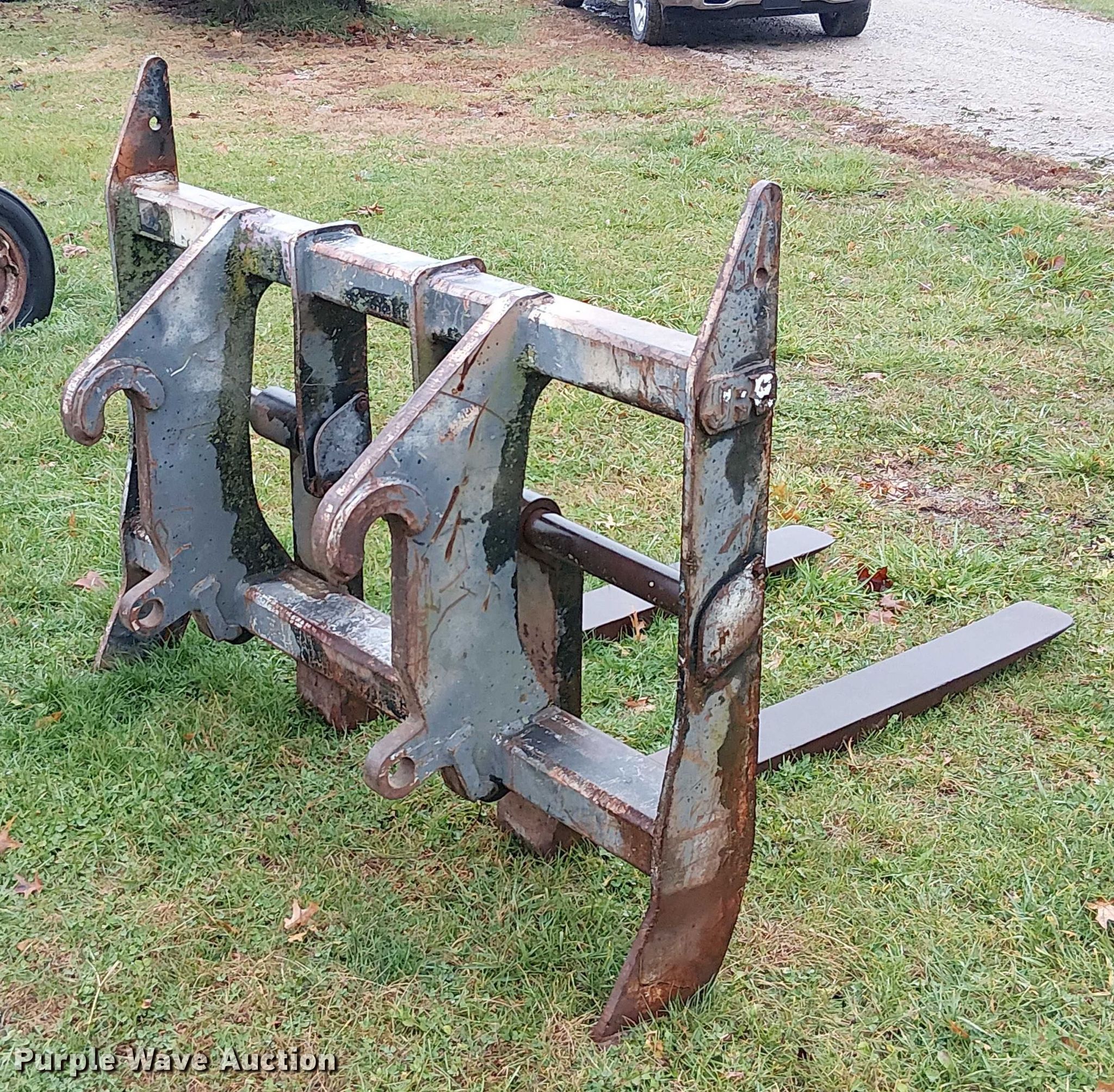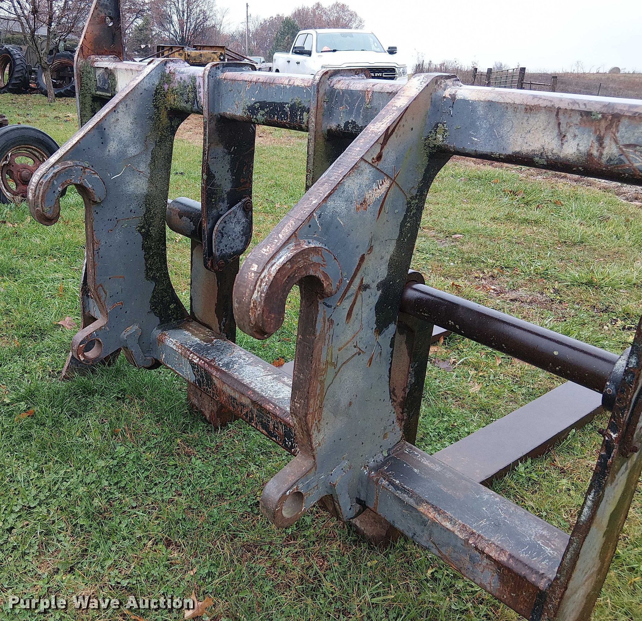 Purple Wave is selling a used Wheel Loader Attach. in Missouri. This item is a JRB wheel loader forks with the following: Length: 59", Pin diameter: 2"
