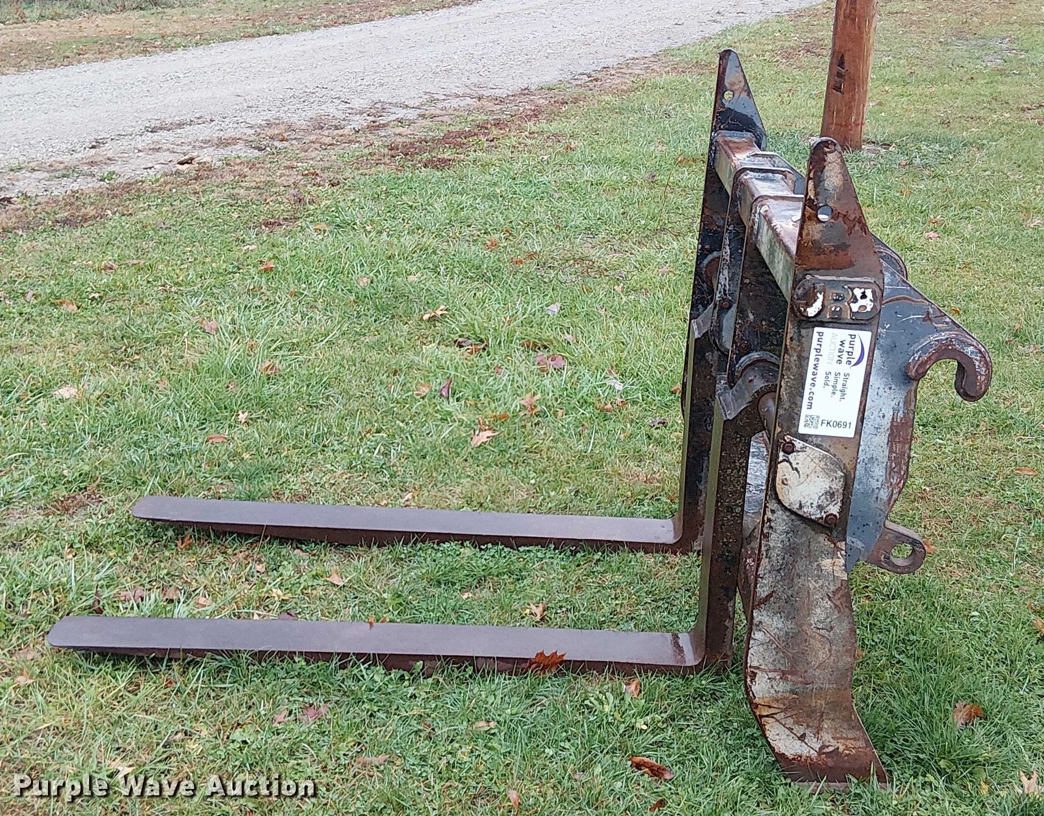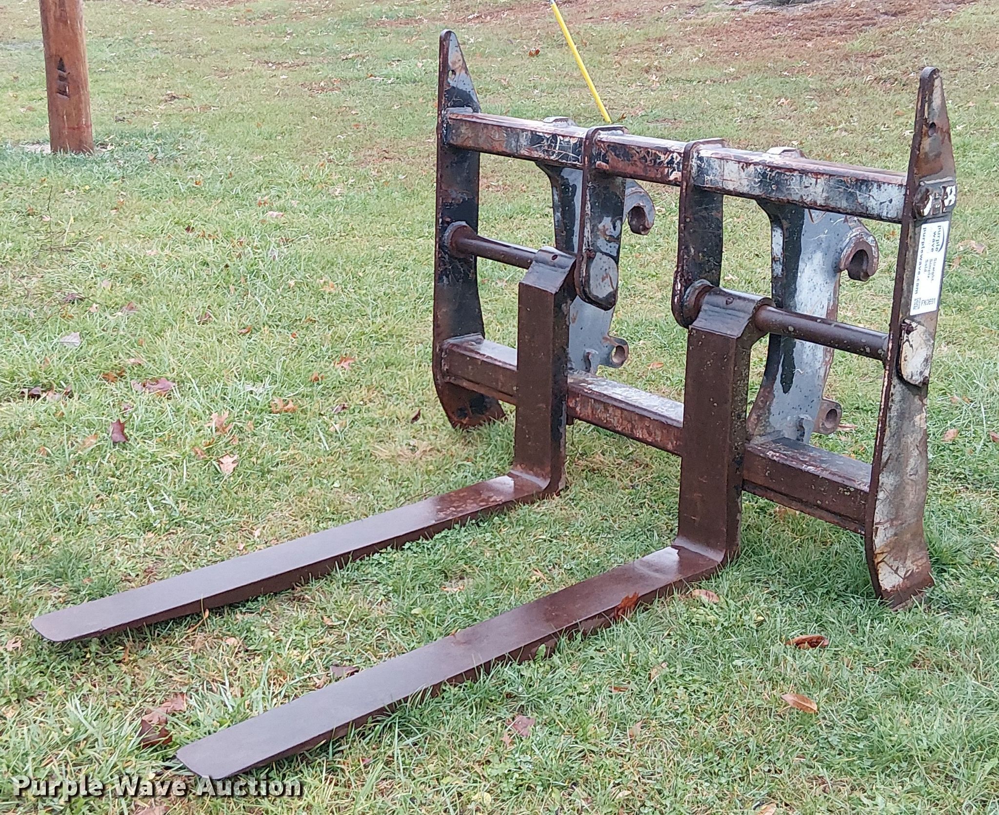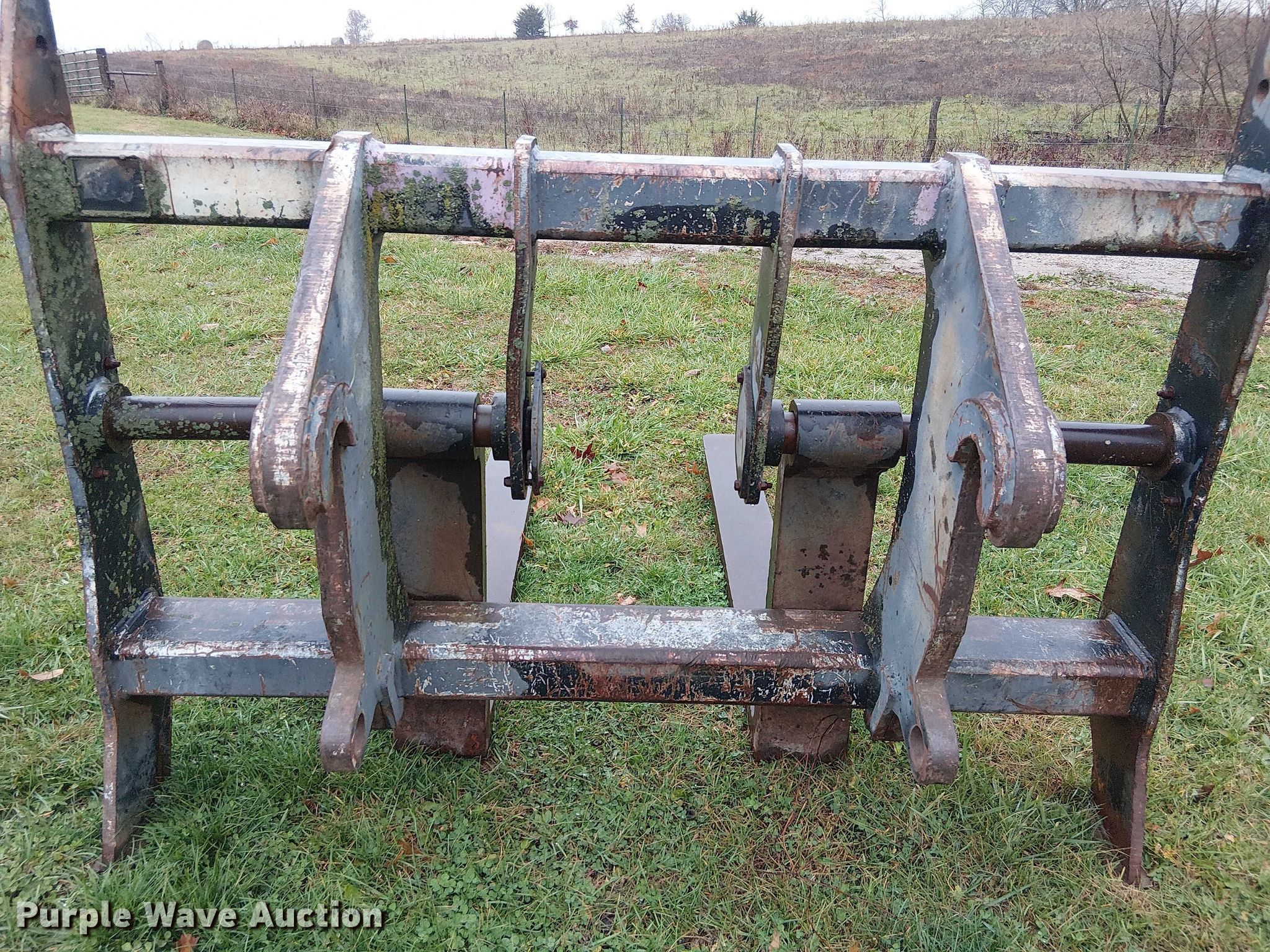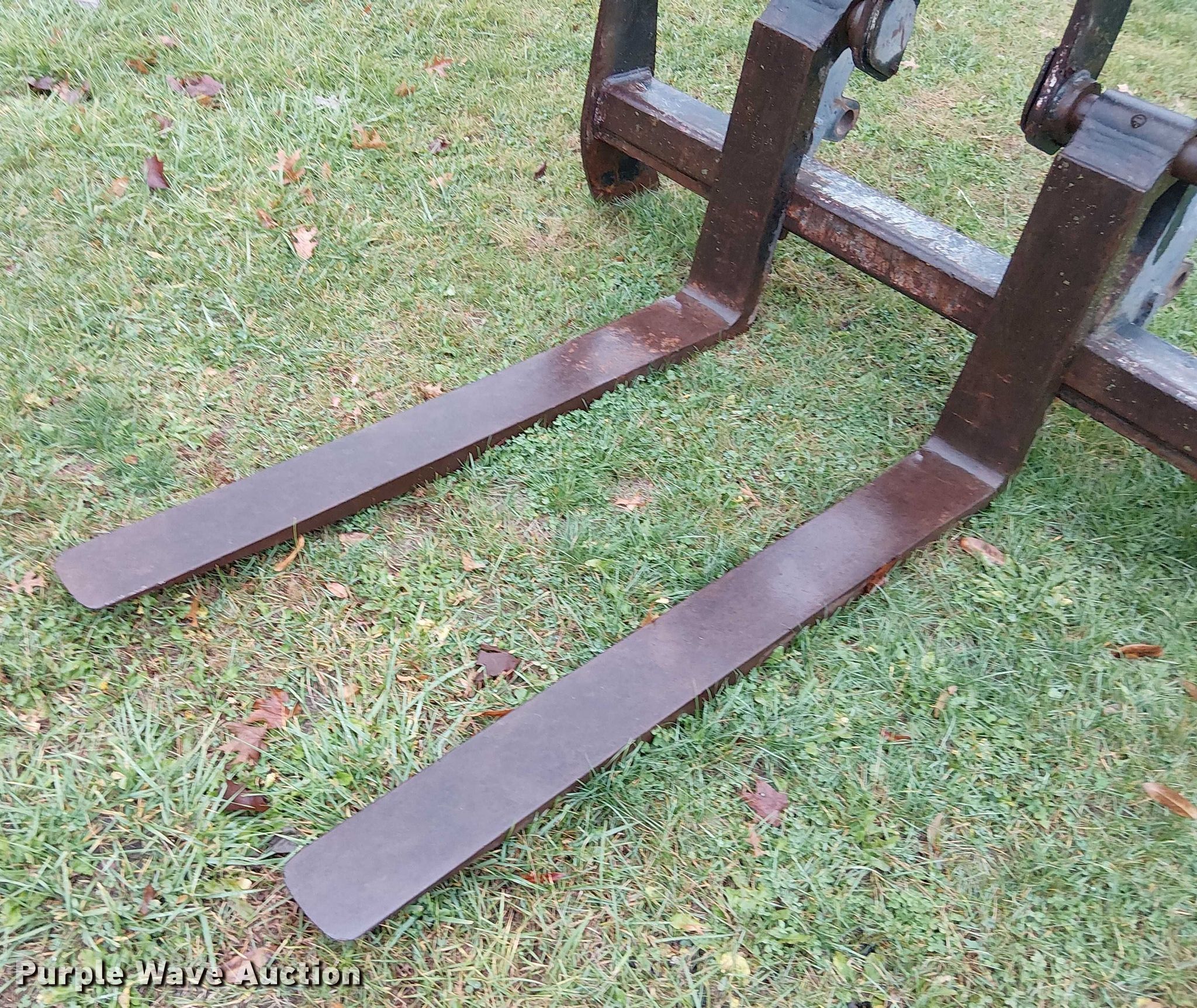 Purple Wave is selling a used Wheel Loader Attach. in Missouri. This item is a JRB wheel loader forks with the following: Length: 59", Pin diameter: 2"