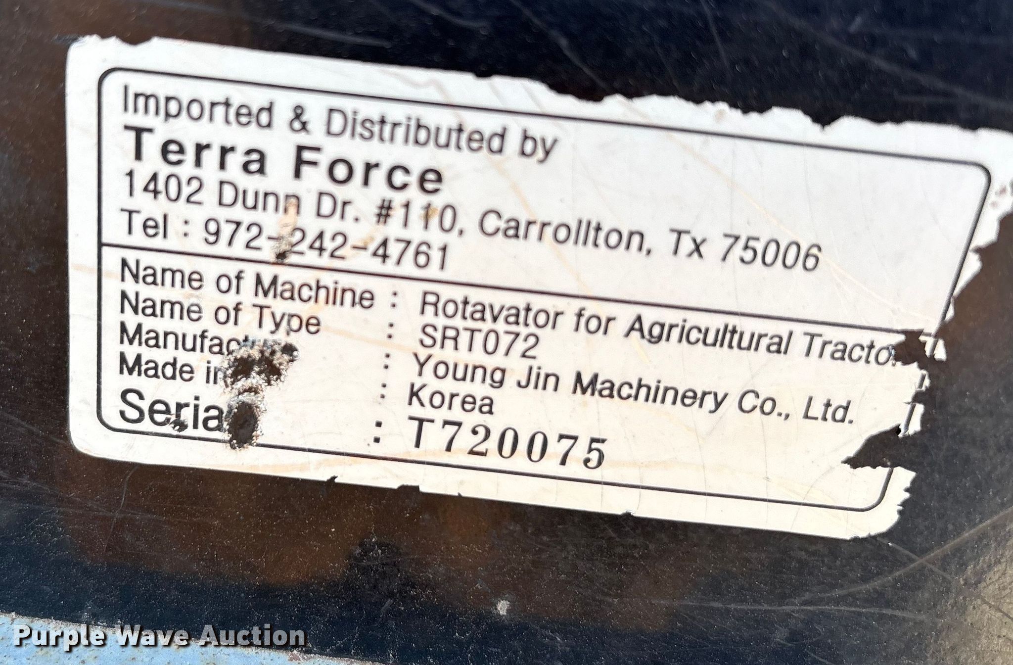 2022 Terra force SRT072 skid steer tiller. Serial: T720075, Unit #: 4948, Width: 72". Notes Skid steer not included. Okie Rents - Open inspection December 20 and 26, 2025. 5280 State Highway 7. Davis, OK 73030