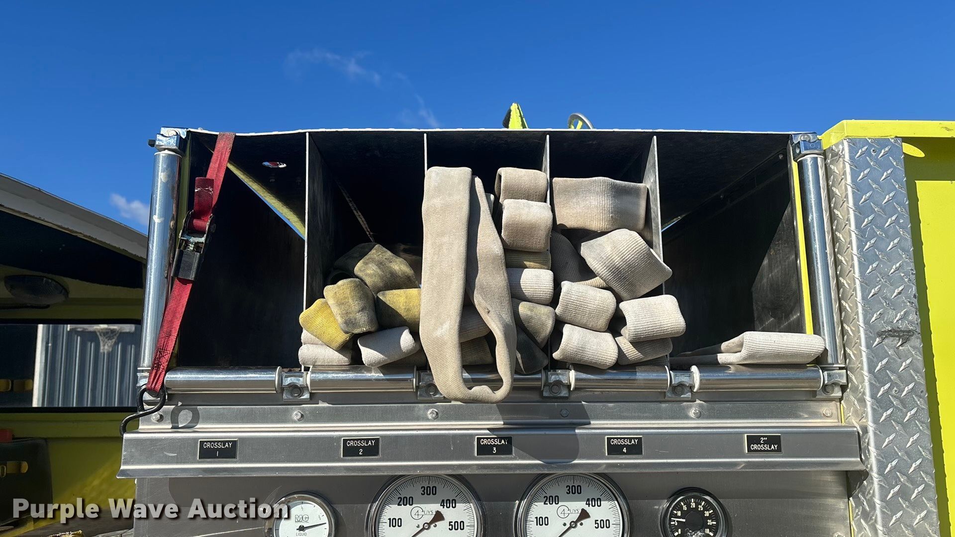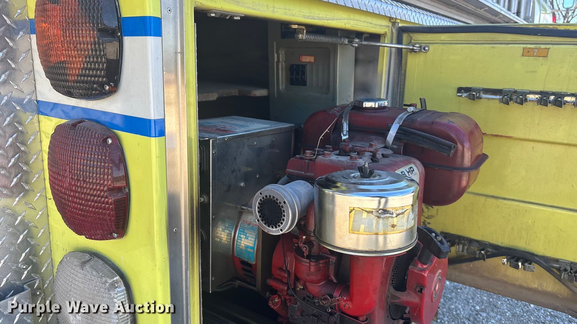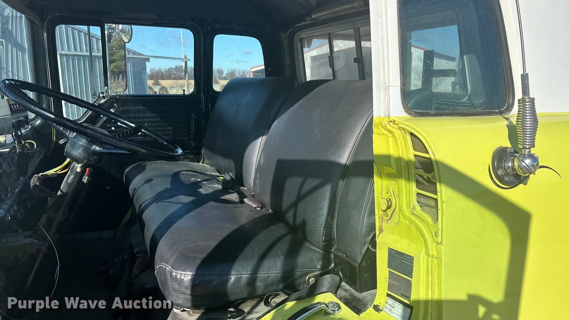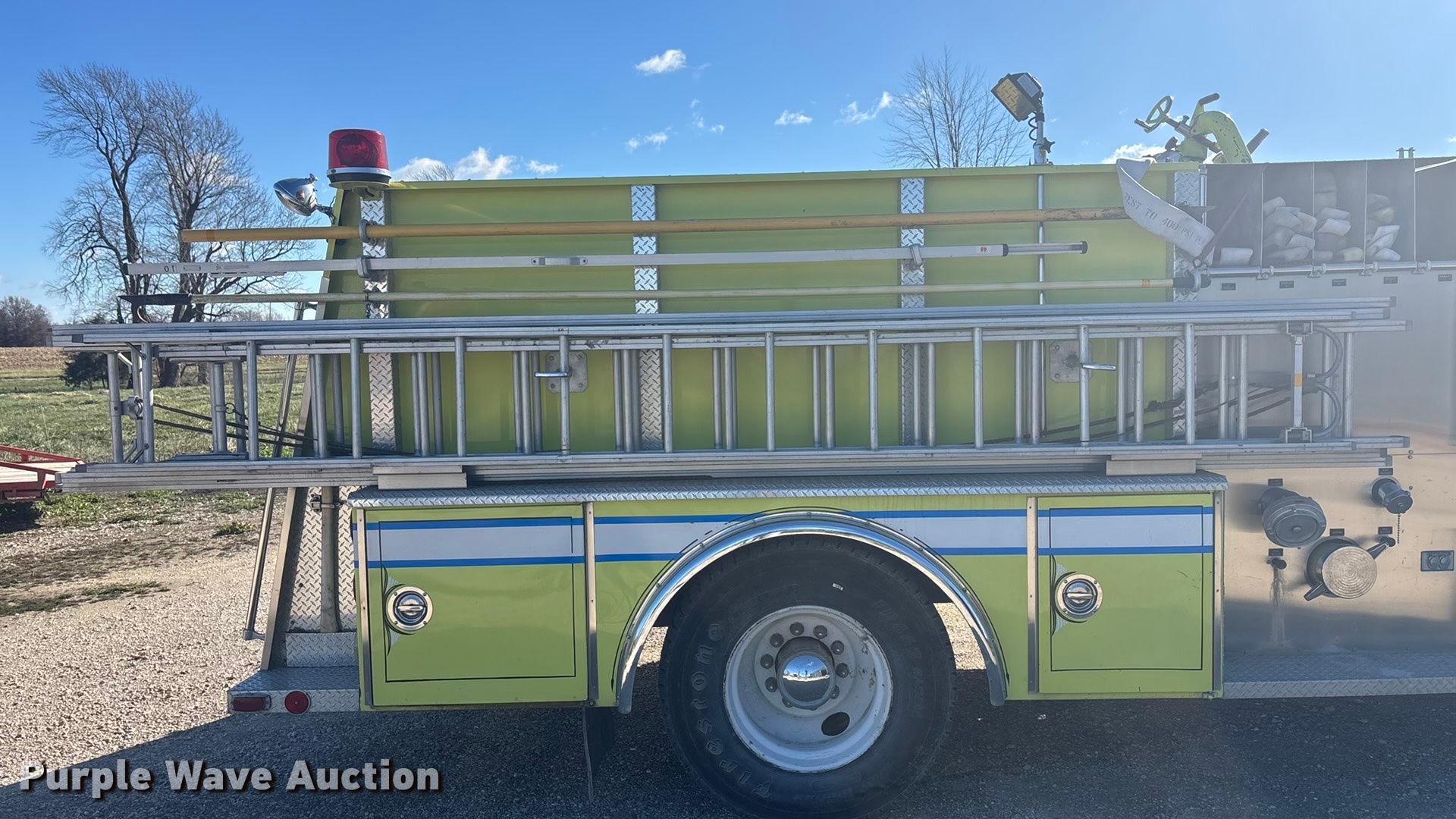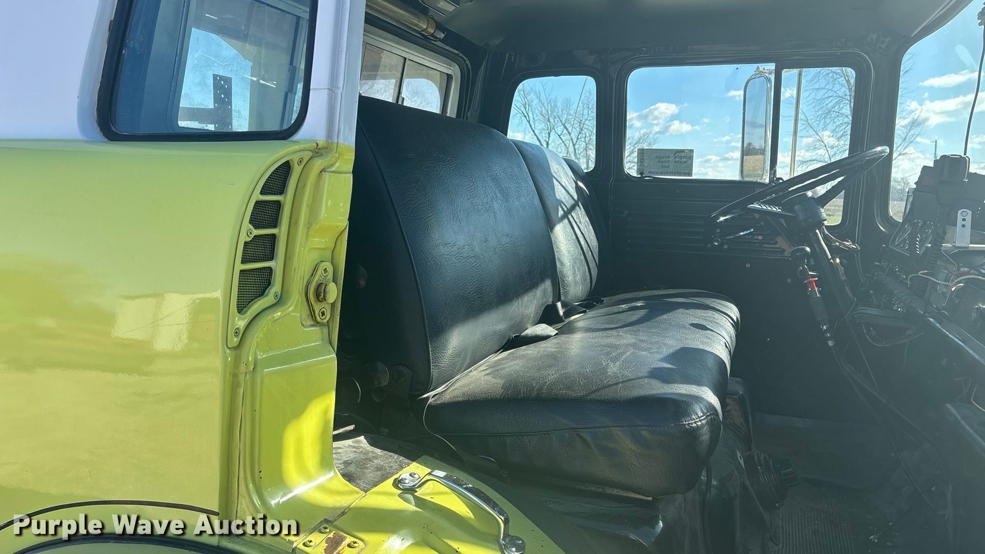 1986 Ford C8000 fire truck. Miles: 23,445 on odometer, VIN: 1FDYD80U7GVA58687. Engine Cylinders: 8, Fuel type: Diesel. Transmission Manual, Speed: 5. Chassis Axles: Single, Suspension: Spring, Brakes: Air, GVWR: 35,000 lbs, Wheelbase: 175". Interior Heat, Cruise control. Features Fire truck body 4 Guys, Elevated deck gun, Tank Capacity: 750 gallons, Pump 1,250 gpm, Generator Briggs & Stratton, Fuel type: Gas, kW: 3.5, PA/ siren controls. Tires Front: 11 R20, Rear: 11 R22.5. Notes Jump start required during on-site data collection. Missouri municipality owned asset. No title will be provided. Transfer of ownership documentation will be a notarized bill of sale in accordance with MSR 301.260. Bidders are responsible for verifying if this is sufficient to obtain title in their jurisdiction prior to bidding. Transfer of ownership documentation will be a bill of sale. Clarence, MO Rural Fire Department. Clarence, MO 63437