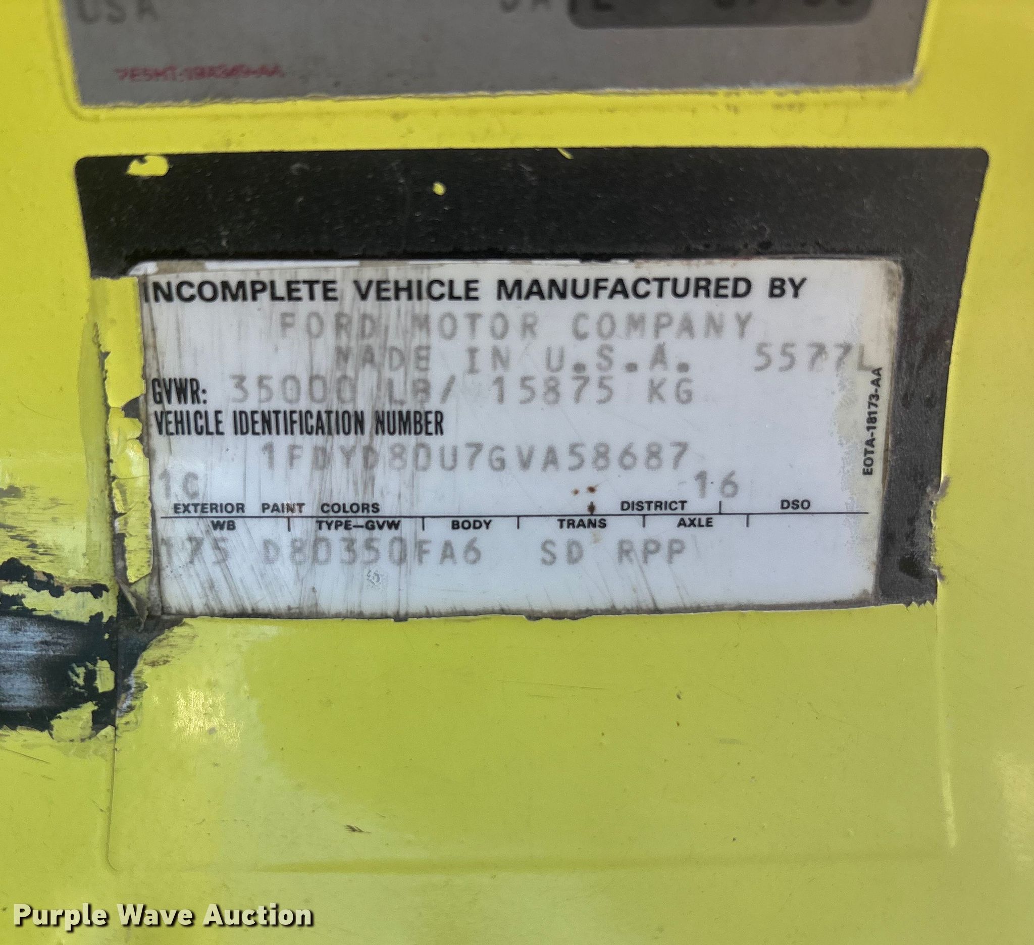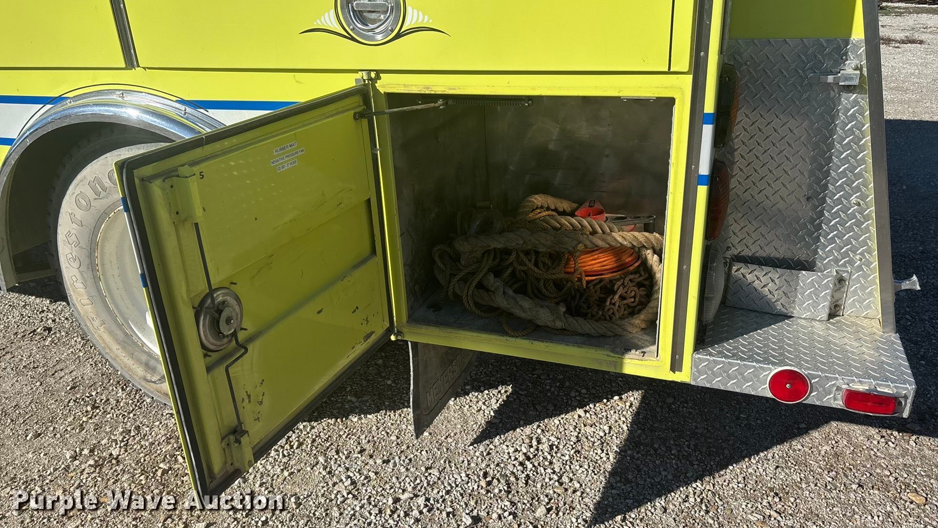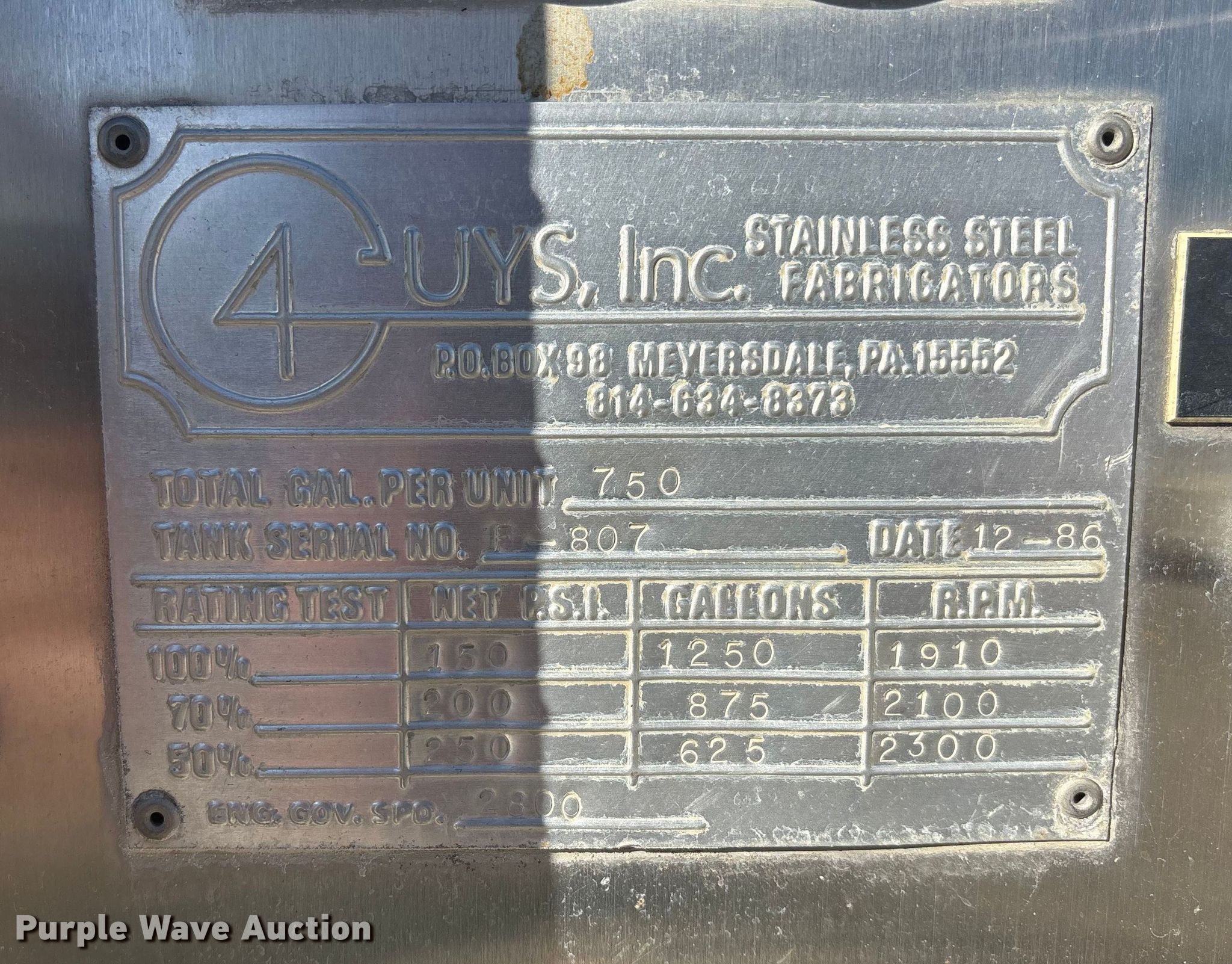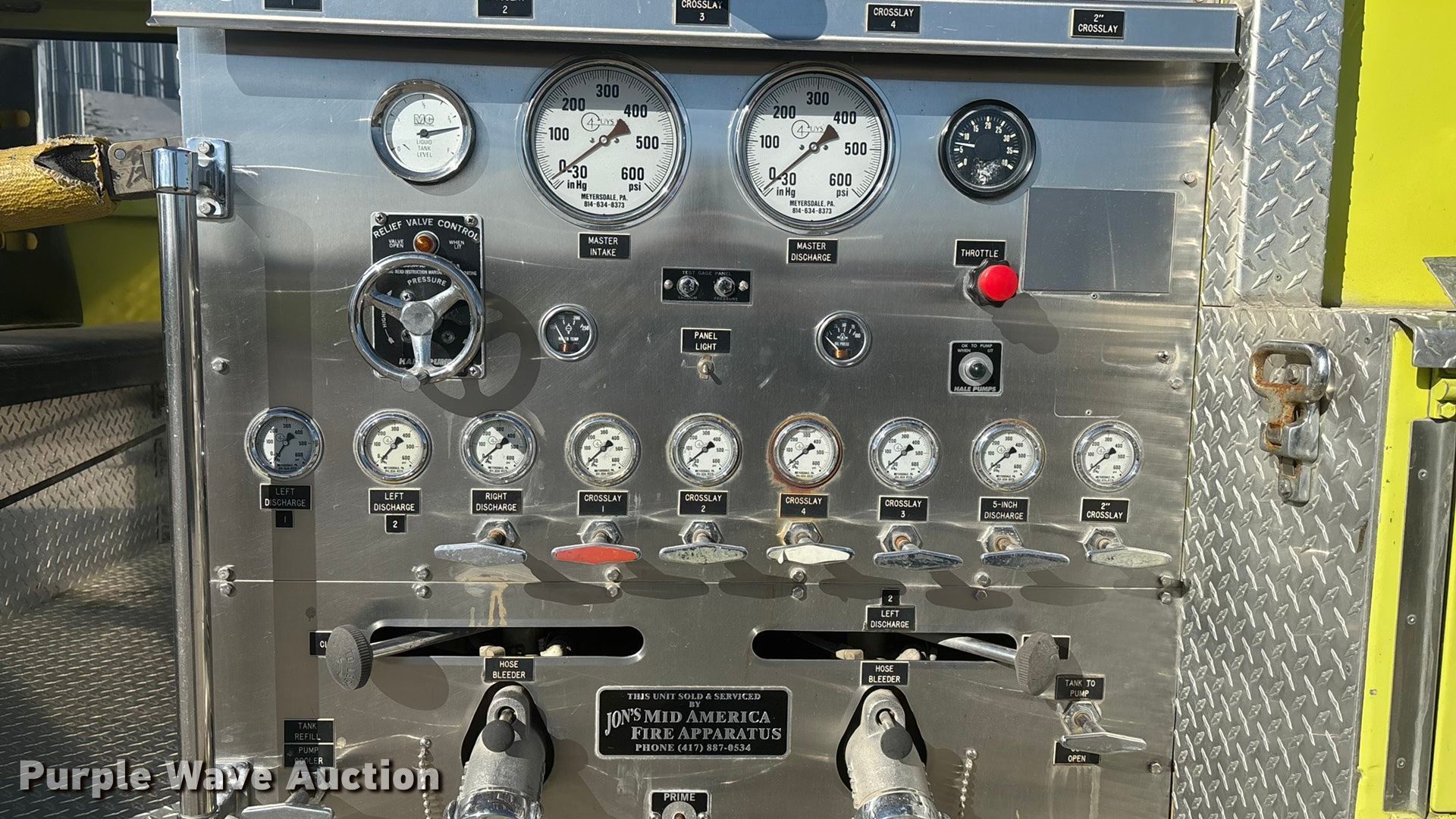 1986 Ford C8000 fire truck. Miles: 23,445 on odometer, VIN: 1FDYD80U7GVA58687. Engine Cylinders: 8, Fuel type: Diesel. Transmission Manual, Speed: 5. Chassis Axles: Single, Suspension: Spring, Brakes: Air, GVWR: 35,000 lbs, Wheelbase: 175". Interior Heat, Cruise control. Features Fire truck body 4 Guys, Elevated deck gun, Tank Capacity: 750 gallons, Pump 1,250 gpm, Generator Briggs & Stratton, Fuel type: Gas, kW: 3.5, PA/ siren controls. Tires Front: 11 R20, Rear: 11 R22.5. Notes Jump start required during on-site data collection. Missouri municipality owned asset. No title will be provided. Transfer of ownership documentation will be a notarized bill of sale in accordance with MSR 301.260. Bidders are responsible for verifying if this is sufficient to obtain title in their jurisdiction prior to bidding. Transfer of ownership documentation will be a bill of sale. Clarence, MO Rural Fire Department. Clarence, MO 63437