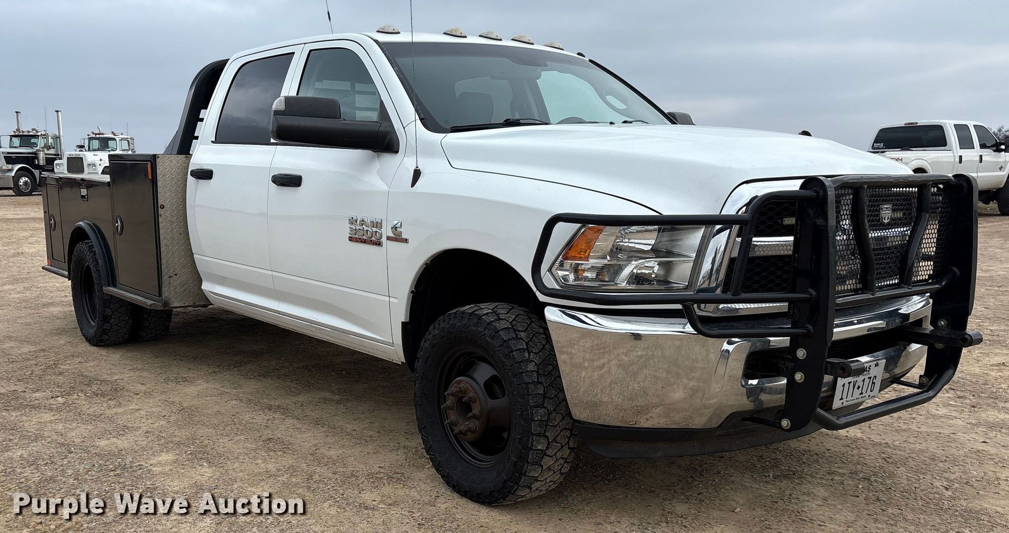 Purple Wave is selling a used 3/4 or 1 Ton Pickup or Van in Texas. This item is a 2017 RAM 3500HD Crew Cab flatbed pickup truck with the following: Miles: 189,613 on odometer, Miles or hours may vary, unit still in use, VIN: 3C7WRTCLXHG719791