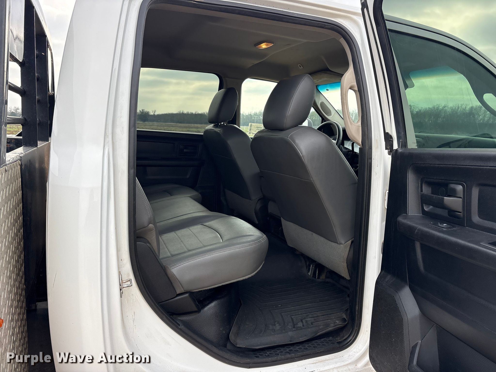 This 2017 RAM 3500HD Crew Cab flatbed pickup truck will sell to the highest bidder regardless of price.