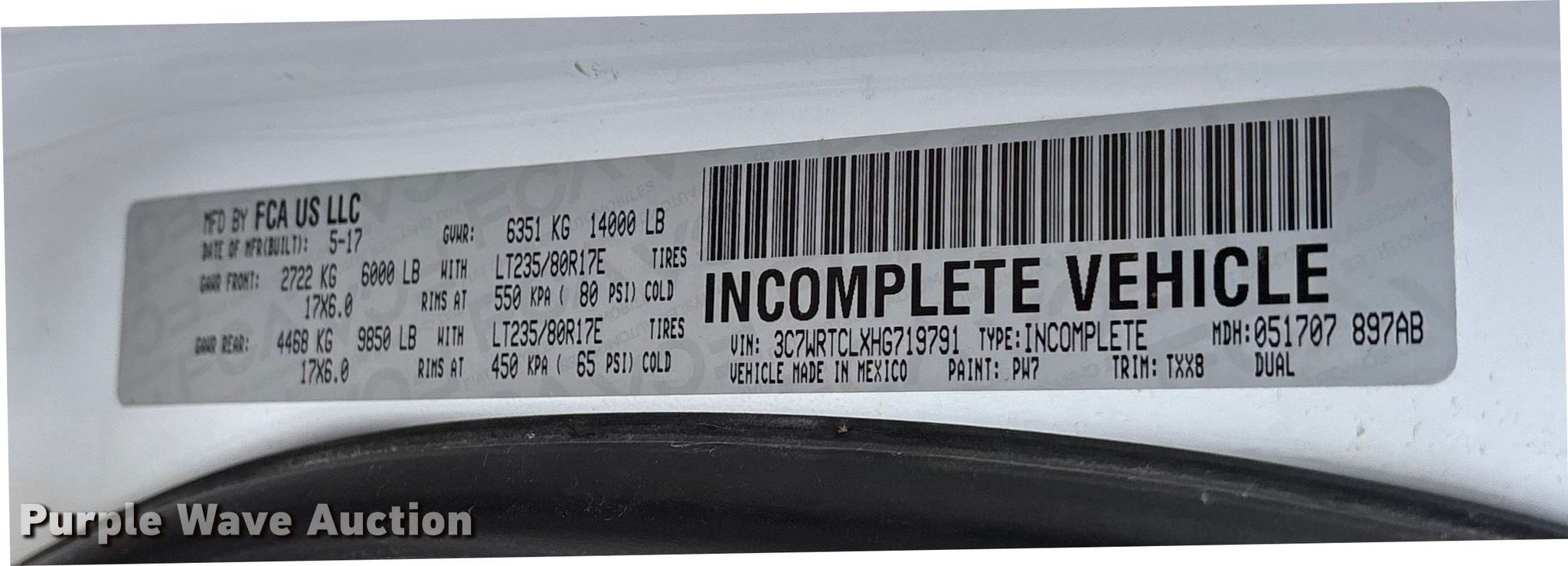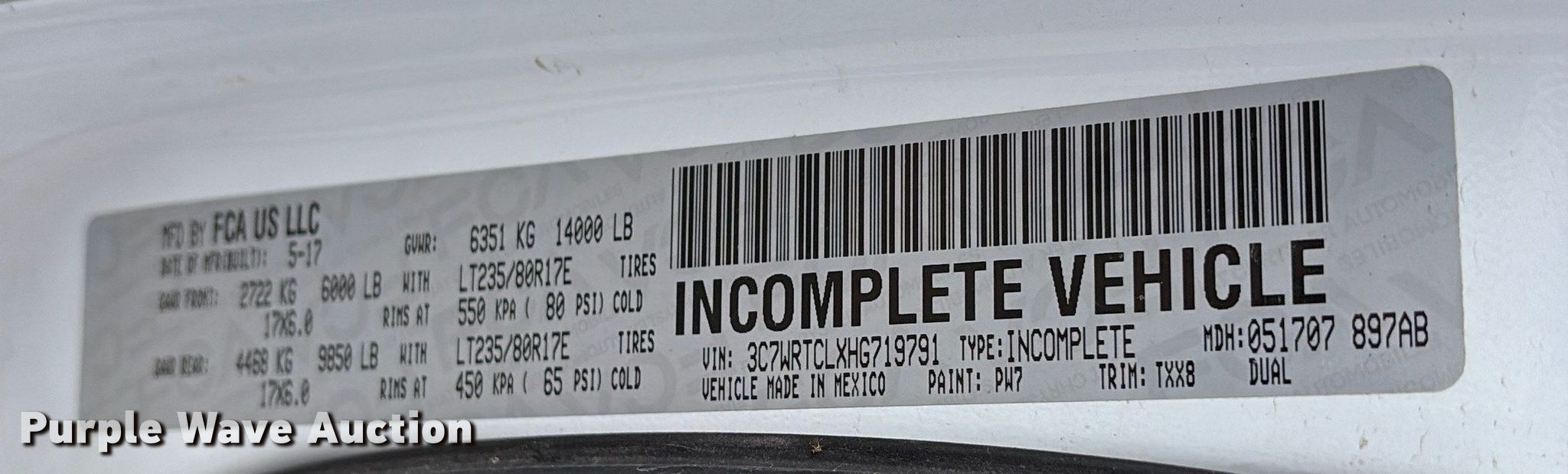 - VIN: 3C7WRTCLXHG719791