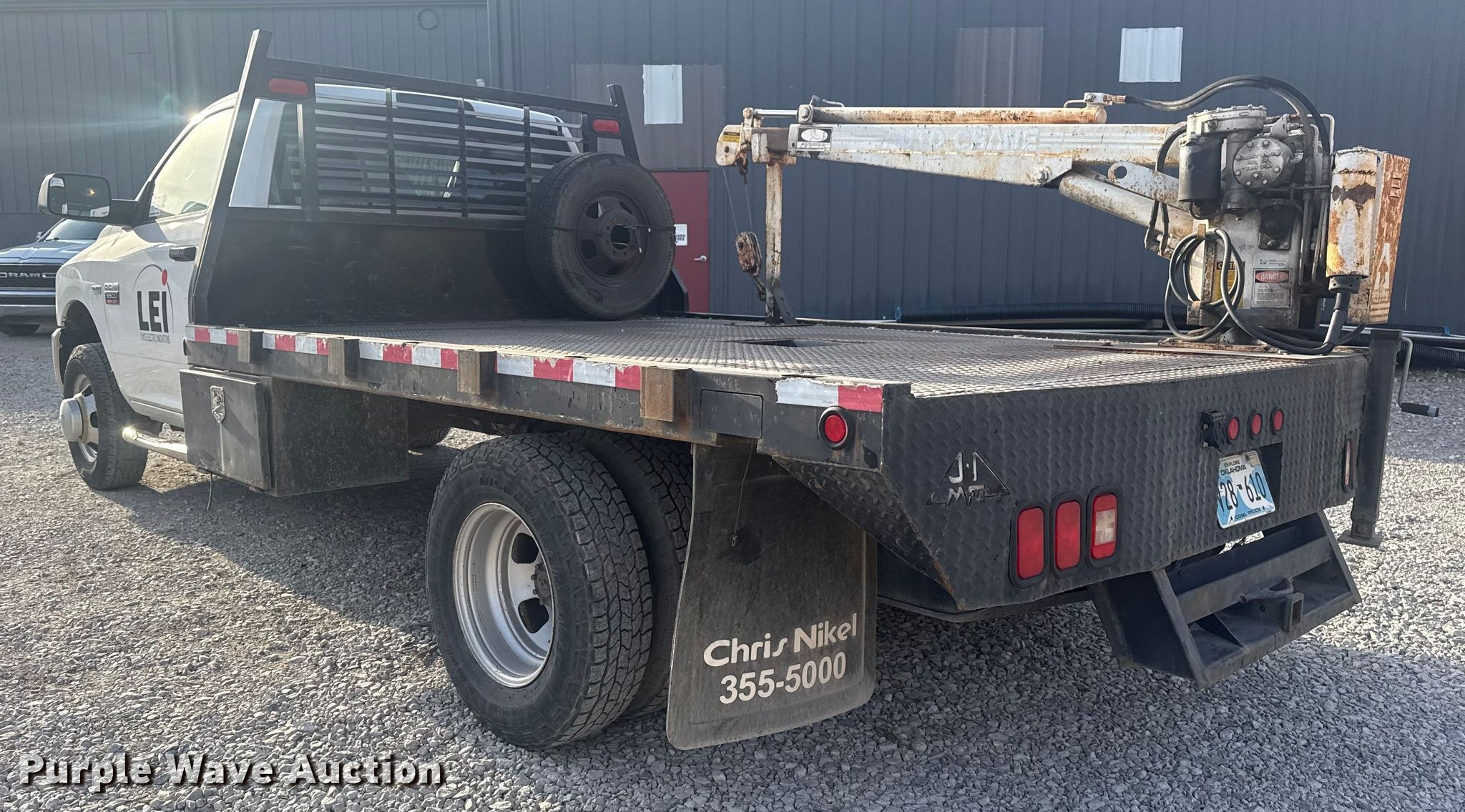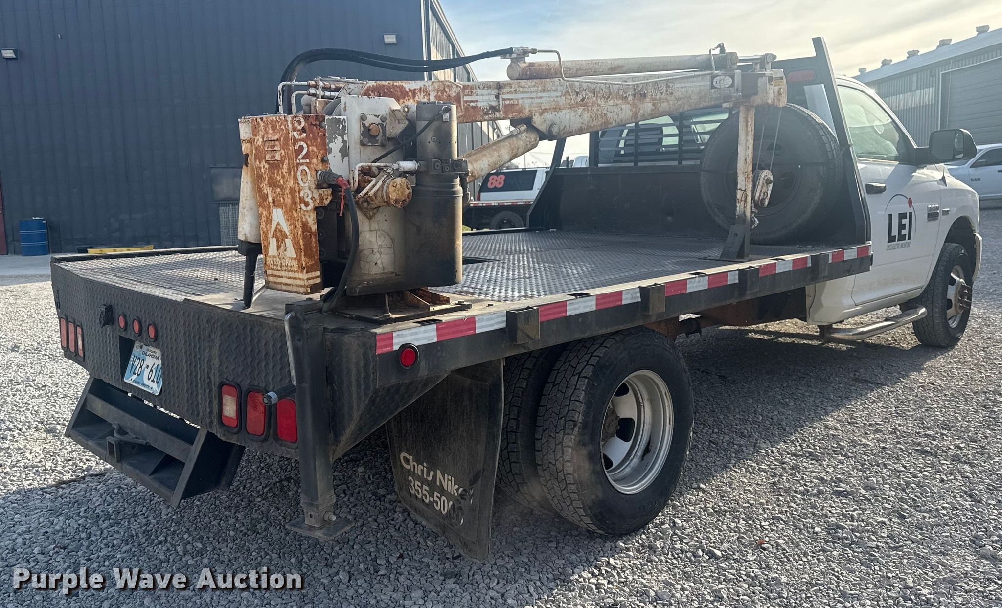 2012 Dodge Ram 3500HD flatbed pickup truck. Miles: 217,666 on odometer, VIN: 3C7WDTBT9CG319617. Engine Displacement: 5.7L, Cylinders: 8, Fuel type: Gas. Transmission Automatic, Four wheel drive. Interior AC, Heat, Cruise control, Auxiliary controls, Brake controller. Features Bed Flatbed, Length: 11' 4", Width: 96", Hitch: Gooseneck, Crane Auto Crane 3303-PRX, Serial: 320304-336-AT-09-89.. Tires Size: LT235/80R17. Notes Unknown operating condition of crane. Oklahoma title. Title distribution may be delayed up to 14 days from verification of funds. American Power Innovations. Tulsa, OK 74115