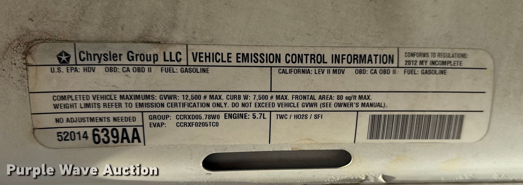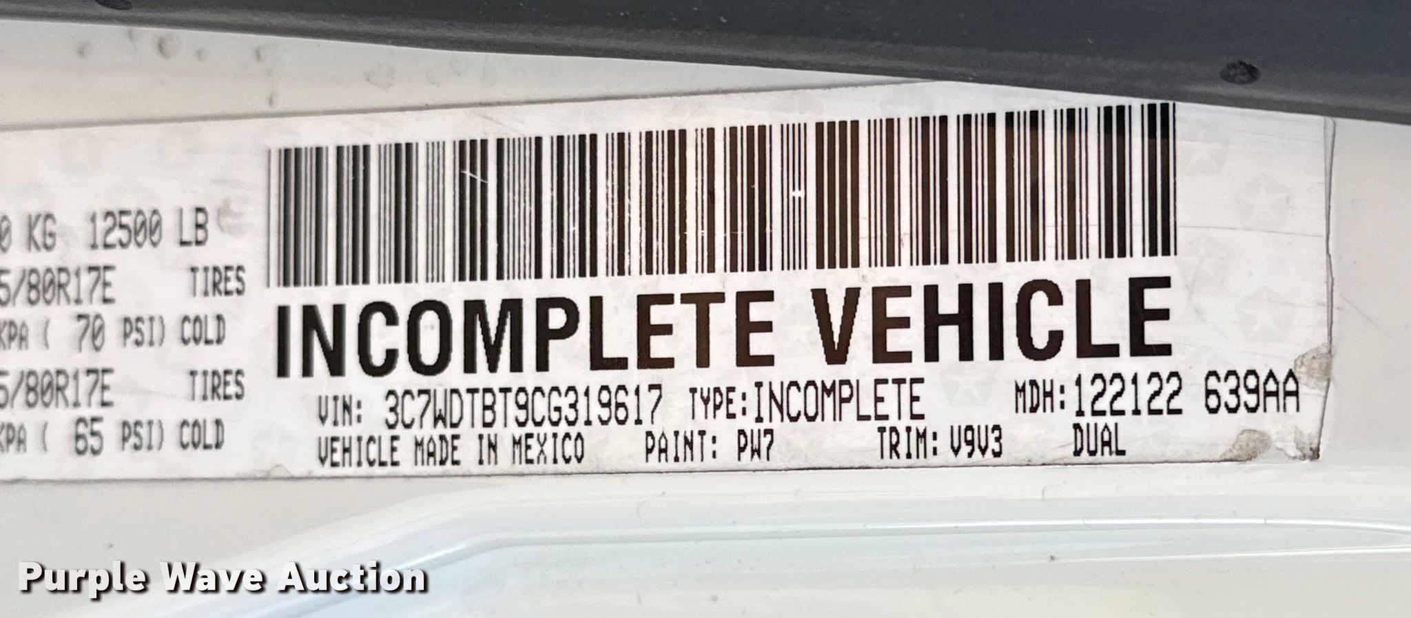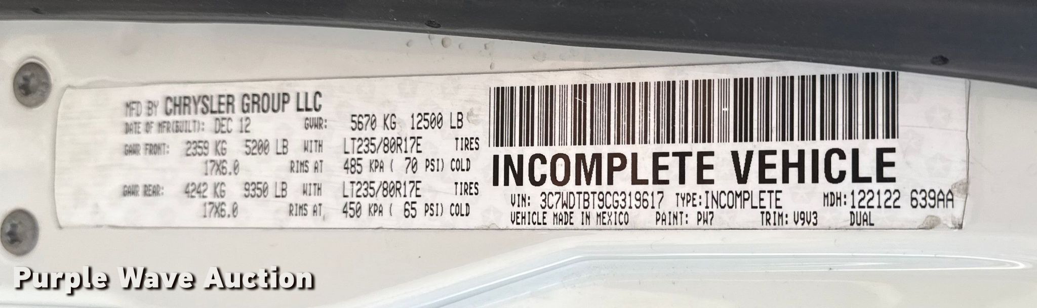 - VIN: 3C7WDTBT9CG319617
