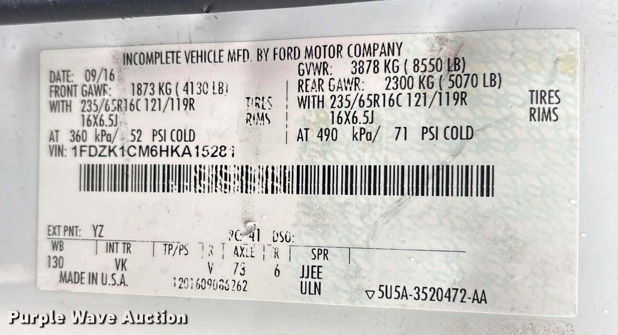 - VIN: 1FDZK1CM6HKA15281