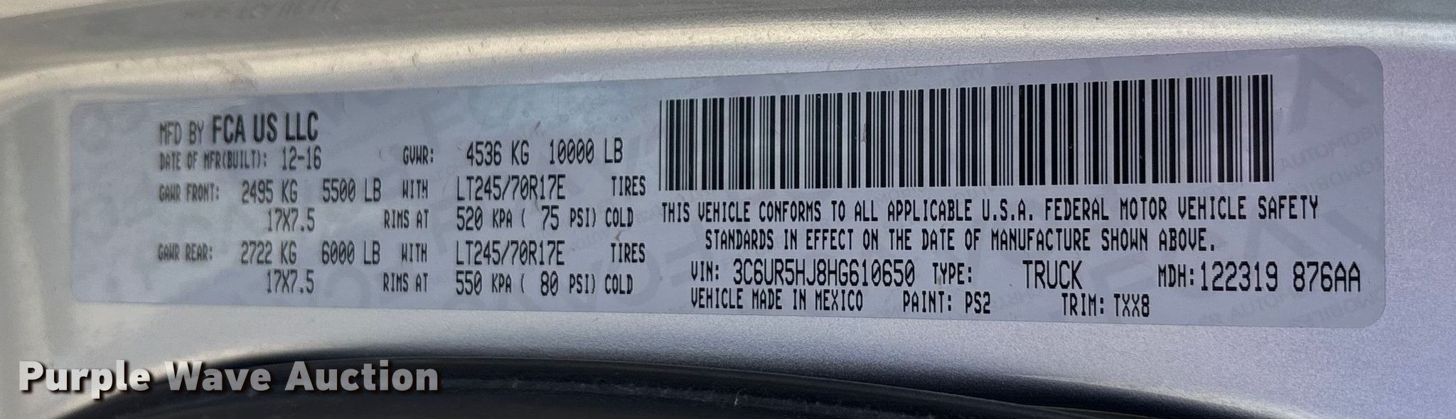 2017 RAM 2500HD Crew Cab pickup truck | Tuesday December 30 Vehicles and Equipment Auction