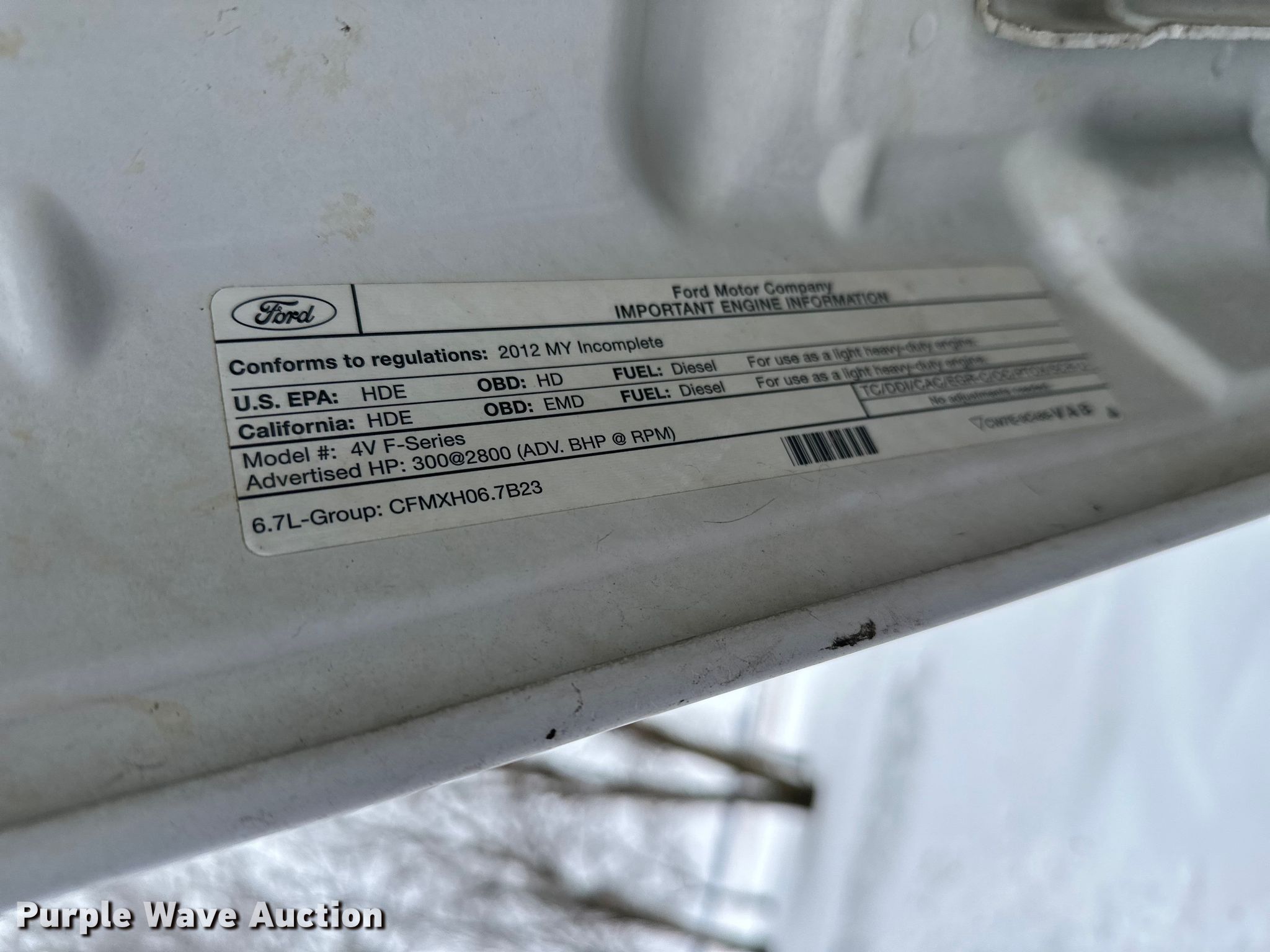 2012 Ford F450 Crew Cab flatbed truck. Miles: 94,711 on odometer, VIN: 1FD0W4HT4CEA71709. Engine Displacement: 6.7L, Cylinders: 8, Fuel type: Diesel. Transmission Automatic, Four wheel drive. Interior AC, Heat, Cruise control, Auxiliary controls, Brake controller. Features Bed Flatbed, Length: 10', Width: 8'. Tires Size: 225/70R19.5. Notes Non-operational engine , Unit must be towed or hauled , Non-operational unit. Minnesota title. Title distribution may be delayed up to 14 days from verification of funds. Wagner Sod Company Inc. Nortfield, MN 55057