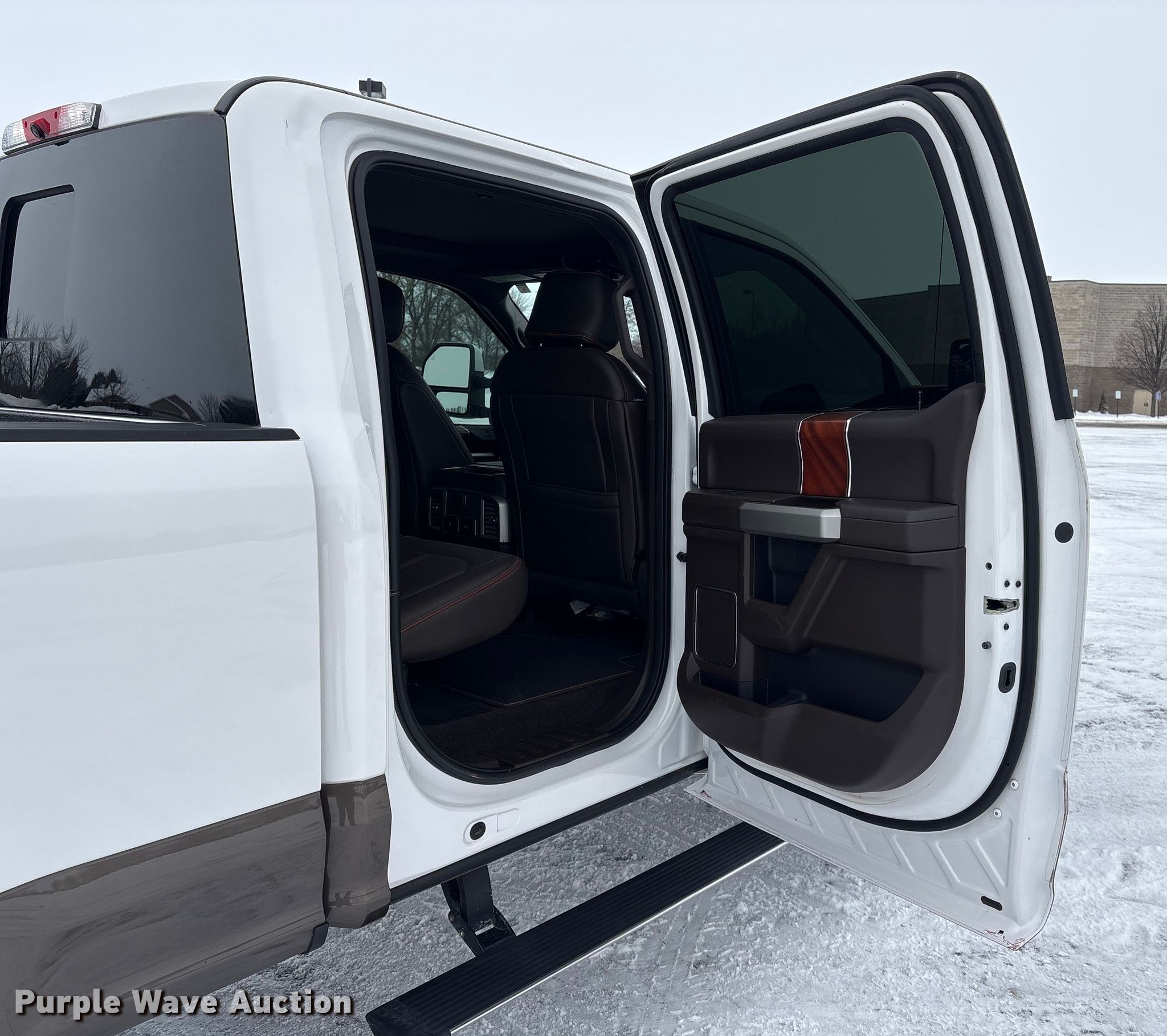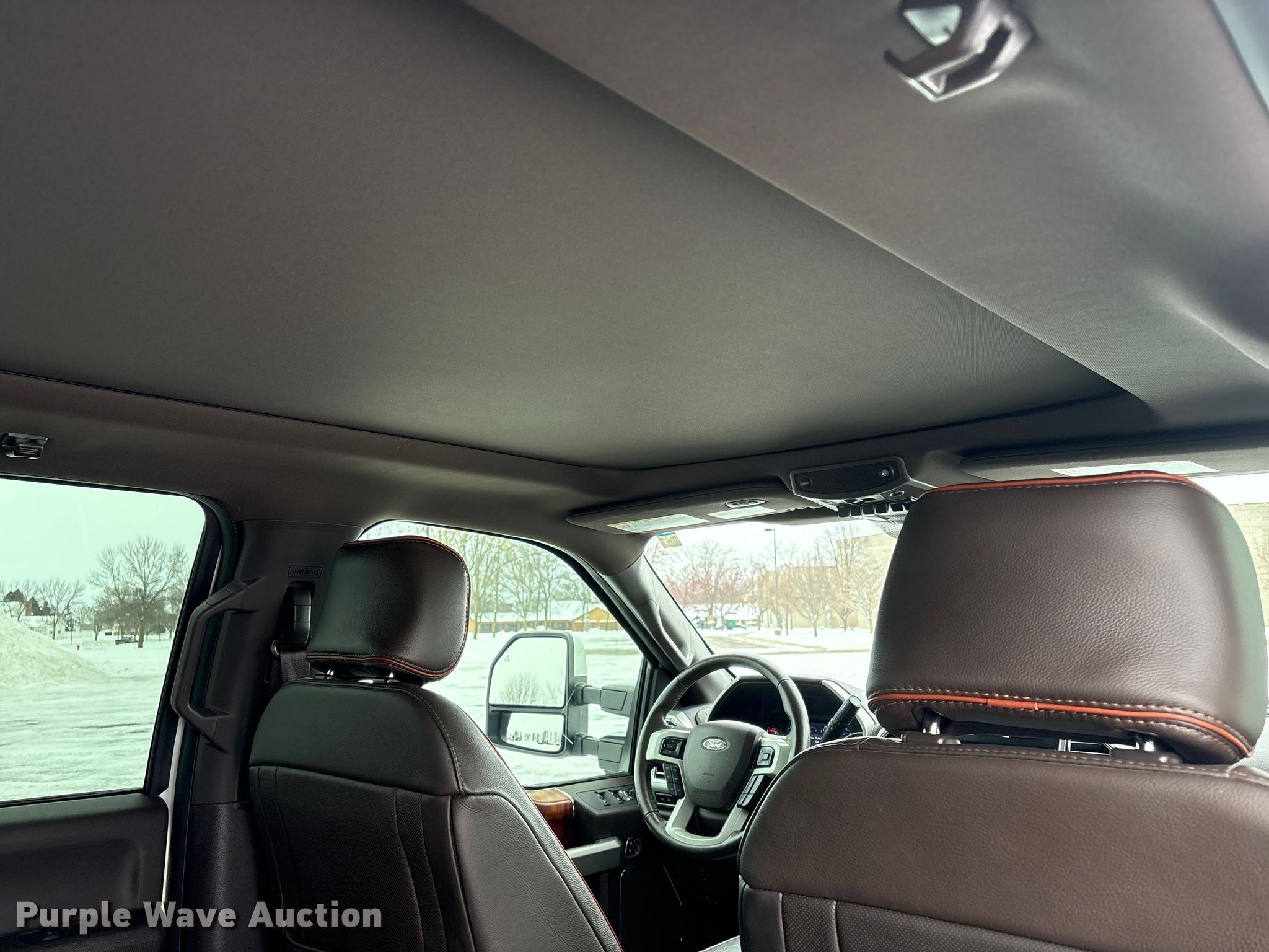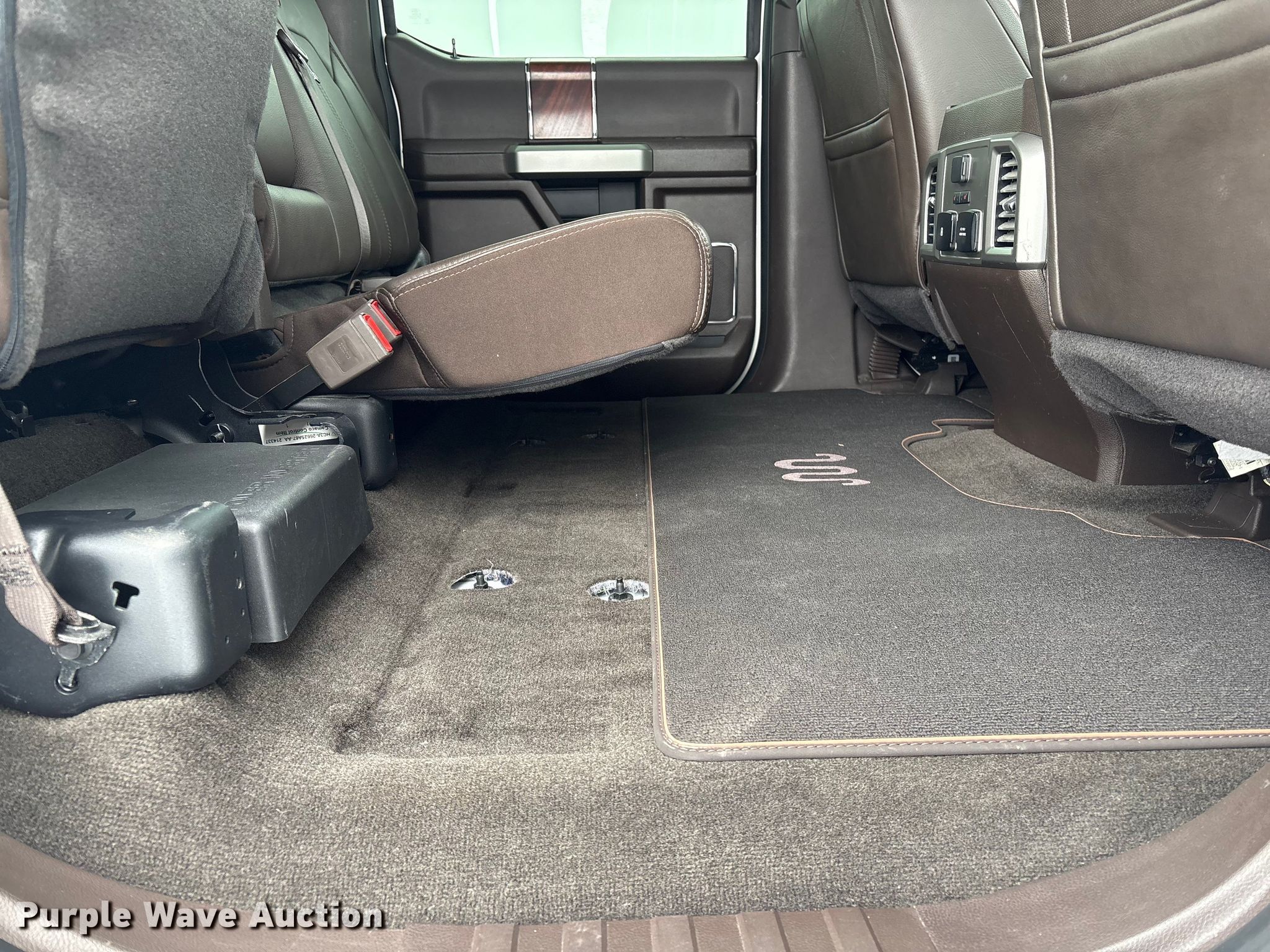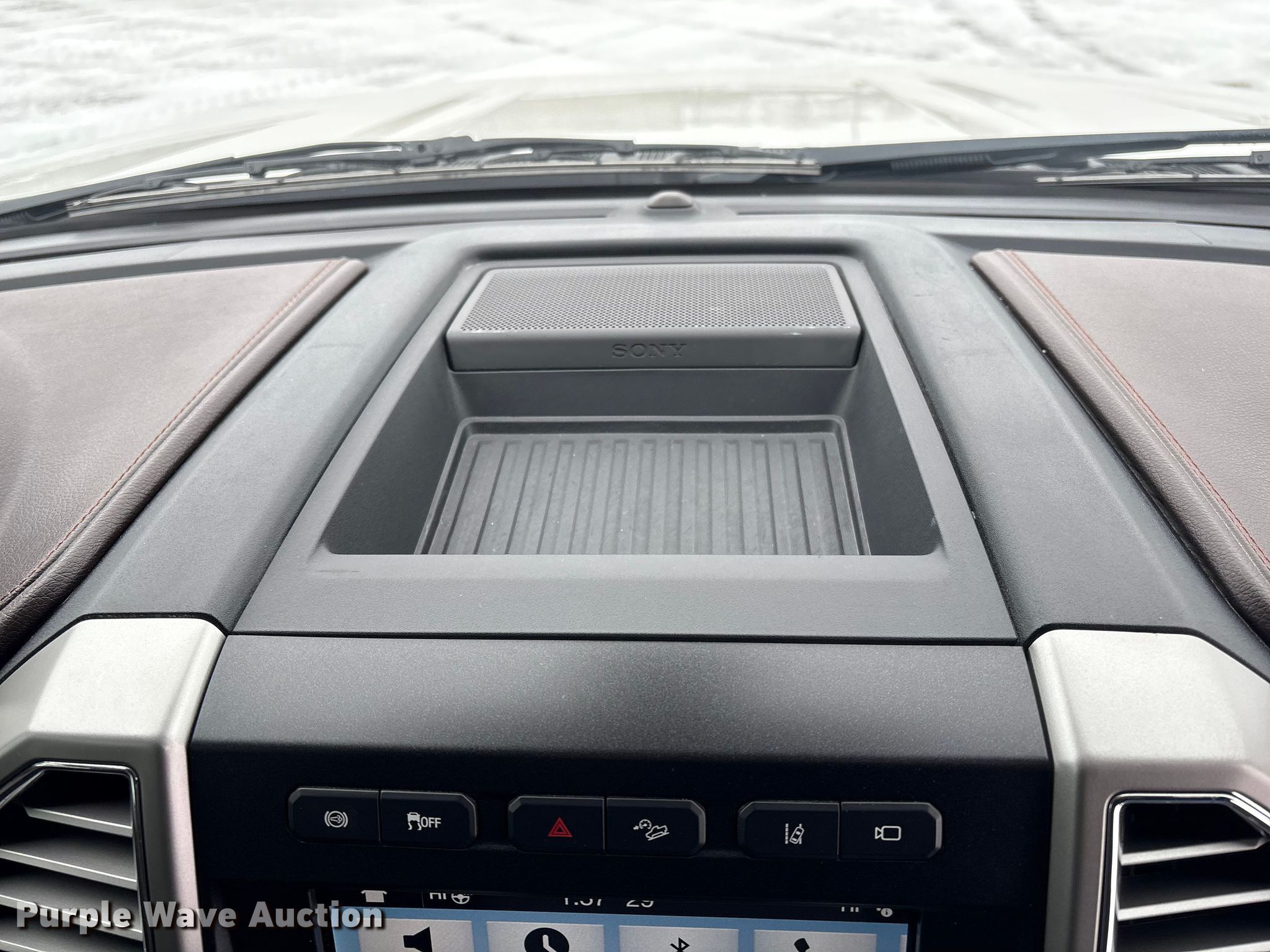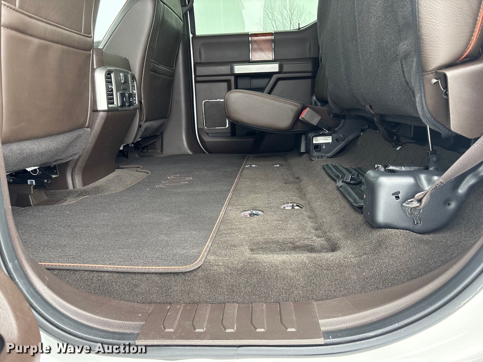 2017 Ford F250 King Ranch Crew Cab pickup truck. Miles: 29,380 on odometer, Hours: 934 on meter, VIN: 1FT7W2BT4HEF24380. Engine Displacement: 6.7L, Cylinders: 8, Fuel type: Diesel. Transmission Automatic, Four wheel drive. Interior AC, Heat, Seat: Heated, Cooled, Power driver, Power passenger, Heated mirrors, Power windows, Power locks, Cruise control, Backup camera, Auxiliary controls, Brake controller, Sunroof, Powered sunroof. Tires Size: 275/65R20. Notes Hail damage. Minnesota title. Title distribution may be delayed up to 14 days from verification of funds. Willmar, MN 56201