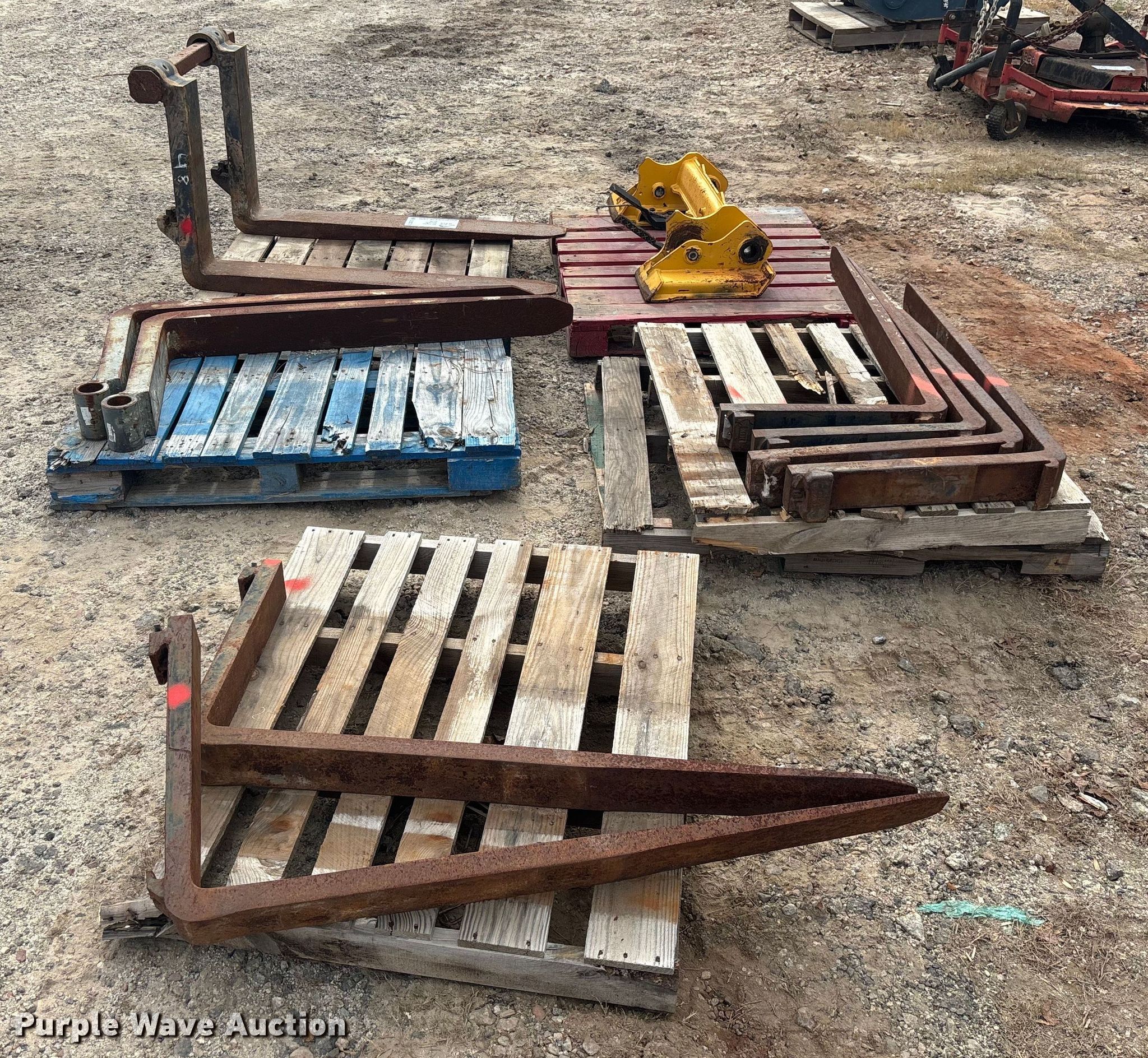 Purple Wave is selling a used Other Attach. or Equip. in Georgia. This item is a (5) forks with the following: Length: 48" to 43", Quick coupler