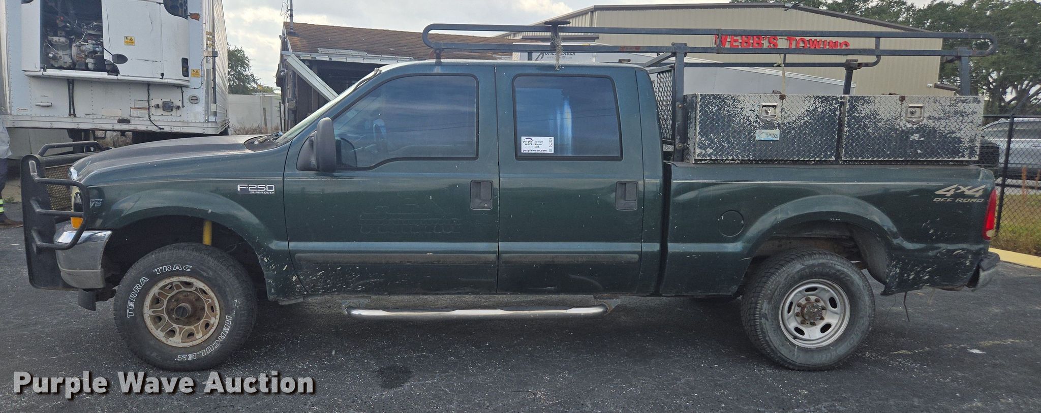 2002 Ford F250 Super Duty Crew Cab pickup truck. Miles: 398,217 on odometer, VIN: 1FTNW21L12EA95439. Engine Displacement: 5.4L, Cylinders: 8, Fuel type: Gas. Transmission Automatic, Four wheel drive. Interior AC, Heat, Power windows, Power locks, Cruise control. Tires Size: 265/75R16. Notes Jump start required during on-site data collection, Tailgate issues, will not open, Contents included. Florida title. Title distribution may be delayed up to 14 days from verification of funds. Webb's Towing. Auburndale, FL 33823